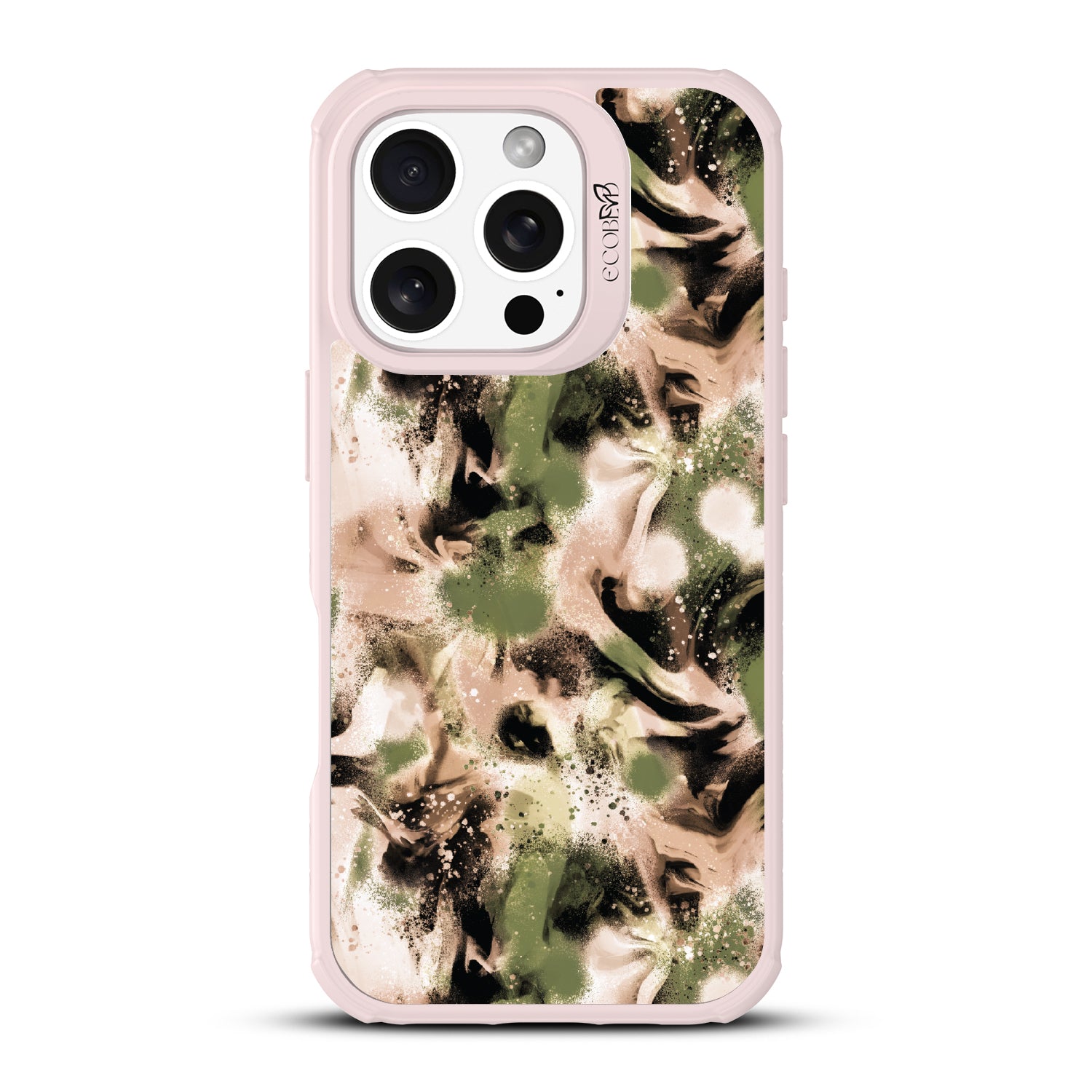 Take a stroll through the woods with the Woodlands design on our Revive clear iPhone 16 Pro cases. Soft swirls of green and brown blend together like the colors of nature in fall, creating a pattern that feels peaceful and serene. Keep the calm of the forest close at hand.