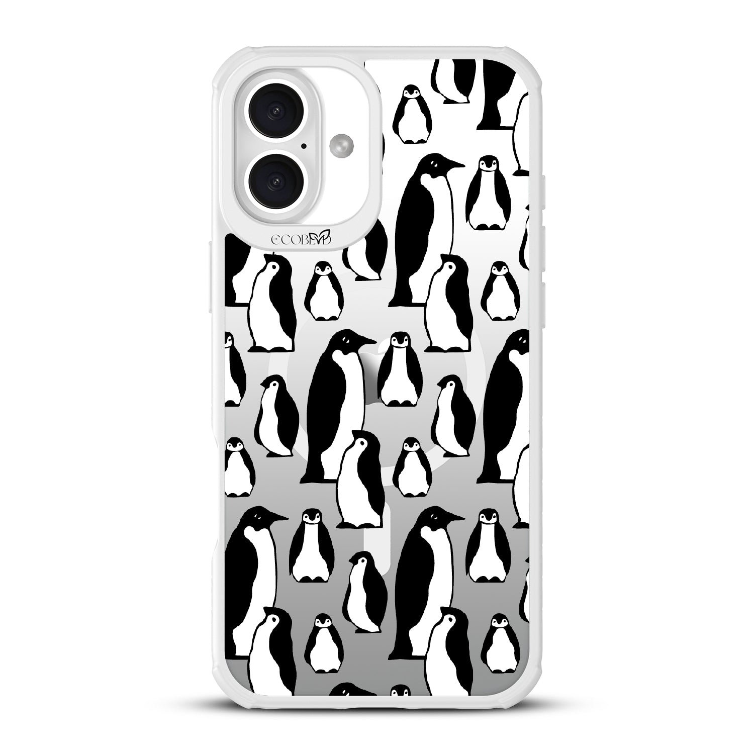 Don't waddle around; the Penguins design on our ReviveĀ clear iPhone 16 PlusĀ case is here to dress up your phone for the winter as the Antarctic birds march across it.
