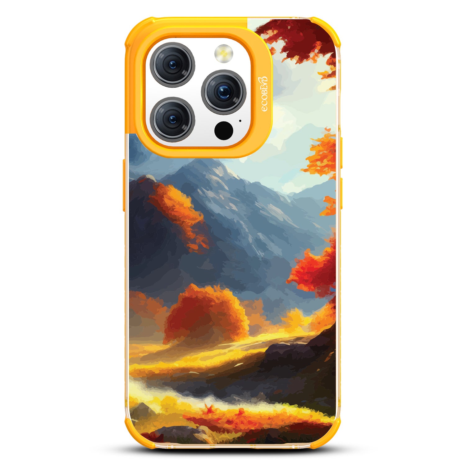 Immerse yourself in the vivid palette of autumn with the Autumn Canvas design on our Laguna clear iPhone 15 Pro case. As the leaves paint their vibrant strokes across the landscape, this design captures the essence of autumn's canvas, where each tree becomes an artist and your phone becomes a masterpiece of the changing seasons.