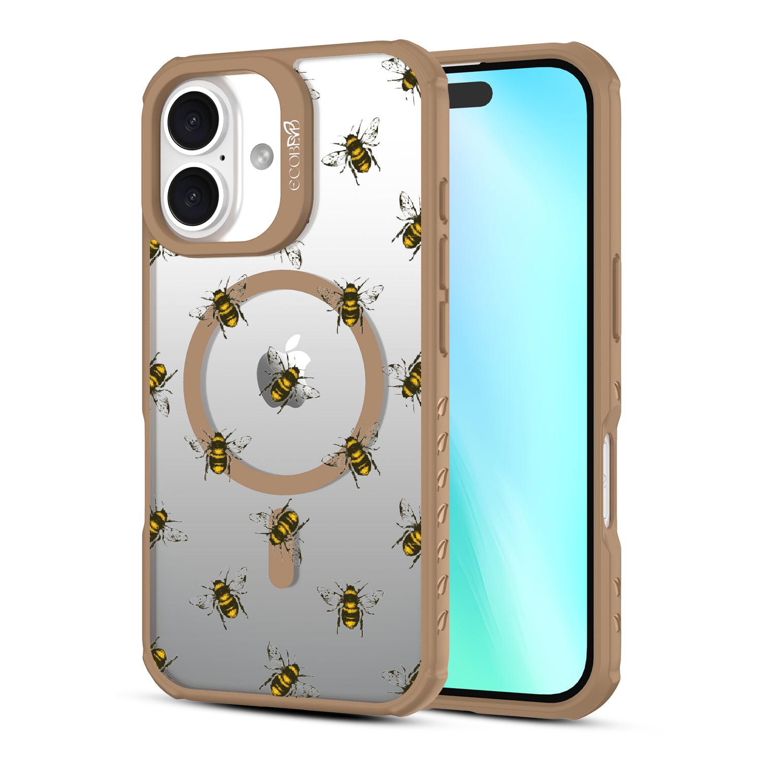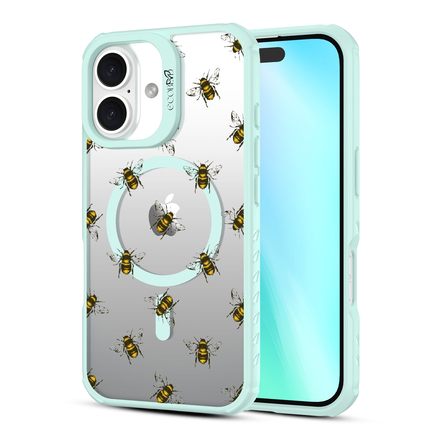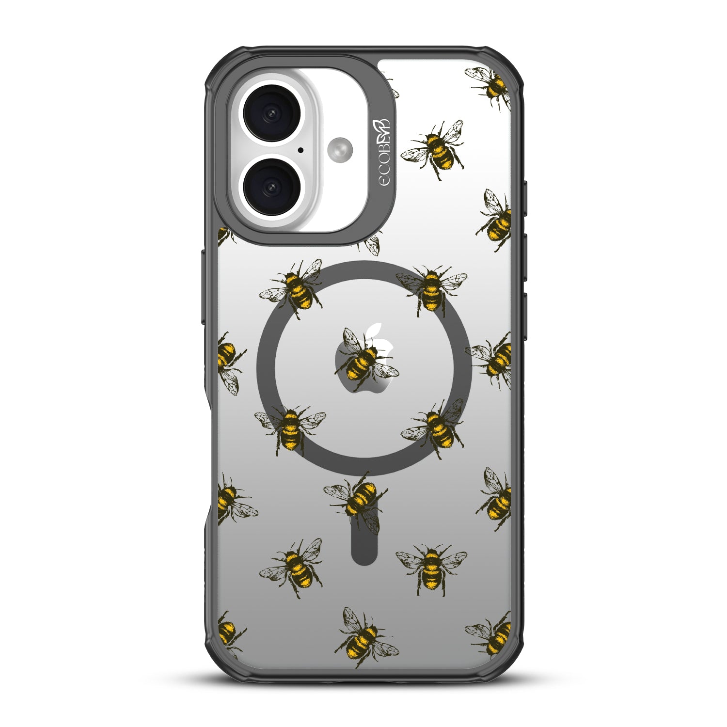 Give your phone and style a new reason to buzz, as the Bees design on our Revive clear iPhone 16 phone case features a group of busy honey bees flying around it.