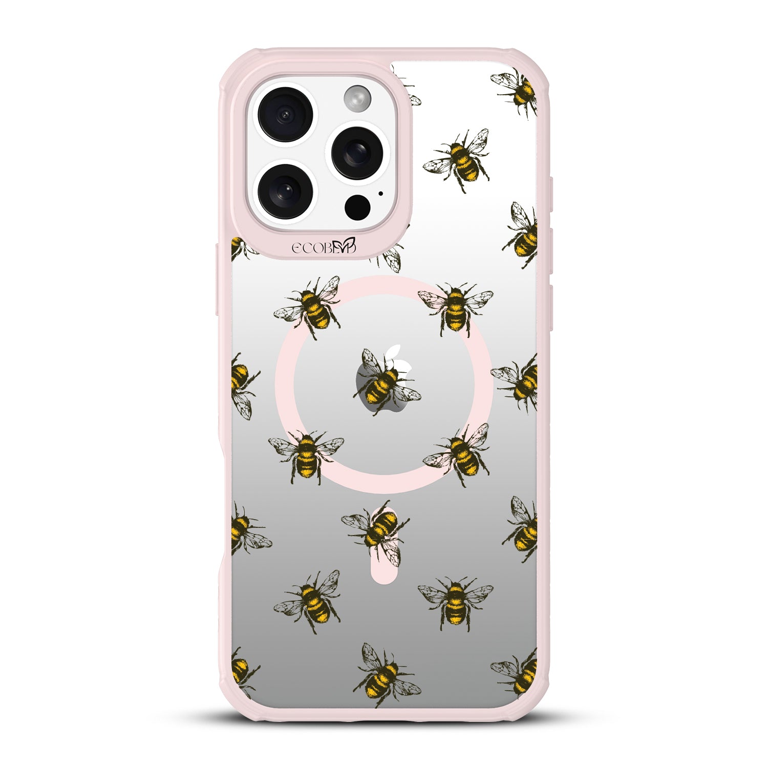 Give your phone and style a new reason to buzz, as the Bees design on our Revive clear iPhone 16 Pro Max phone case features a group of busy honey bees flying around it.