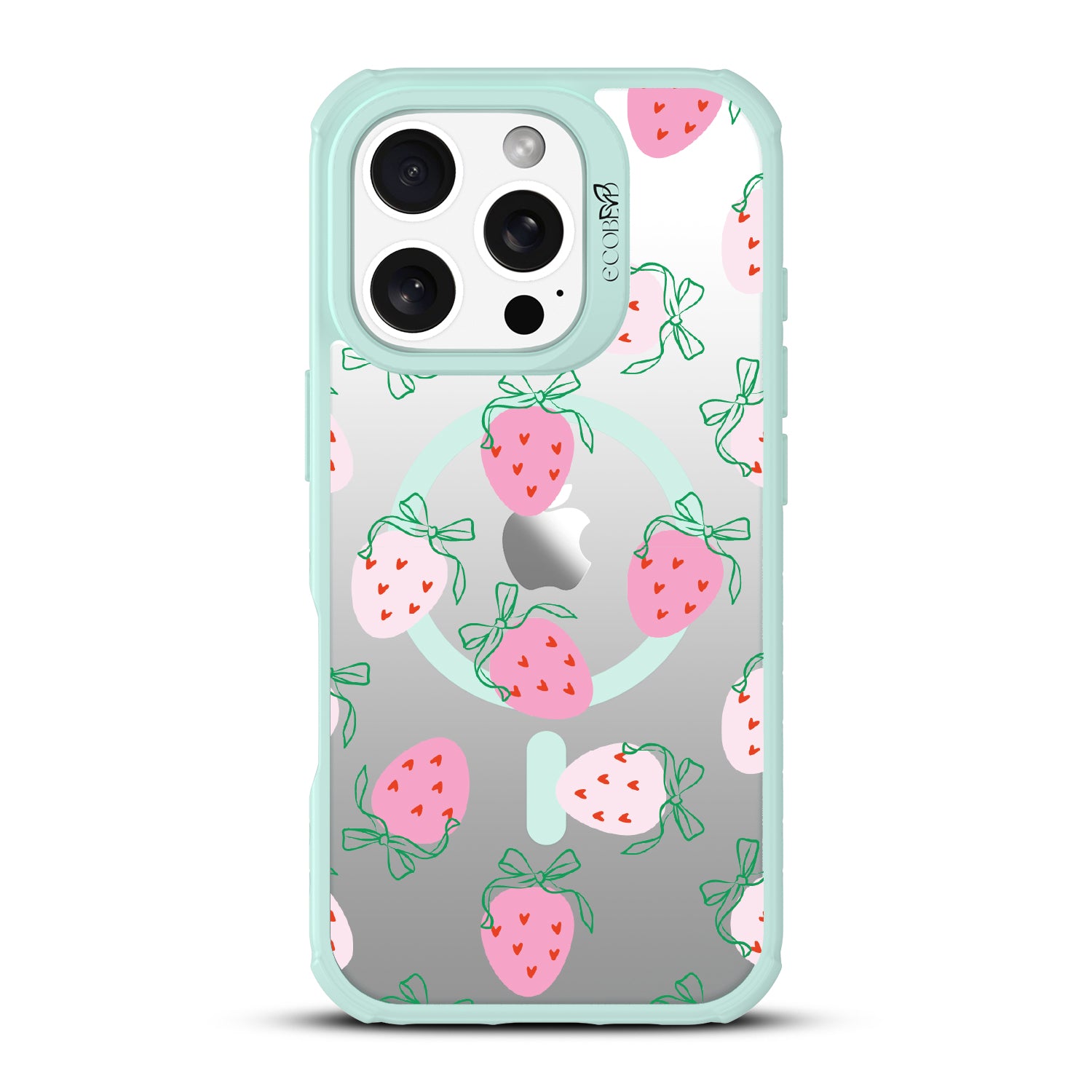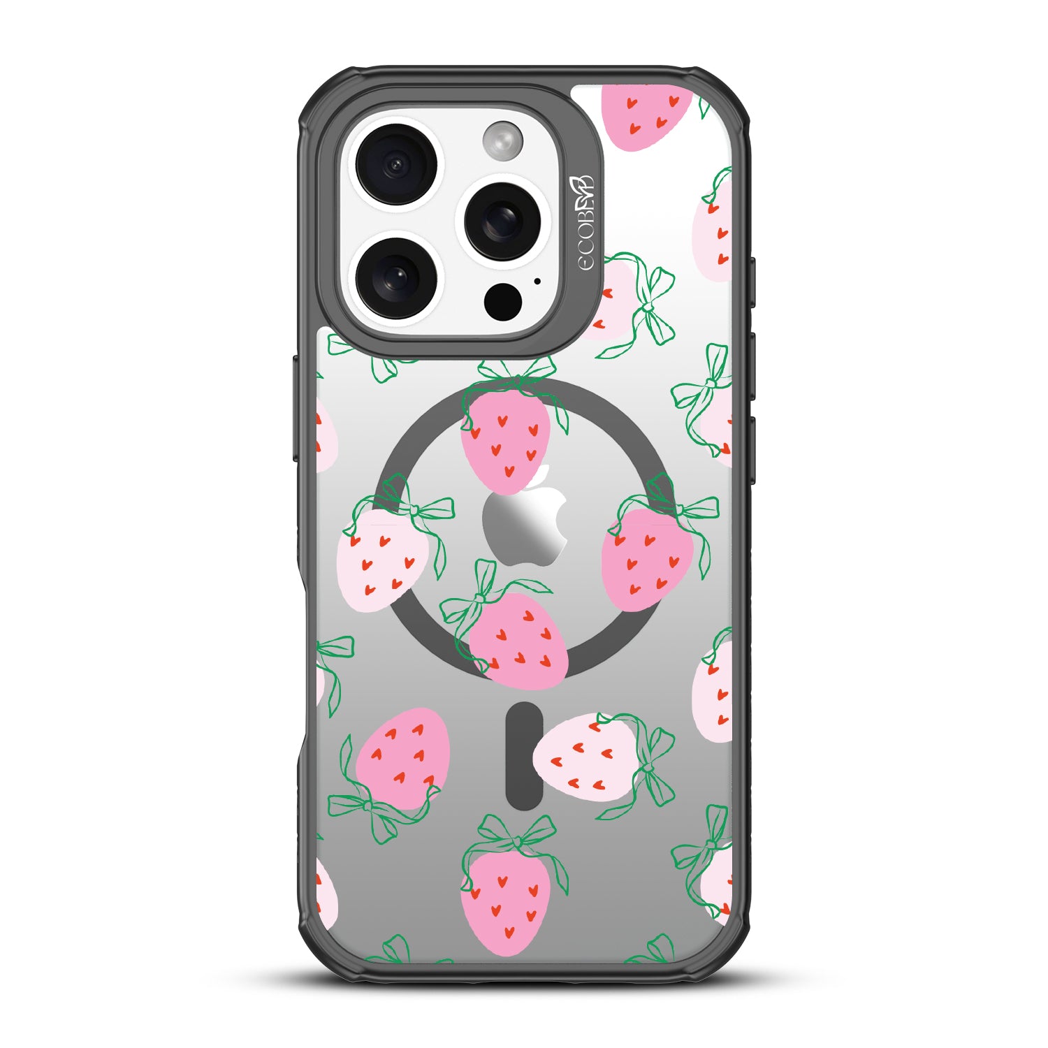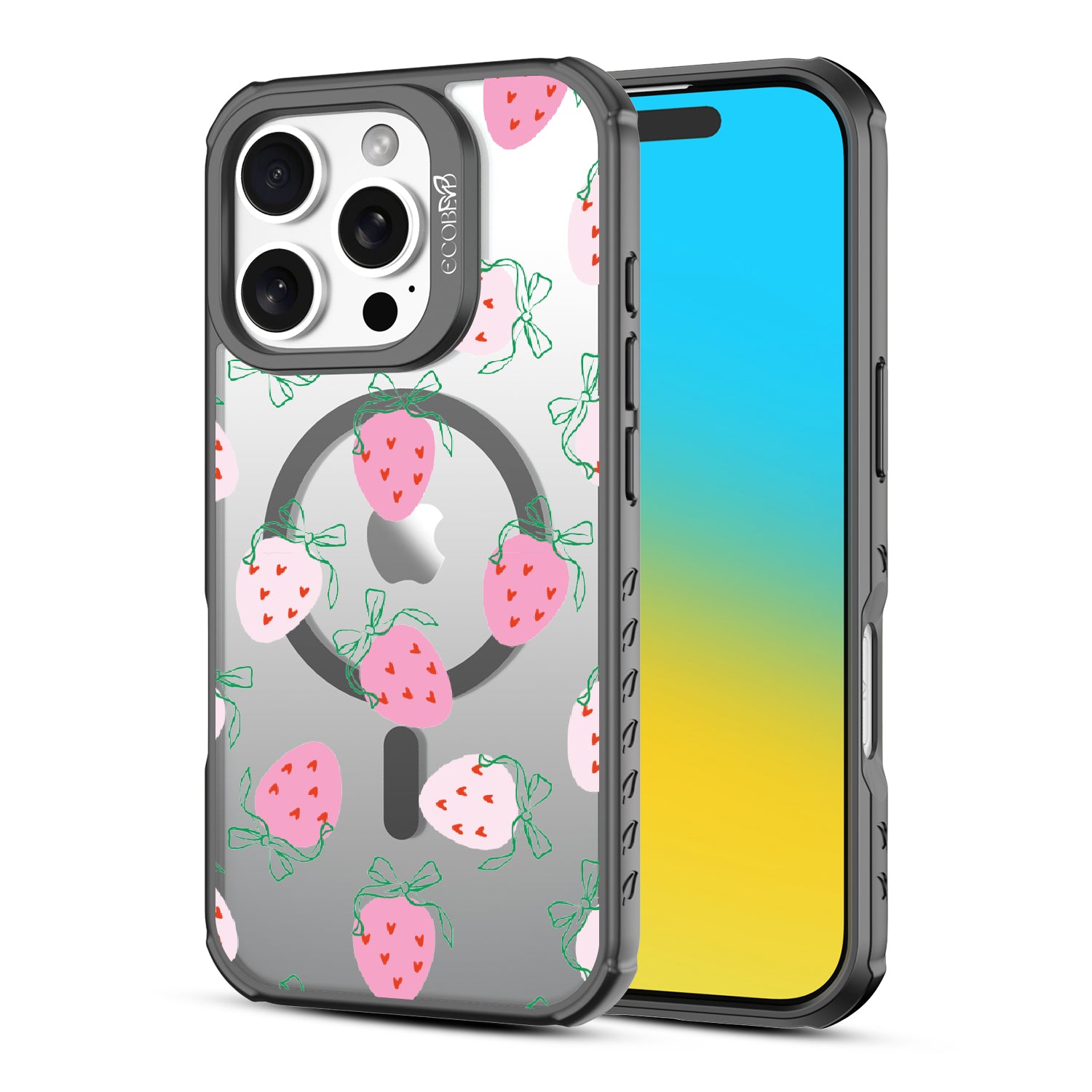 The Berry Cute design on our Revive clear iPhone 16 Pro phone case lives up to its name with luscious strawberries and coquettish bows, giving your phone a picked-for-you look. This pattern brings a touch of playful femininity, perfect for any coquette girl. Sweeten things up and show off a truly juicy style. Grab the Berry Cute case and let your phone be the berry best!