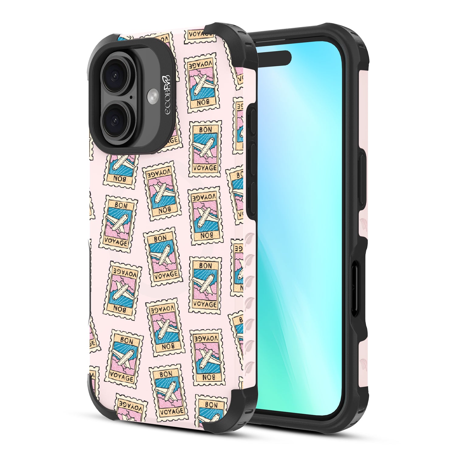 Ready for a stylish departure? The Bon Voyage design on our Reforge rugged iPhone 16 phone case is your phone's own first-class upgrade, where every 'Bon Voyage' stamp is a nod to your next great getaway. It's like turning on flight mode with a twist of runway—your sidekick dressed for adventure. Snap this case on, and let your phone's wanderlust lead the way. Buckle up, traveler—your pocket-sized co-pilot is about to make every journey fashionably memorable.