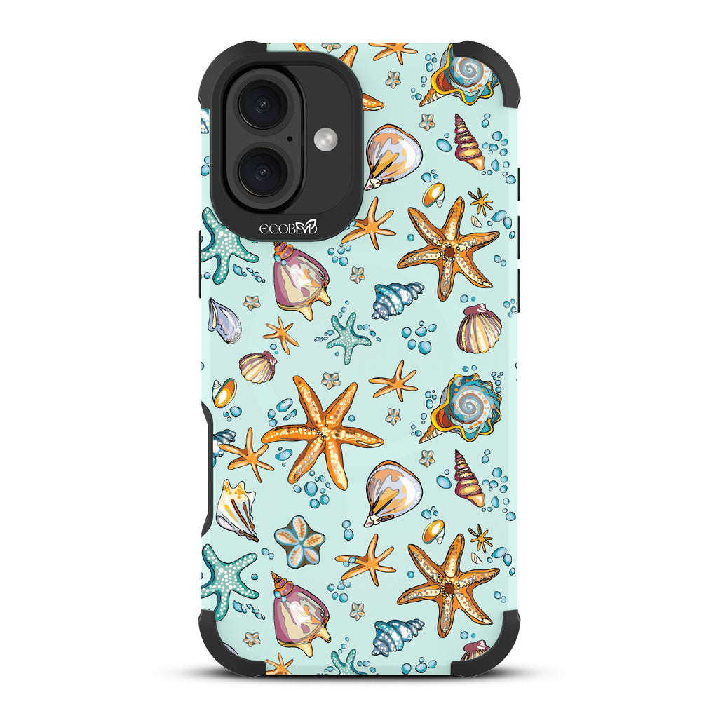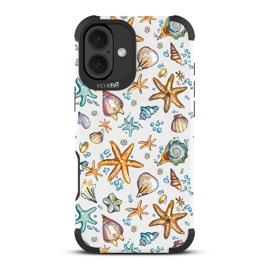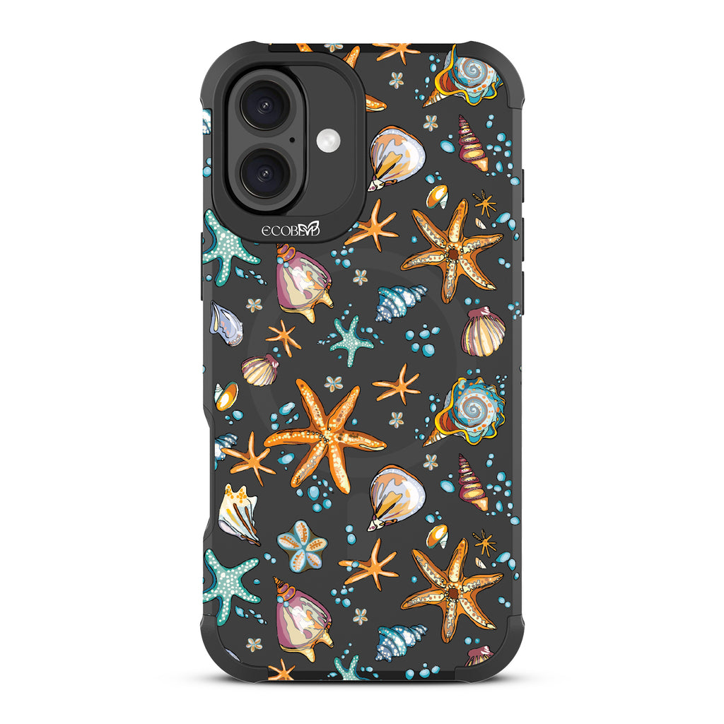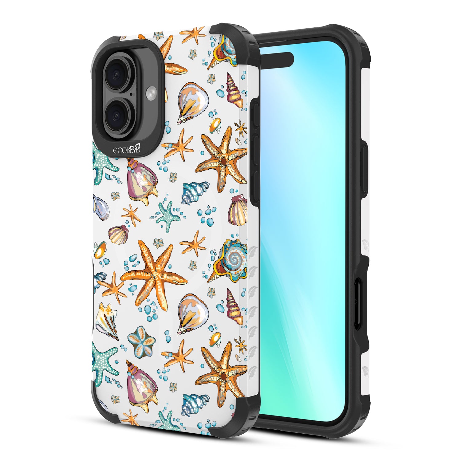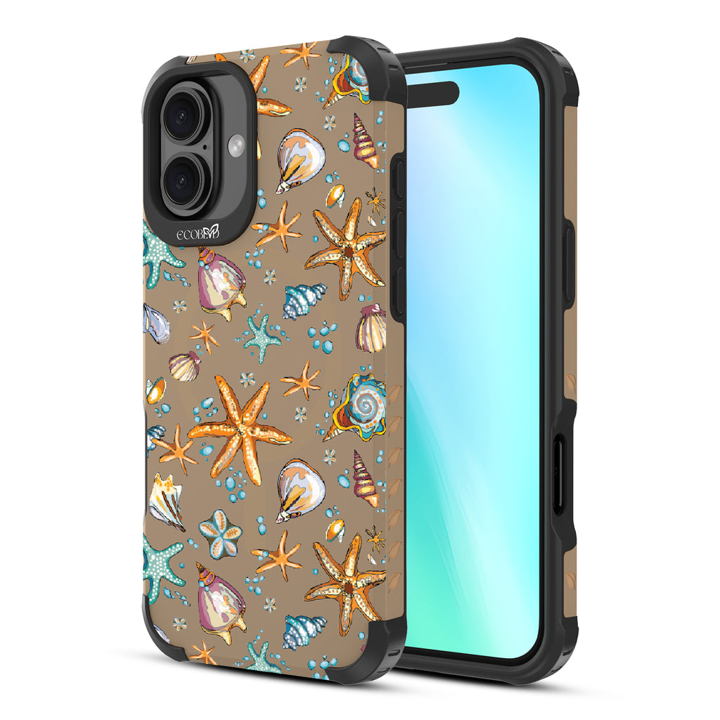 She sells seashells¡and now you can carry them with you wherever you go! The By The Sea Shore design on our Reforge rugged iPhone 16 Plus phone case is a beachcomber¡¯s dream, featuring an array of seashells and starfish scattered across a sandy seashore. It¡¯s like a walk on the beach, minus the sand between your toes.