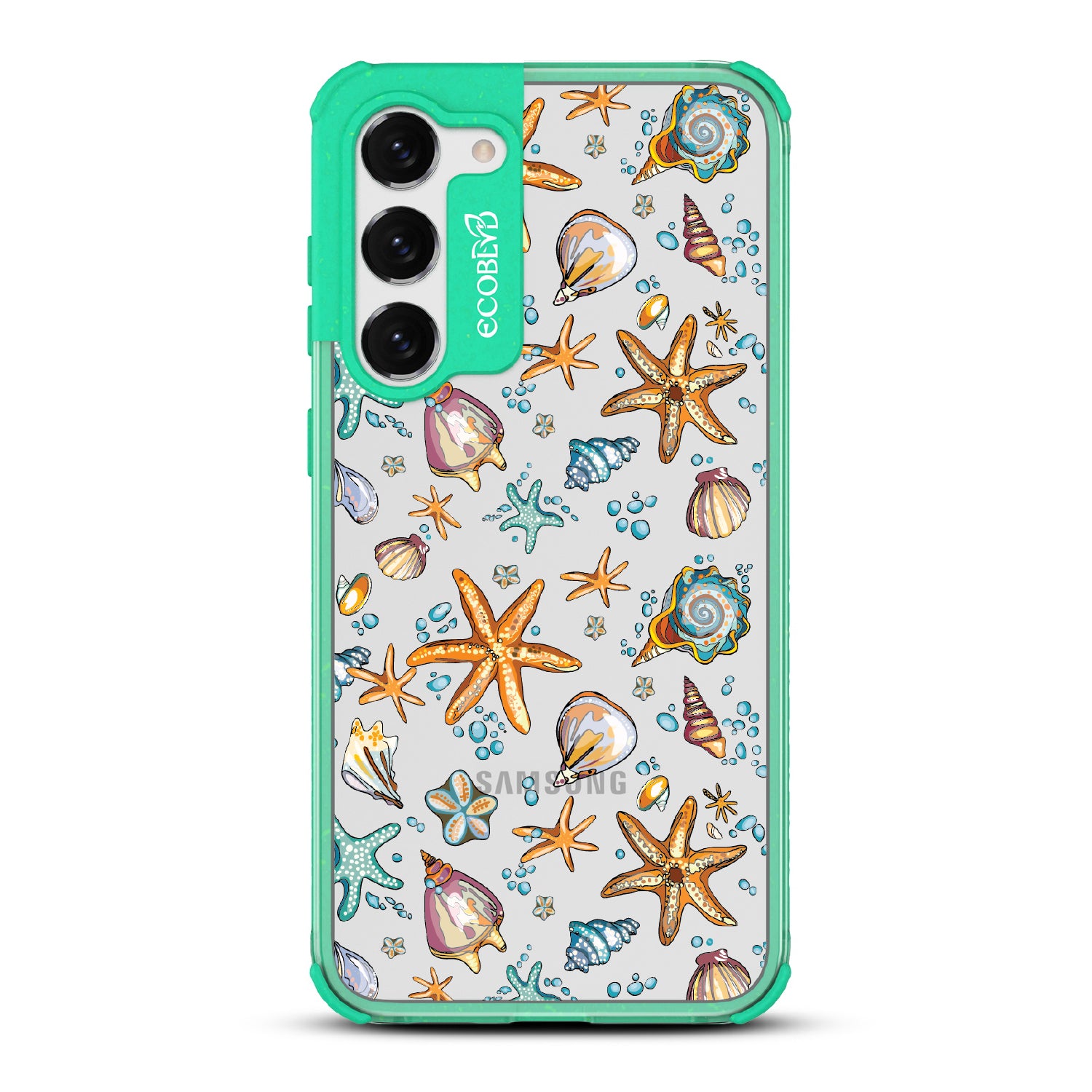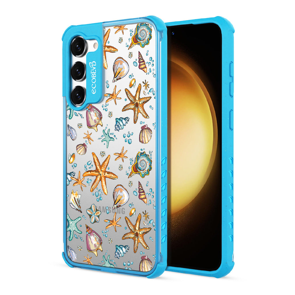 She sells seashells… and now you can carry them with you wherever you go! The By The Sea Shore design on our Laguna clear Galaxy S23 Plus phone case is a beachcomber’s dream, featuring an array of seashells and starfish scattered across a sandy seashore. It’s like a walk on the beach, minus the sand between your toes.