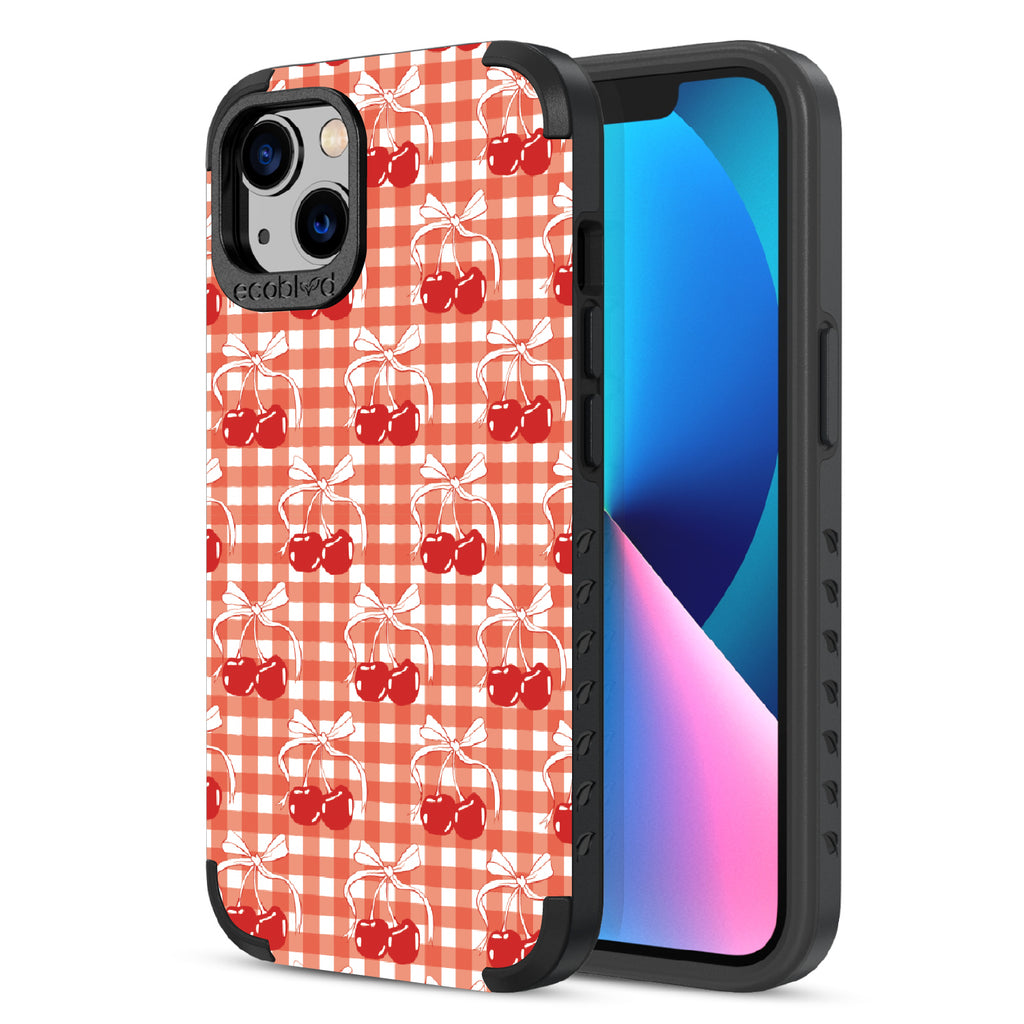 Indulge in a slice of Americana with the Cherry Picnic design on our Mojave rugged iPhone 13 phone case, evoking memories of sun-soaked afternoons and sweet gatherings. With its charming cherries and classic checker print picnic blanket motif, this design pays homage to the cherished tradition of outdoor gatherings.