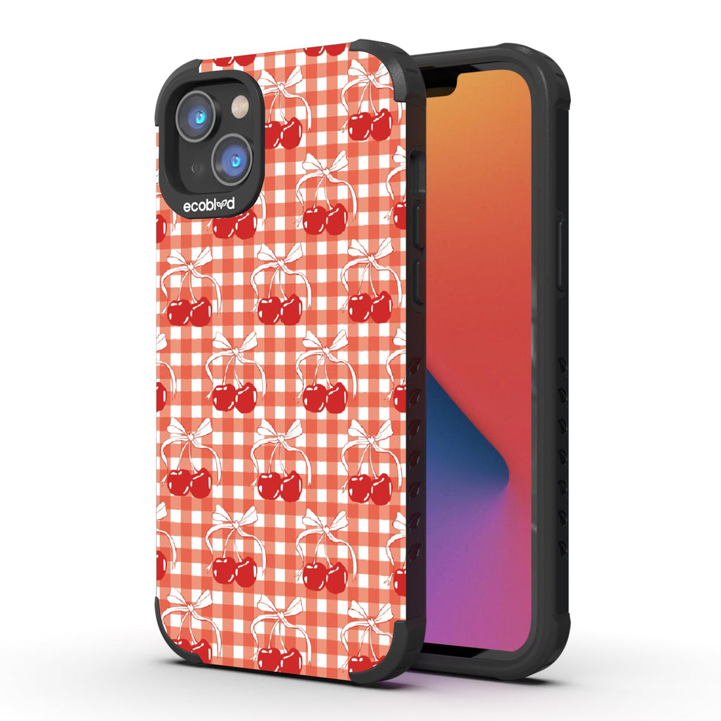 Indulge in a slice of Americana with the Cherry Picnic design on our Mojave rugged iPhone 16e, iPhone 14, and iPhone 13 phone case, evoking memories of sun-soaked afternoons and sweet gatherings. With its charming cherries and classic checker print picnic blanket motif, this design pays homage to the cherished tradition of outdoor gatherings.