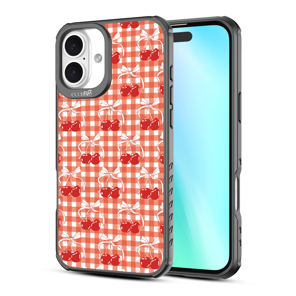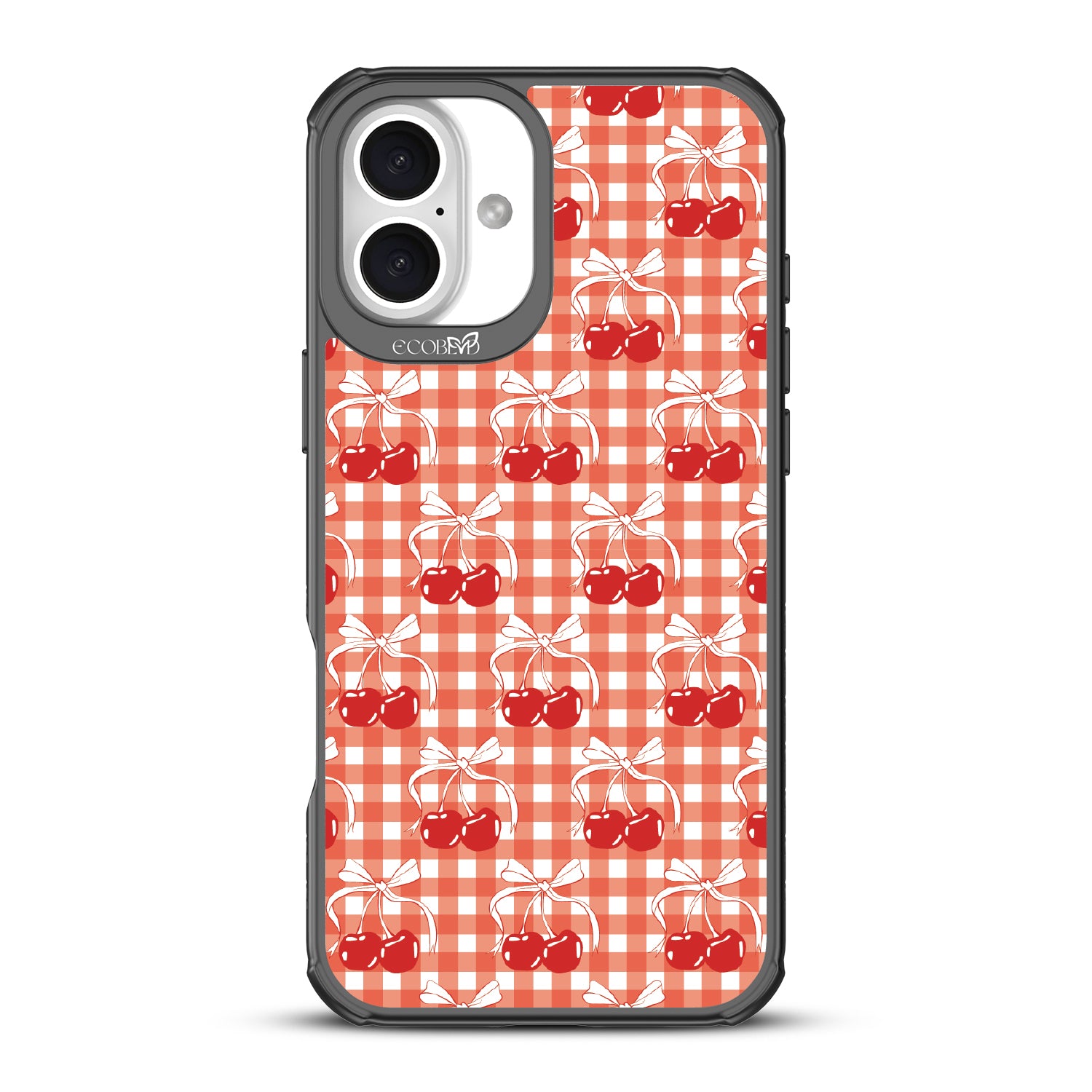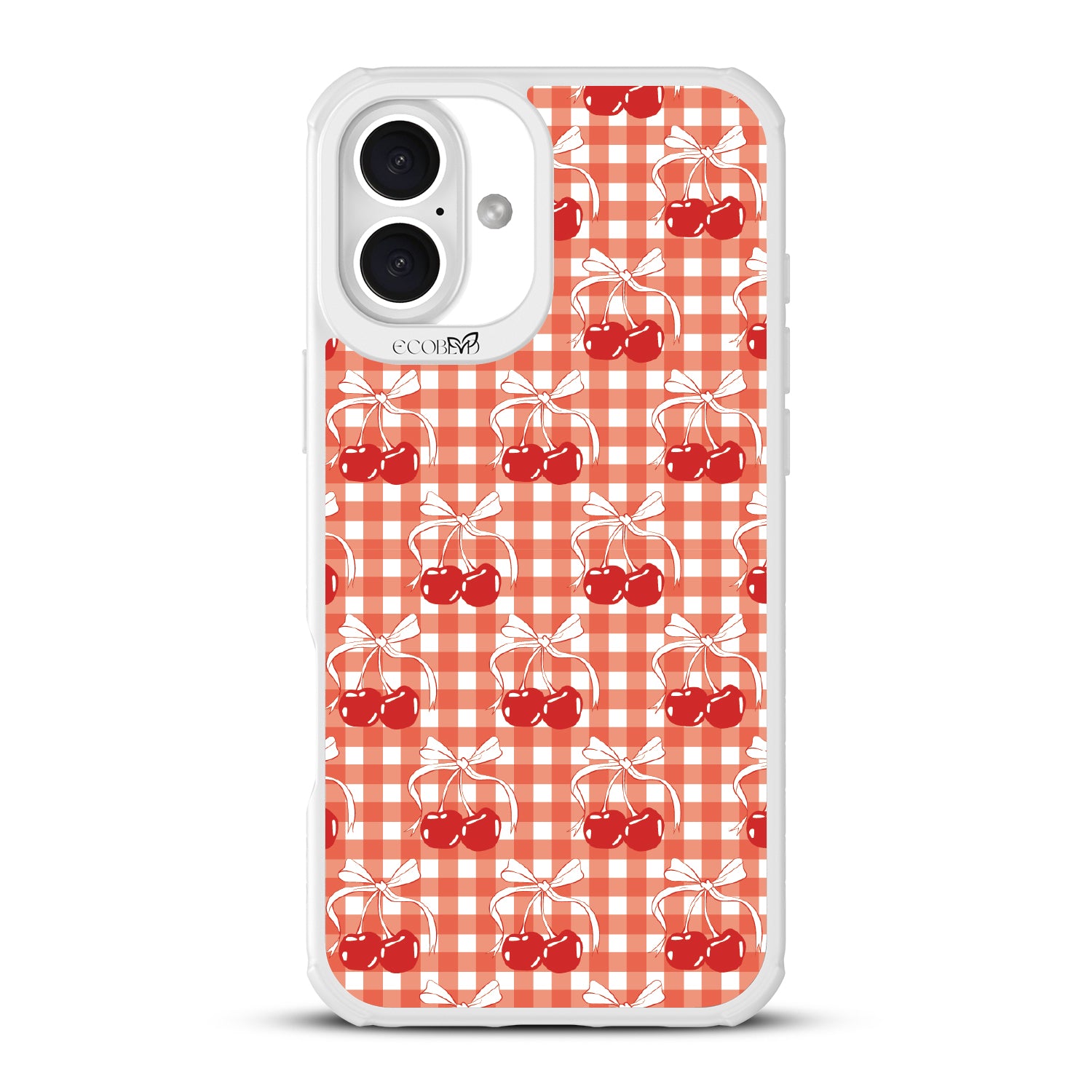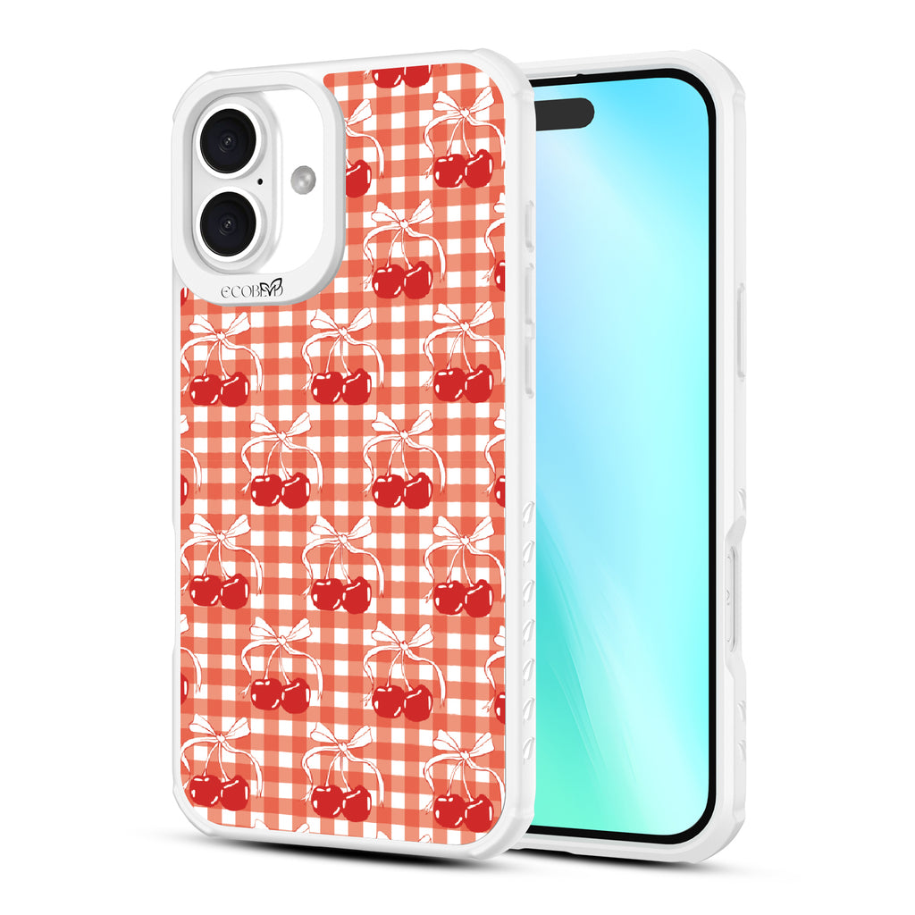 Indulge in a slice of Americana with the Cherry Picnic design on our Revive clear iPhone 16 Plus phone case phone case, evoking memories of sun-soaked afternoons and sweet gatherings. With its charming cherries and classic checker print picnic blanket motif, this design pays homage to the cherished tradition of outdoor gatherings.