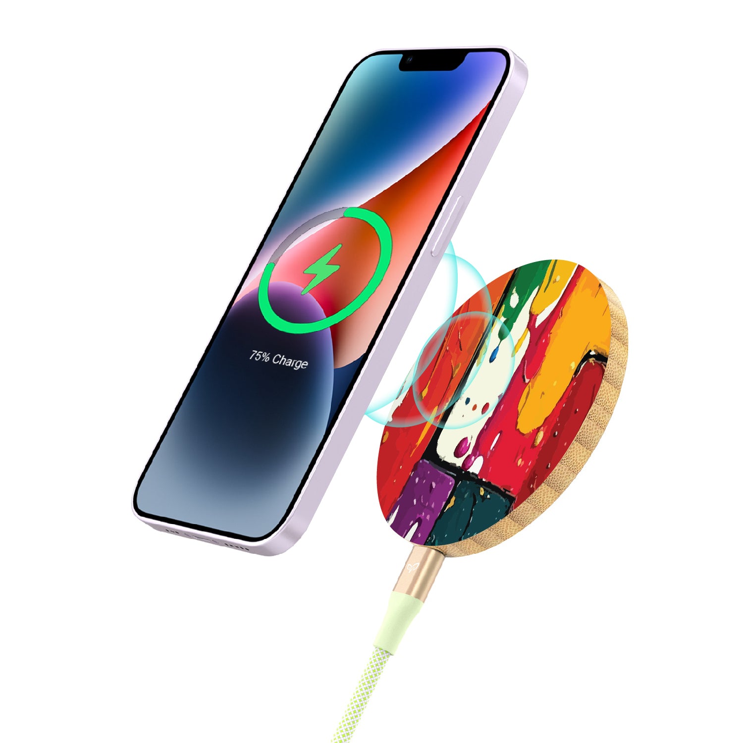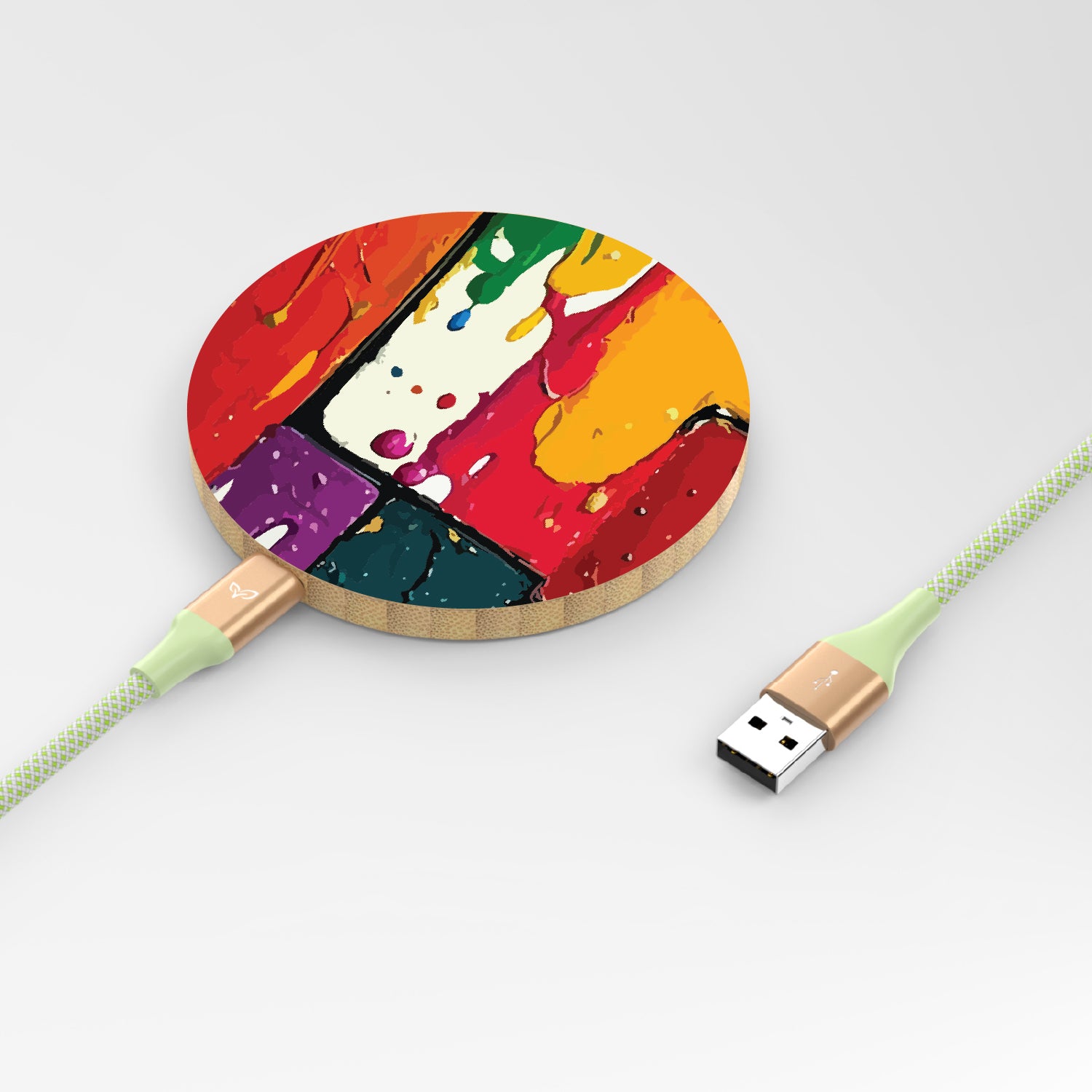 A brush with creativity can get a little messy. The Color Me Mine design on our Bamboo Wireless Charger mixes structured shapes with streaks of movement, proving that the best masterpieces happen when you let the paint do the talking.