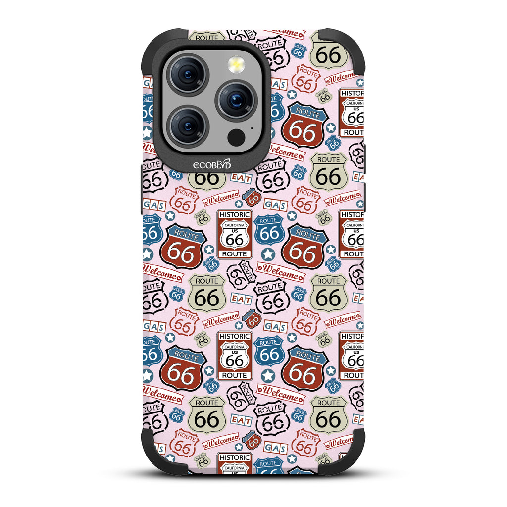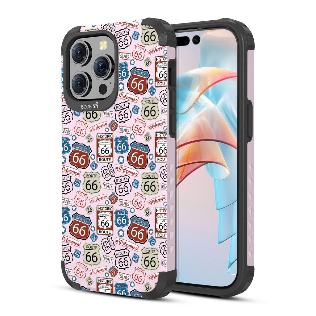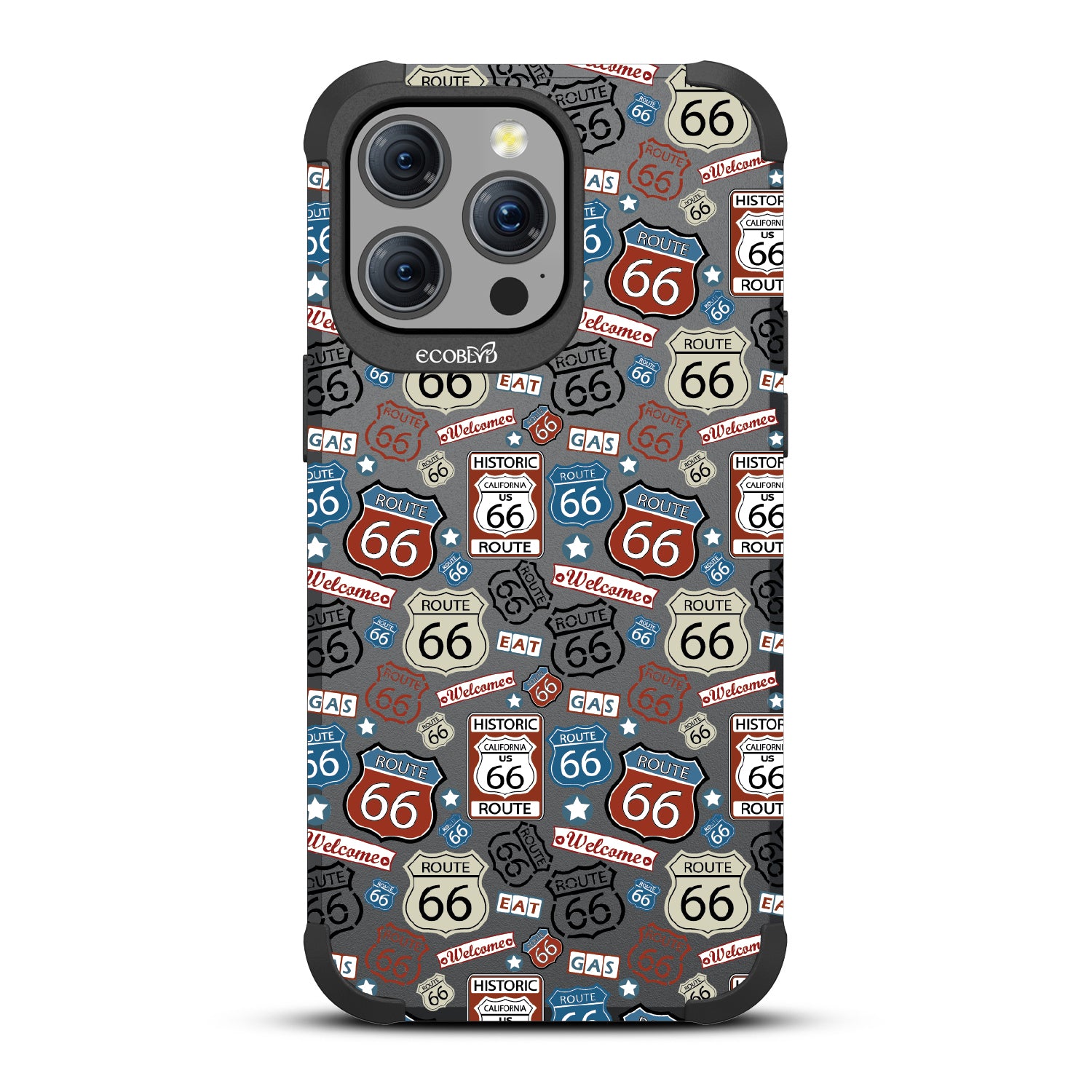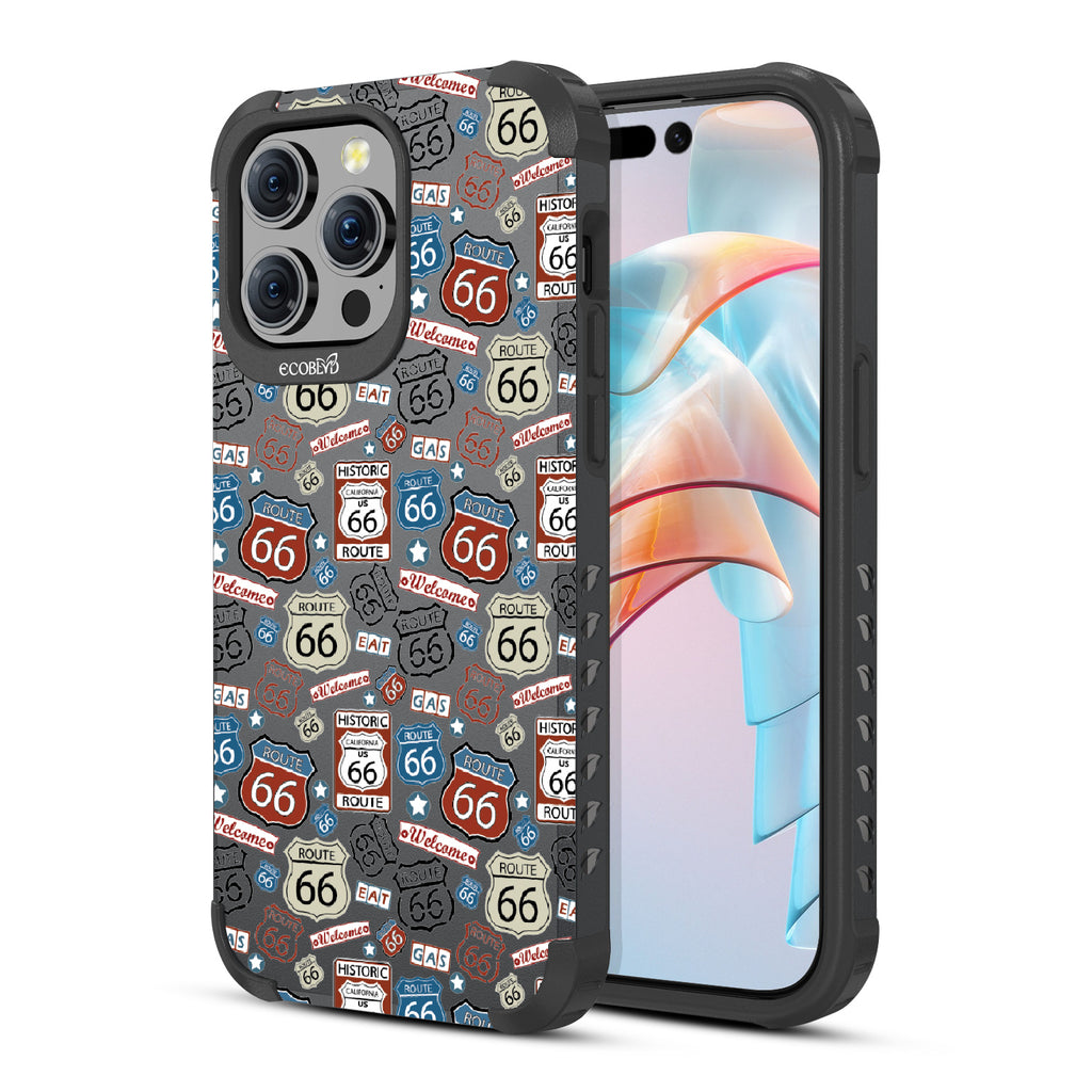 Travel the famed Route 66 with our Country Roads design on our Mojave rugged iPhone 15 Pro Max MagSafe case. Showcasing iconic Route 66 signs, rustic road markers, and scenic stops, this design celebrates the timeless appeal of America’s most famous highway.