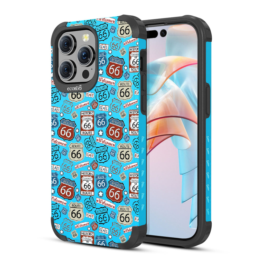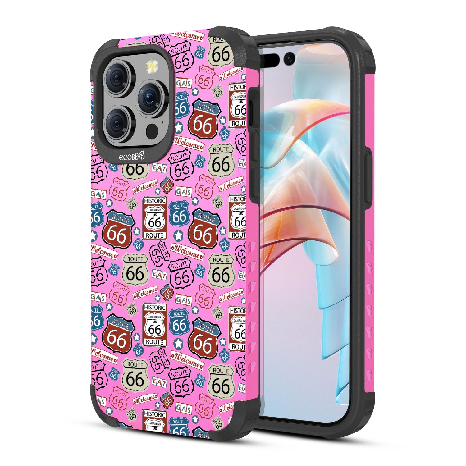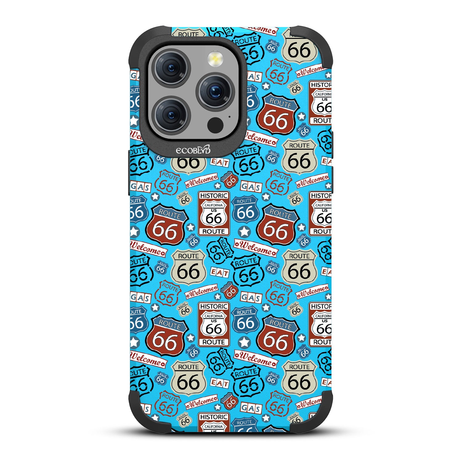 Travel the famed Route 66 with our Country Roads design on our Mojave rugged iPhone 15 Pro Max MagSafe case. Showcasing iconic Route 66 signs, rustic road markers, and scenic stops, this design celebrates the timeless appeal of America’s most famous highway.