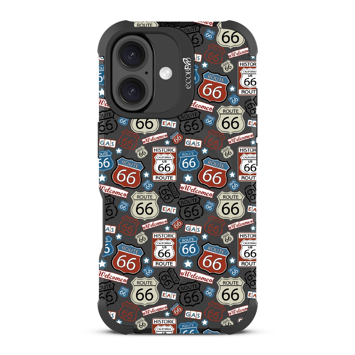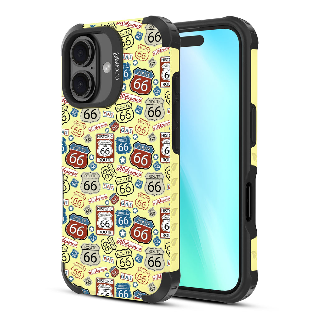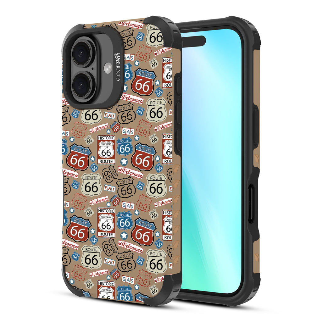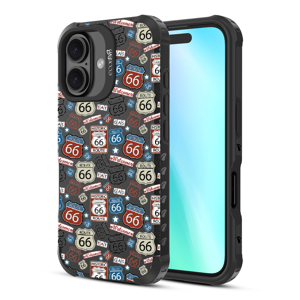 Travel the famed Route 66 with our Country Roads design on our Reforge rugged iPhone 16 phone case. Showcasing iconic Route 66 signs, rustic road markers, and scenic stops, this design celebrates the timeless appeal of America’s most famous highway.