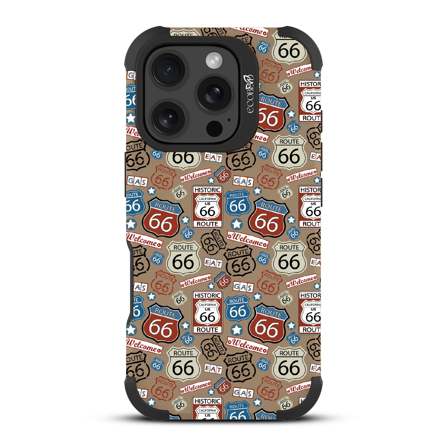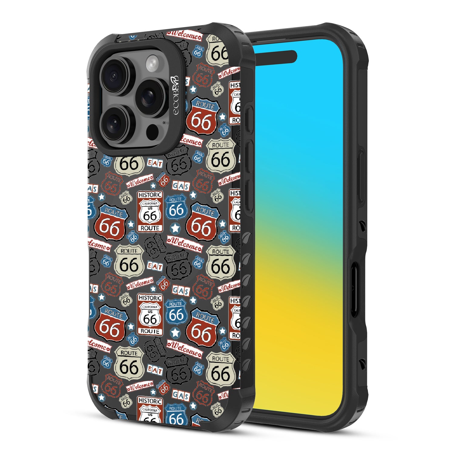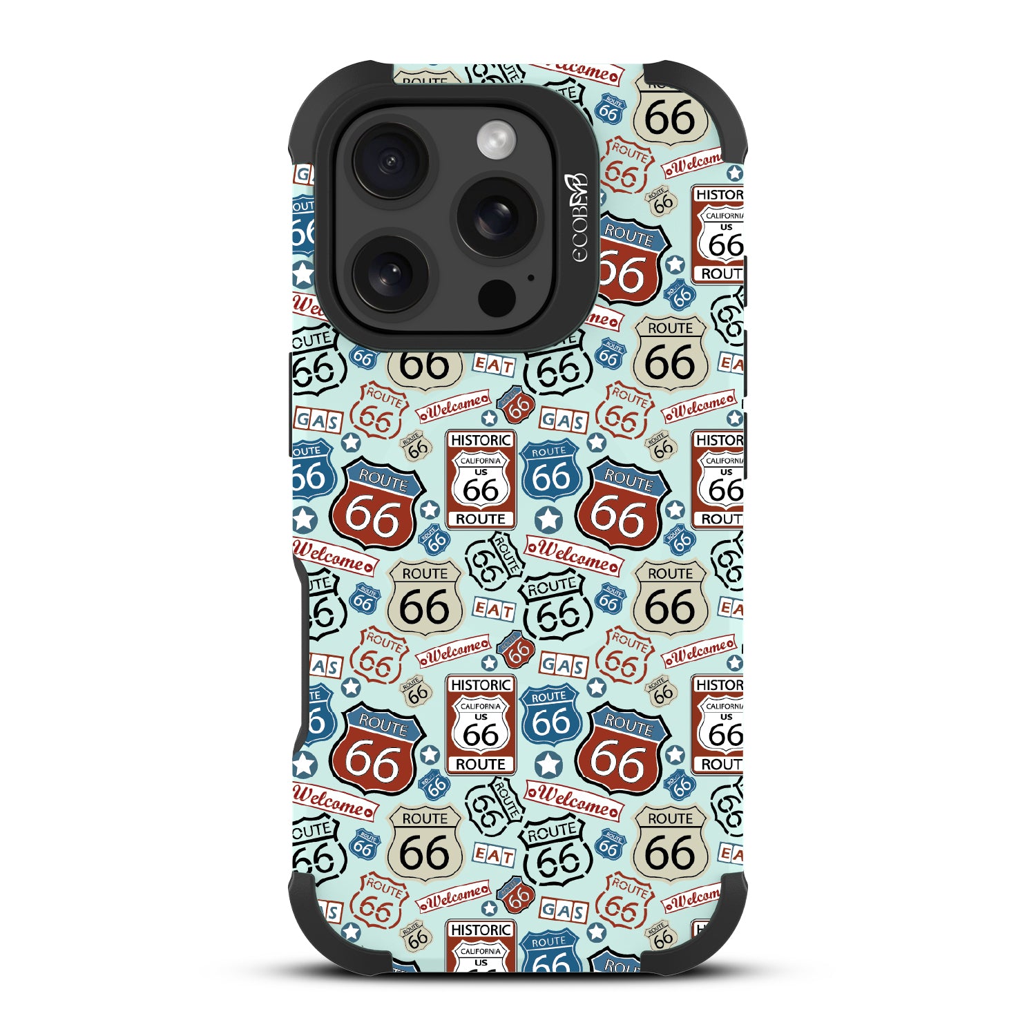 Travel the famed Route 66 with our Country Roads design on our Reforge rugged iPhone 16 Pro phone case. Showcasing iconic Route 66 signs, rustic road markers, and scenic stops, this design celebrates the timeless appeal of America’s most famous highway.