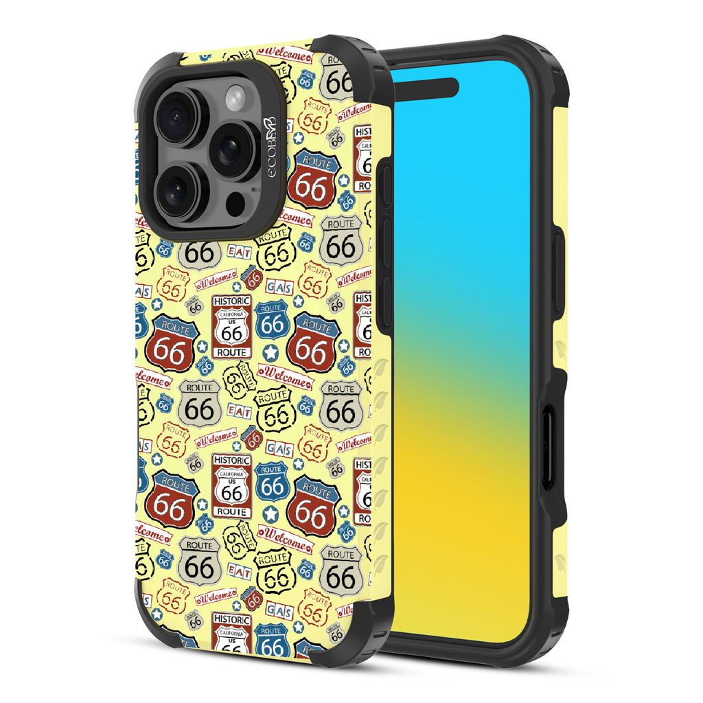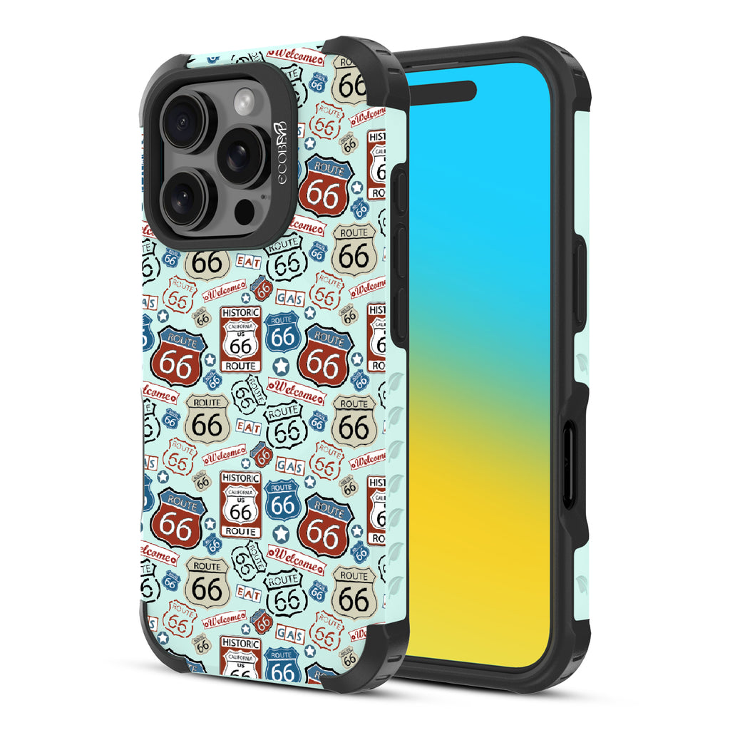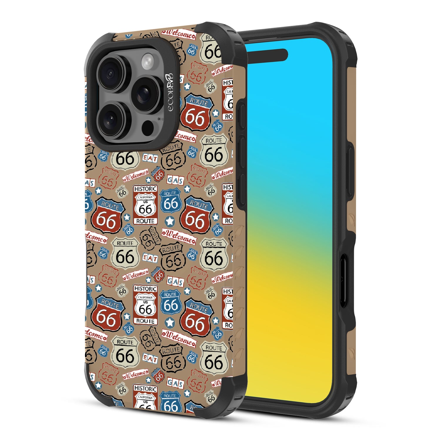 Travel the famed Route 66 with our Country Roads design on our Reforge rugged iPhone 16 Pro phone case. Showcasing iconic Route 66 signs, rustic road markers, and scenic stops, this design celebrates the timeless appeal of America’s most famous highway.