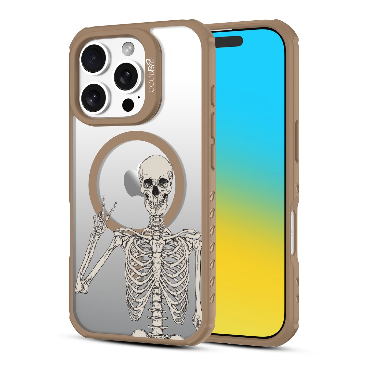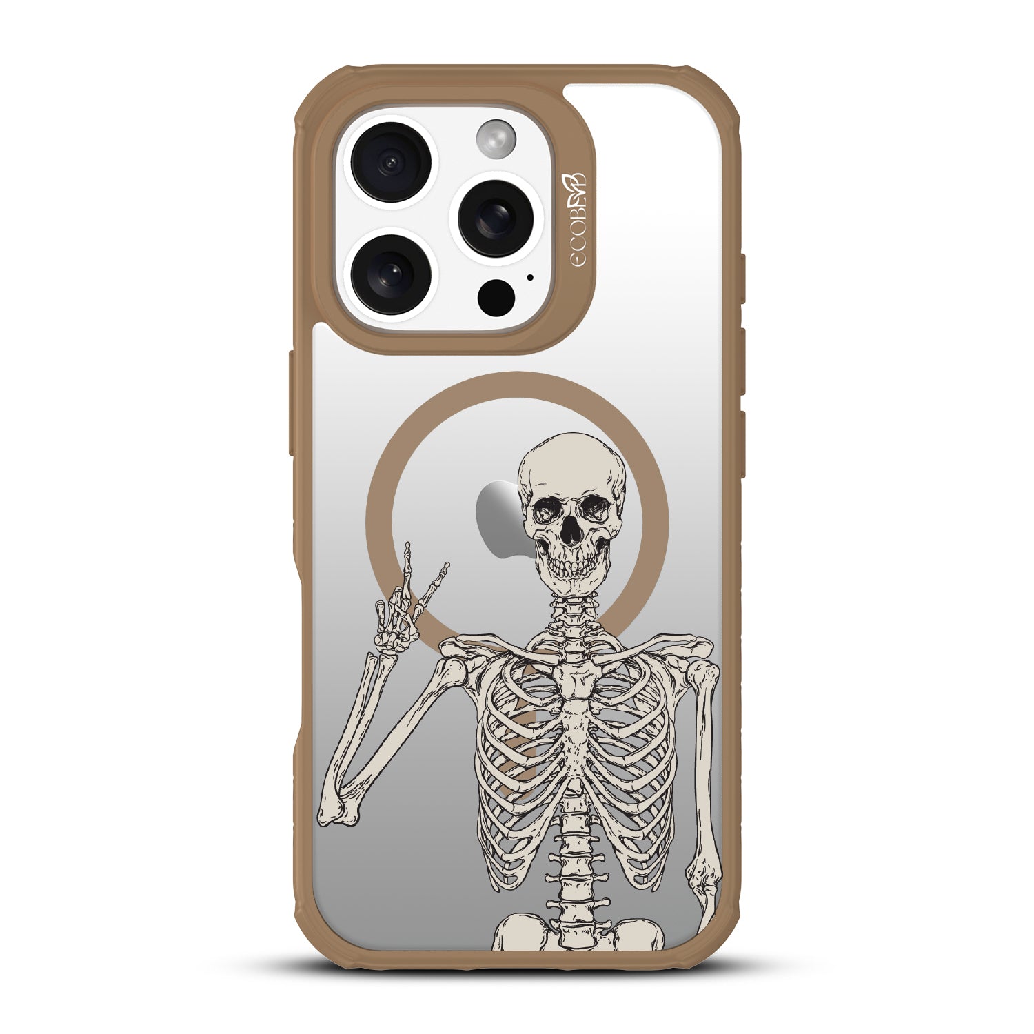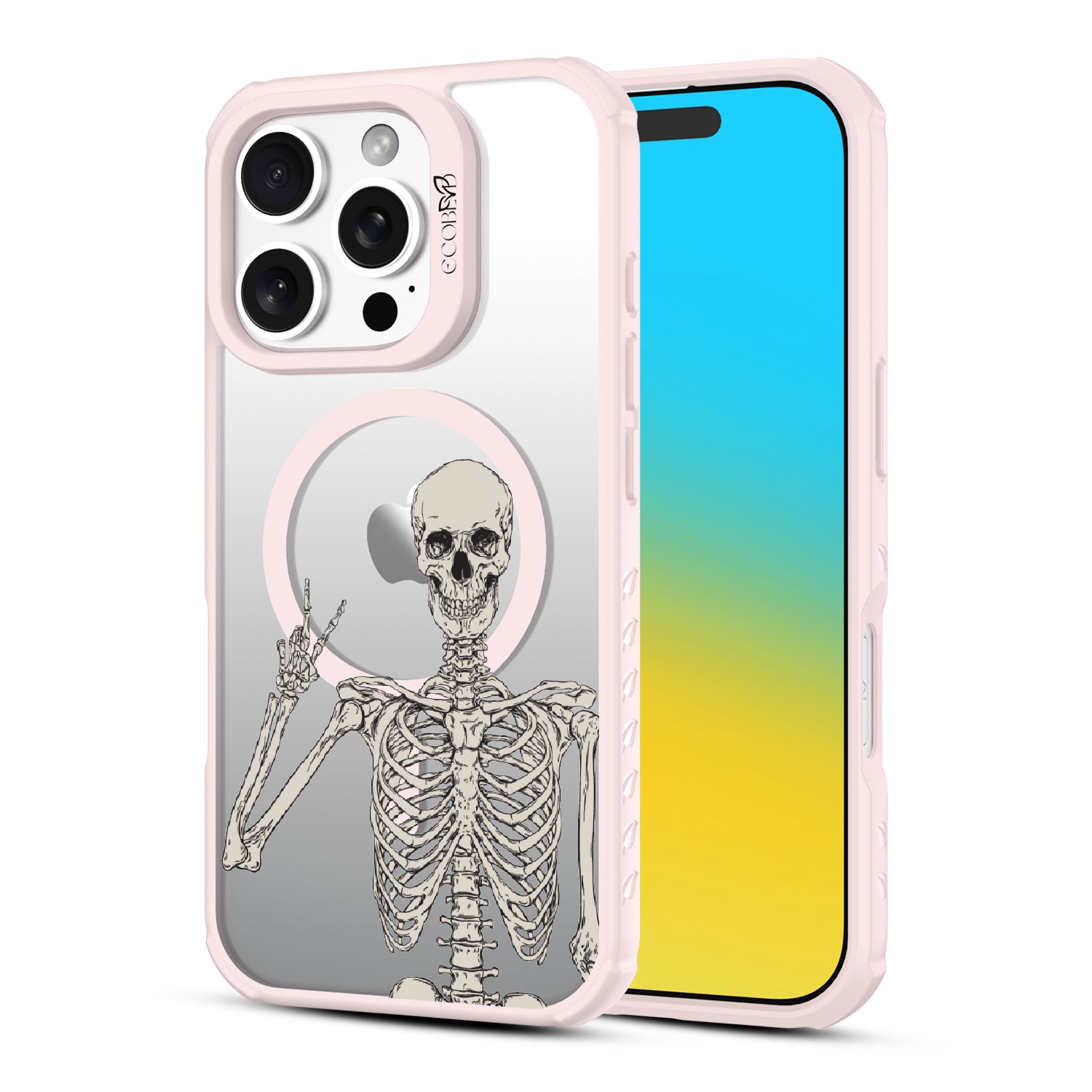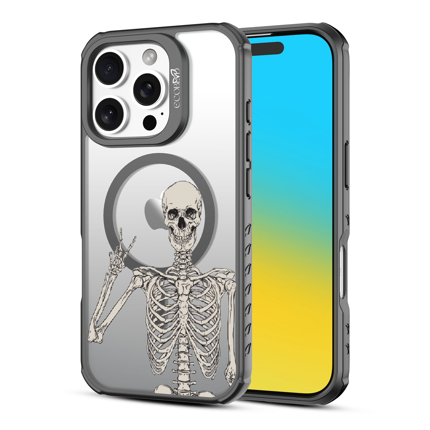 No doubt, the Creepin' It Real design on the Revive clear iPhone 16 Pro phone case is sure to make your phone look simply bone-chilling, as it features an eye-catching skeleton giving the peace sign.