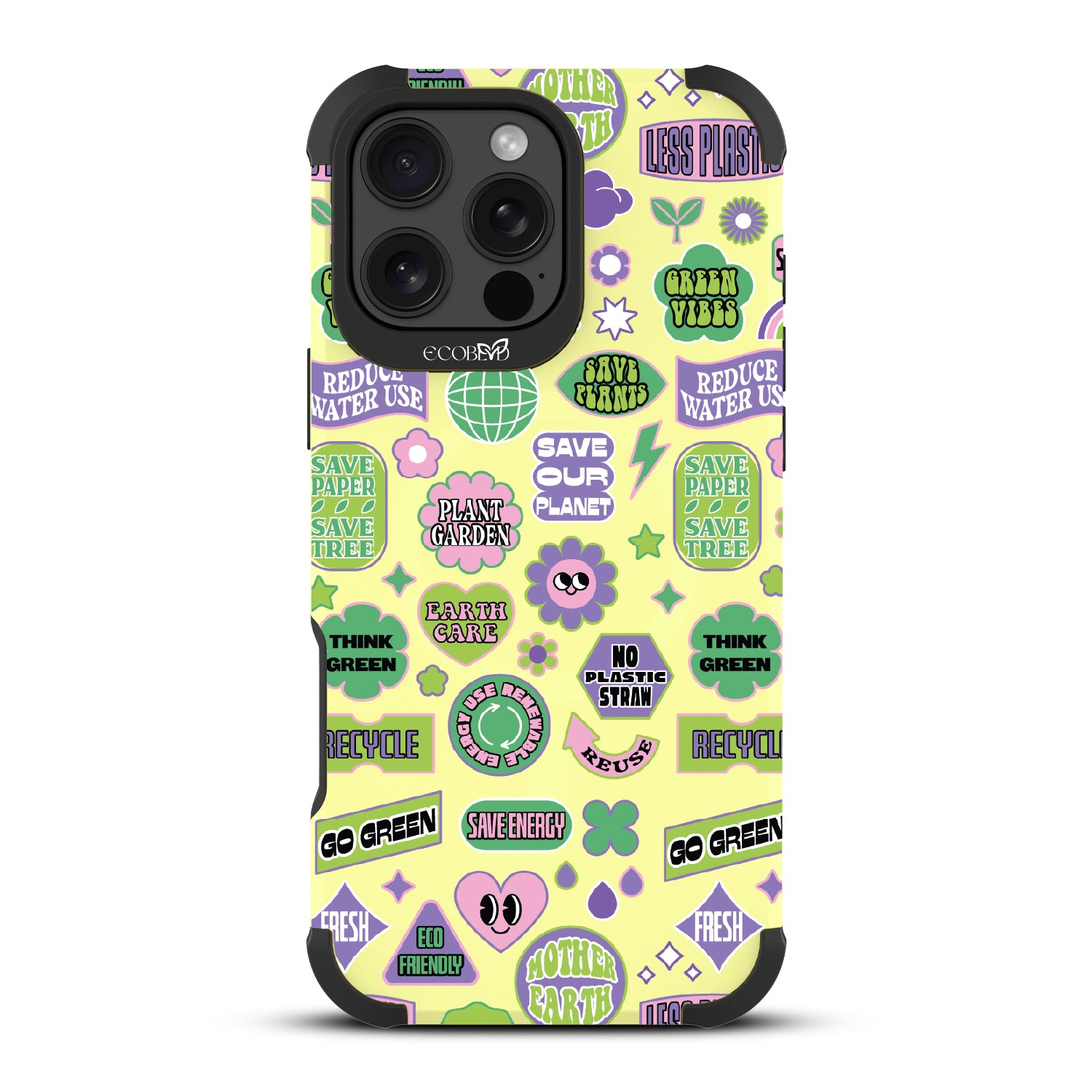 Spread 'Green Vibes' with this design on our Reforge rugged iPhone 16 Pro Max phone case, where your phone becomes a beacon of eco-friendliness. It's not just about looking good; it's about doing good, too. This case sends out a message to recycle, reuse, and respect our planet. With every call or text, let's remind the world to keep it green.