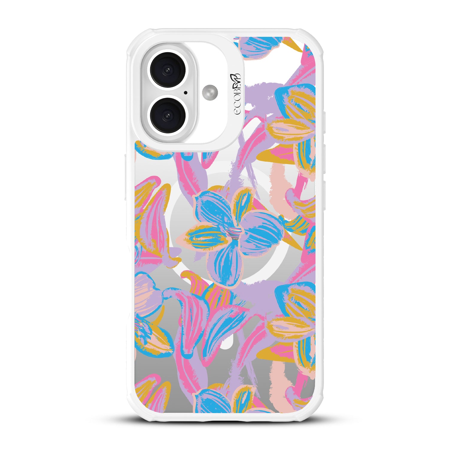 Illuminate your look with the Electric Feel design on our Revive clear iPhone 16 phone case, where pastel flowers glow with an almost neon vibrance. Pastel petals infused with neon-like brightness give this design an electric feel, adding a modern twist to the natural beauty of flowers. Energize your phone and style with a burst of spring's electric beauty, making every moment vibrant and lively.