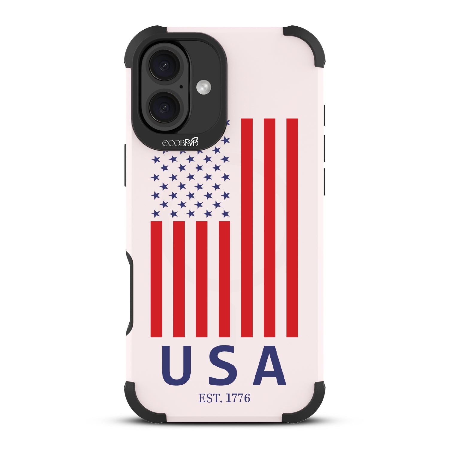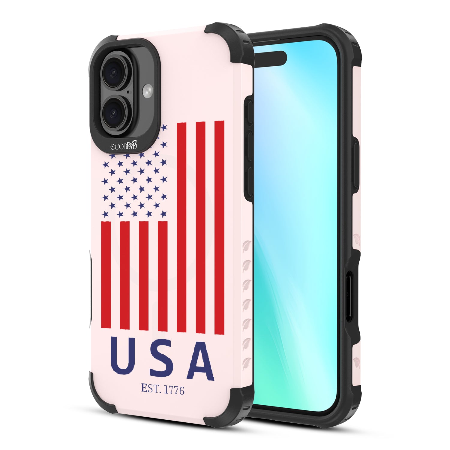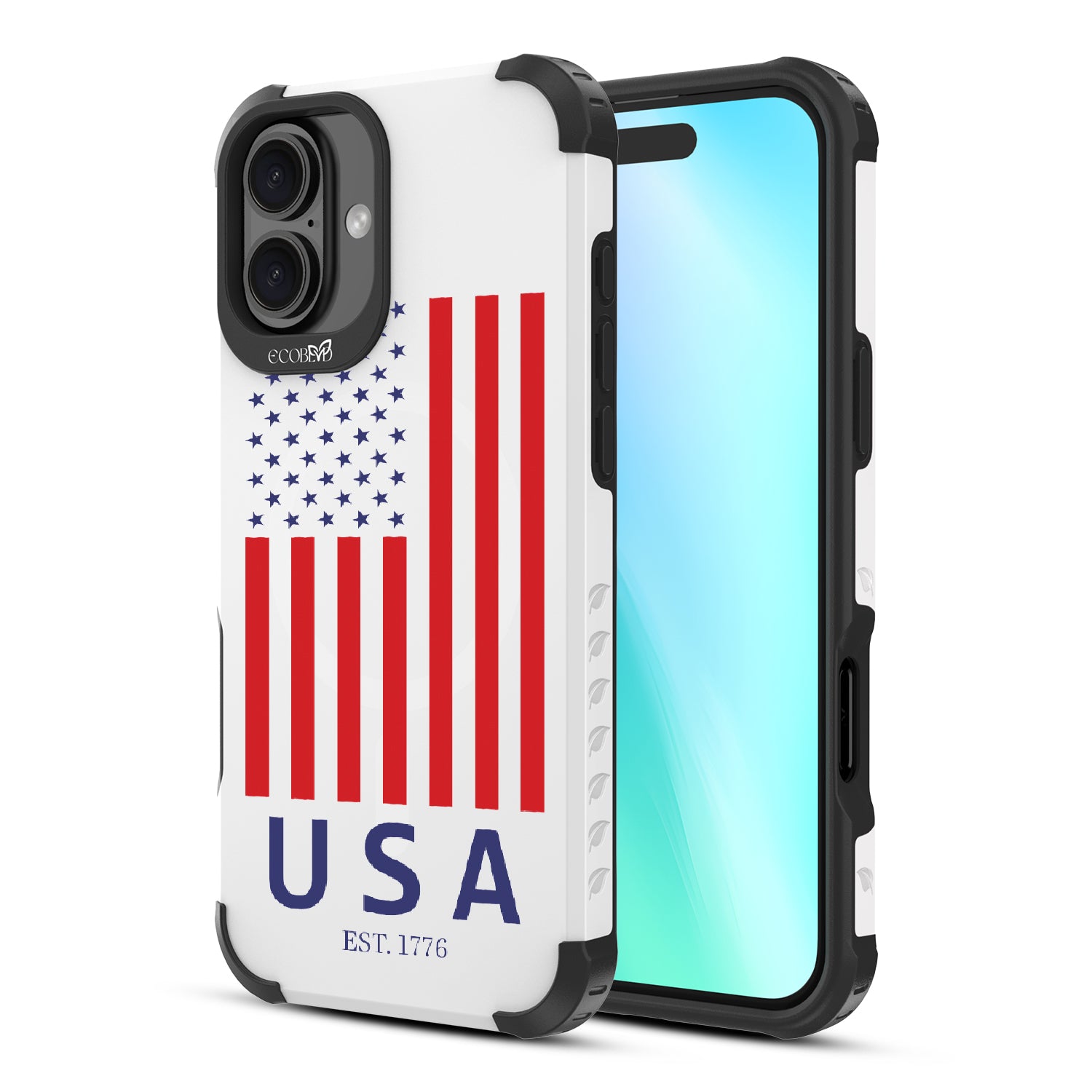 Let freedom ring loud all year long with the EST 1776 design on our Reforge rugged iPhone 16 Plus phone case. This design showcases the iconic stars and stripes, along with "USA" and "EST. 1776," making it the perfect accessory for all patriotic festivities and beyond.