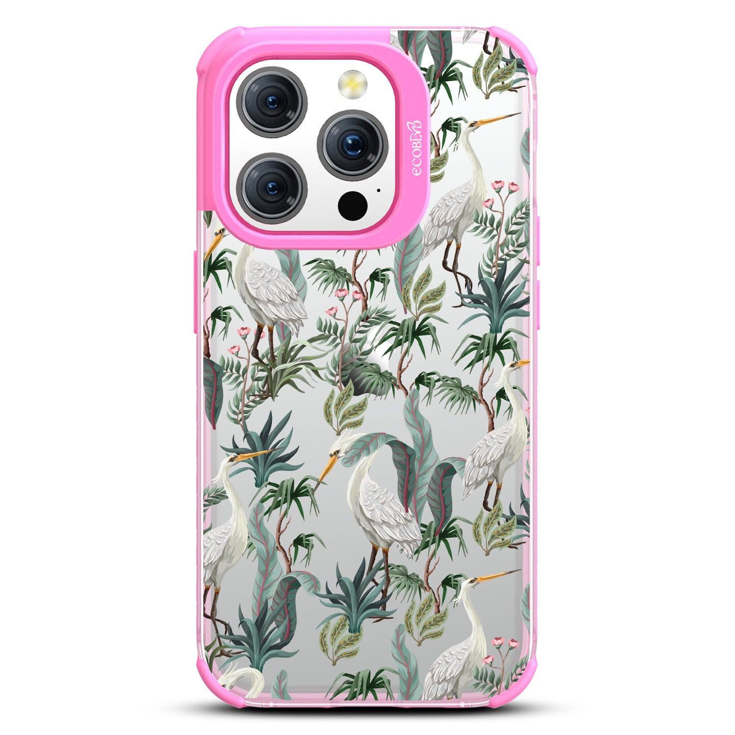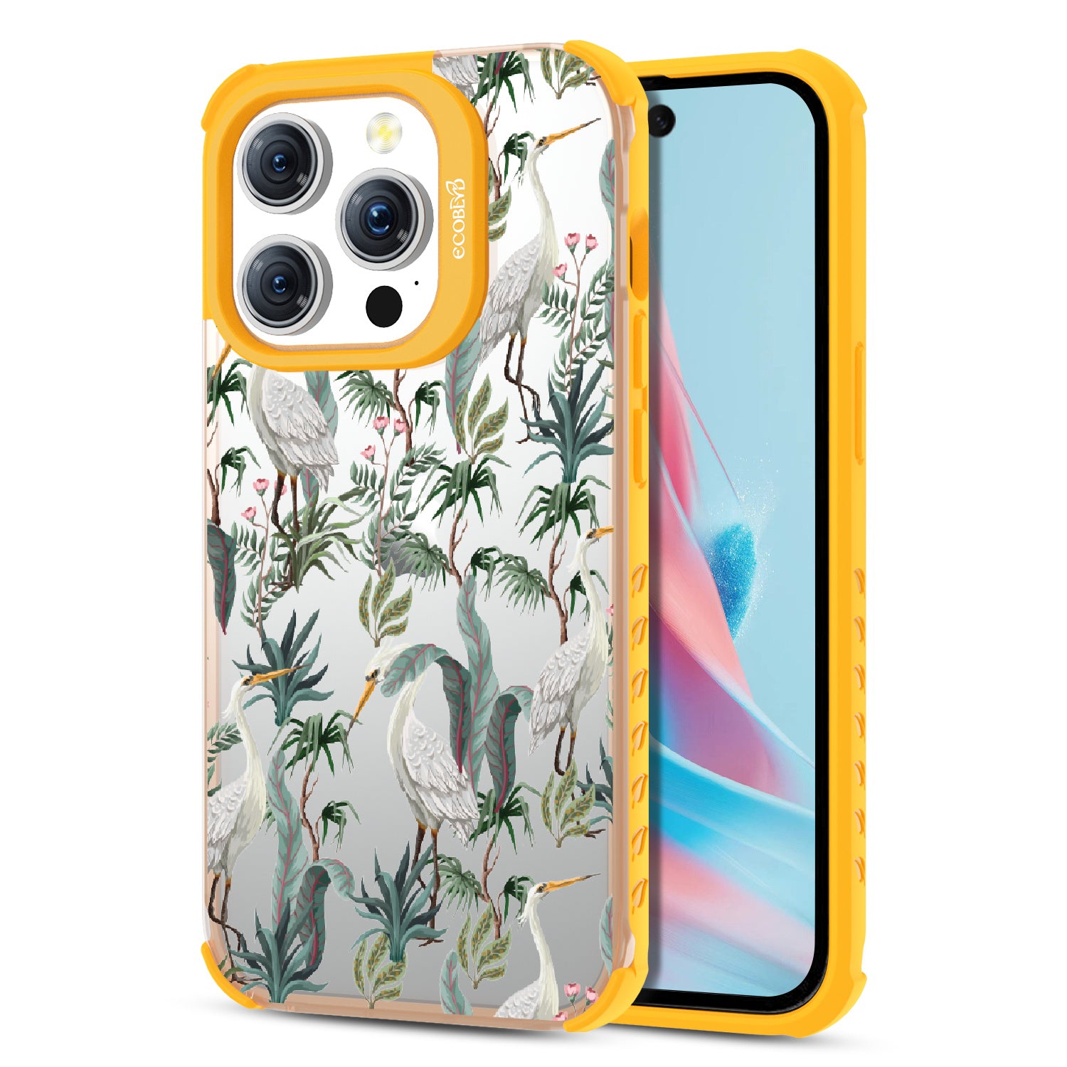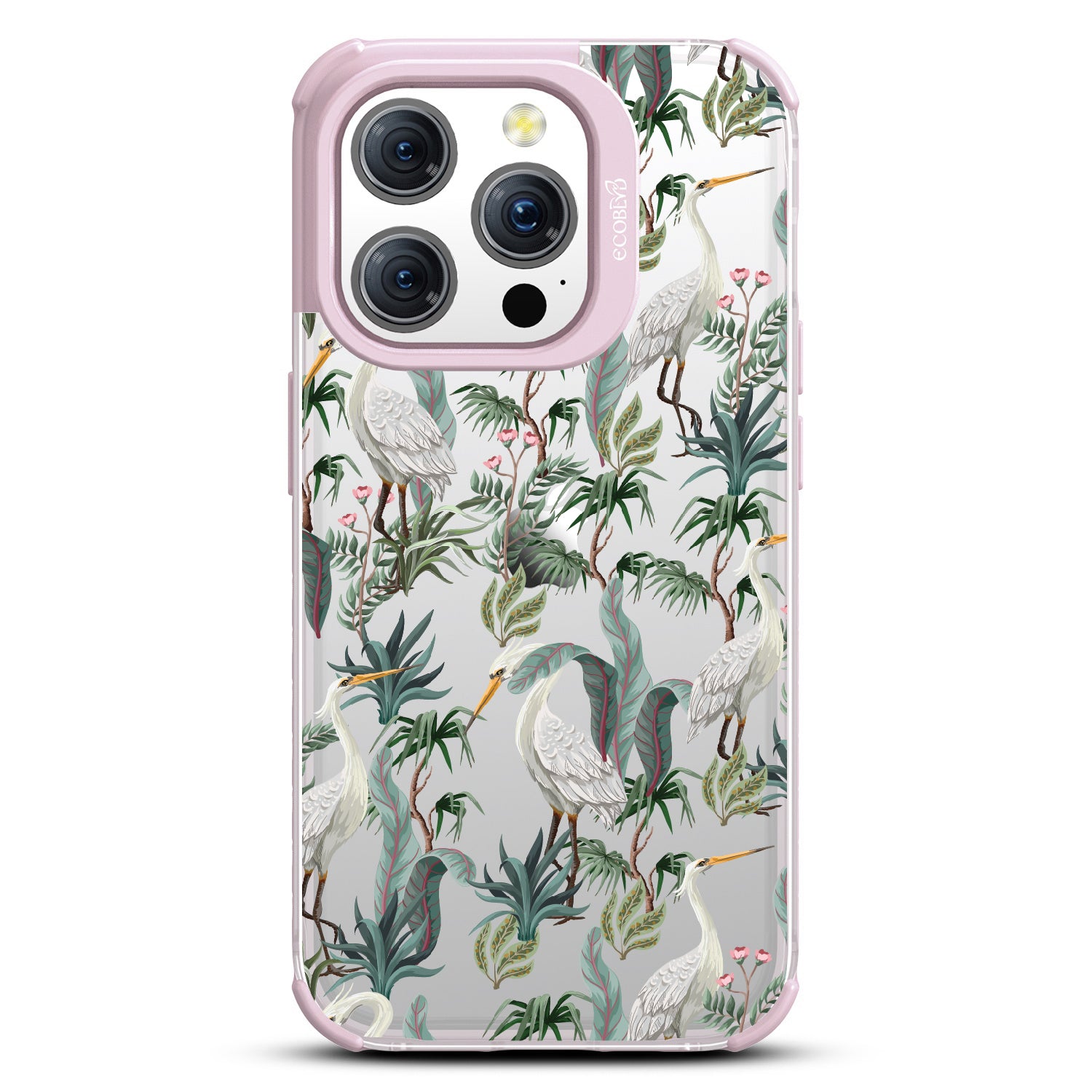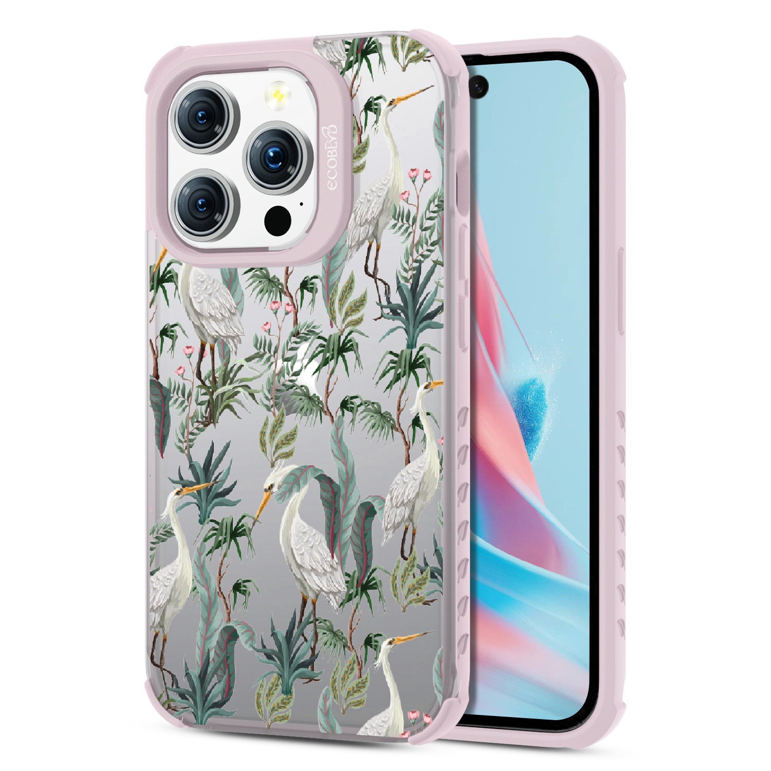 Embrace the strength and beauty of sticking together with Flock Together, an exclusive design crafted for the Laguna clear iPhone 15 Pro case. Immerse yourself in impeccable style and protection while supporting ocean conservation efforts, as elegant heron birds and intricate peonies come together in perfect harmony. Flock Together is more than just a name, it's a powerful message of togetherness and unity. Featuring elegant heron birds and intricate peonies, this design inspires us to embrace our connections and appreciate the beauty that comes with standing together in five captivating colors: Midnight Black, Cascade Blue, Foilage Green, Illuminating Yellow, and Wildflower Pink. With this phone case, you carry with you a reminder of the beauty that lies within collective strength and the significance of standing together.