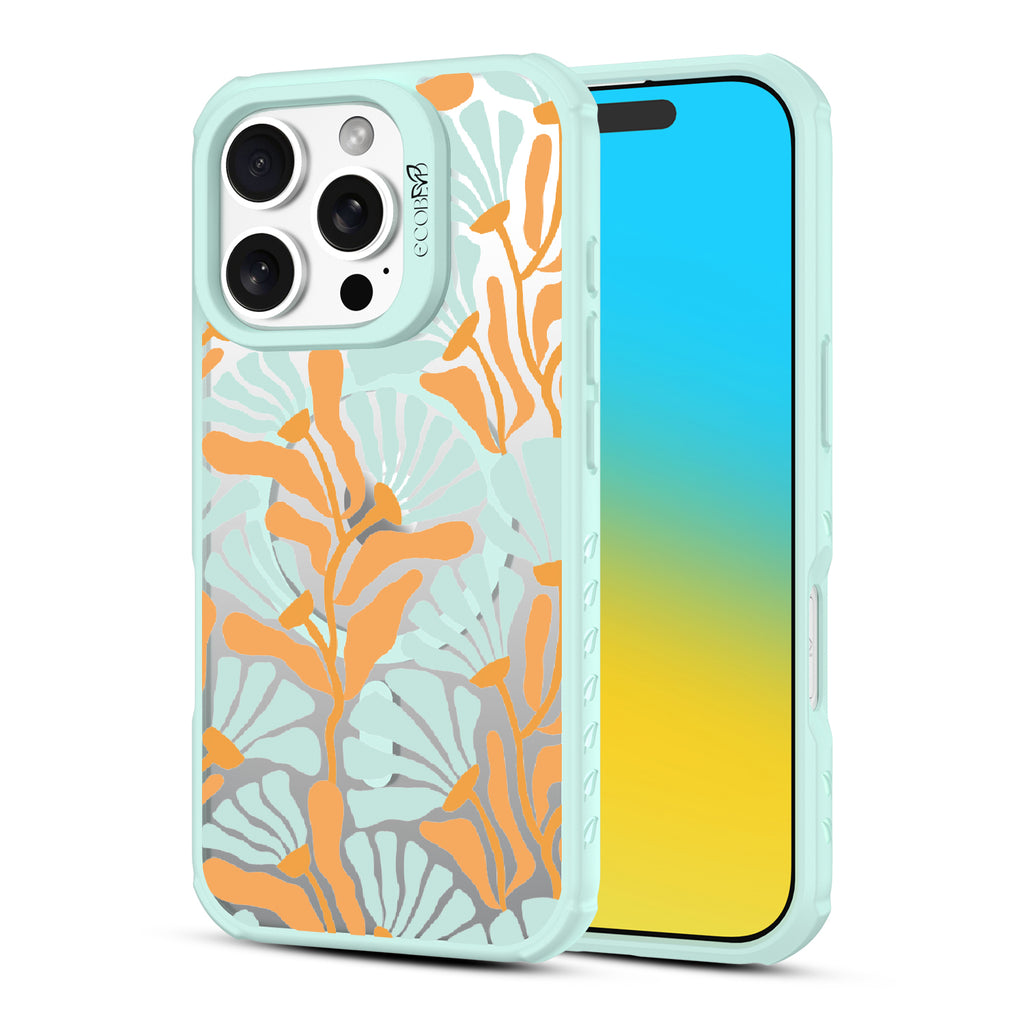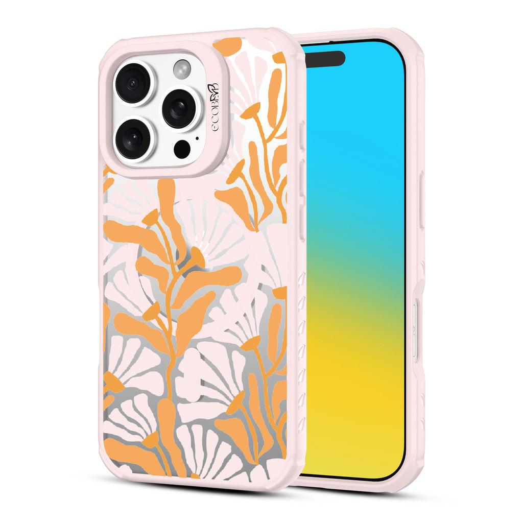 Experience the beauty of paradise in the palm of your hand with the Floral Escape design on our Revive clear iPhone 16 Pro case; a breathtaking, eye-catching design with a mix of tropical colors and floral elements, like a retro Hawaiian shirt print and vintage botanical travel posters, perfect for a tropical Spring Break getaway.