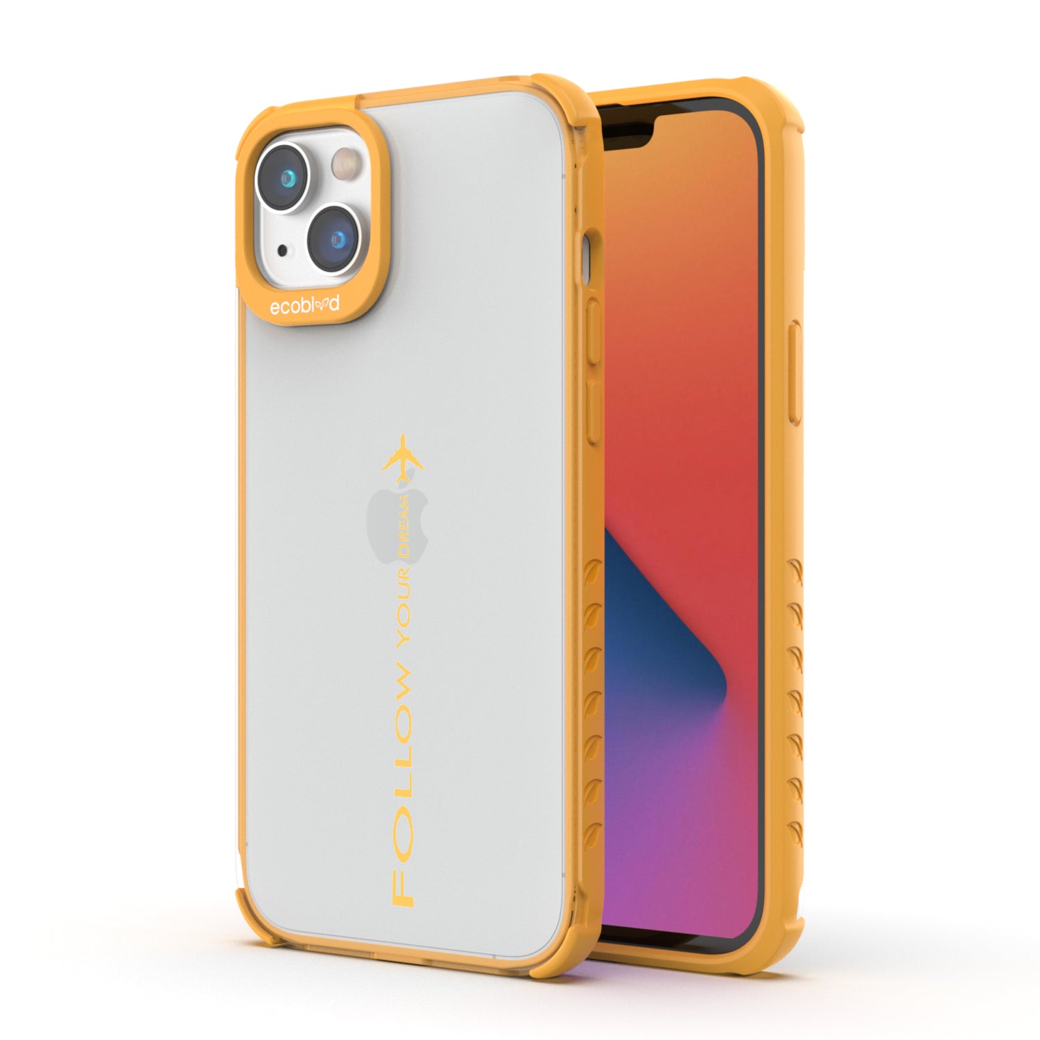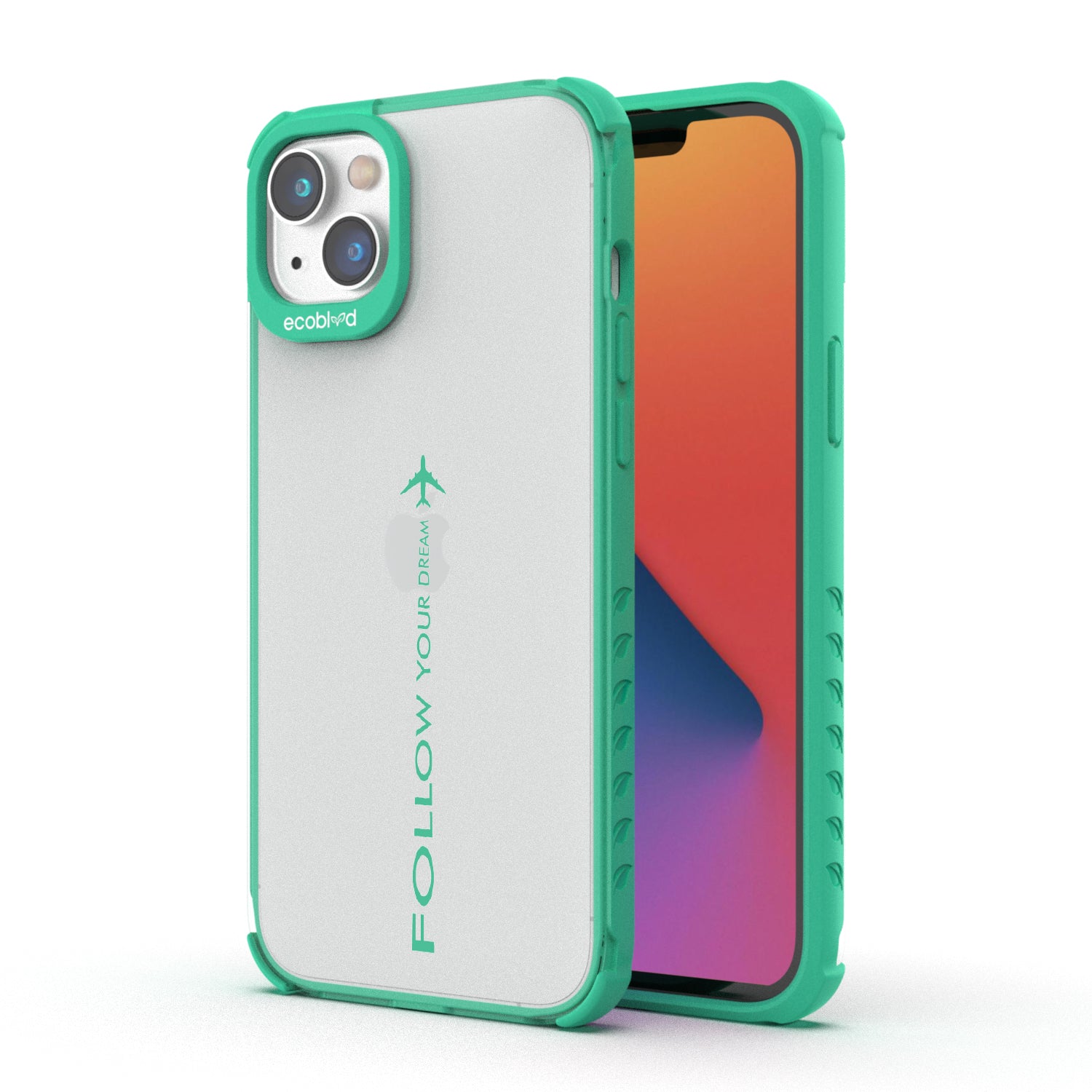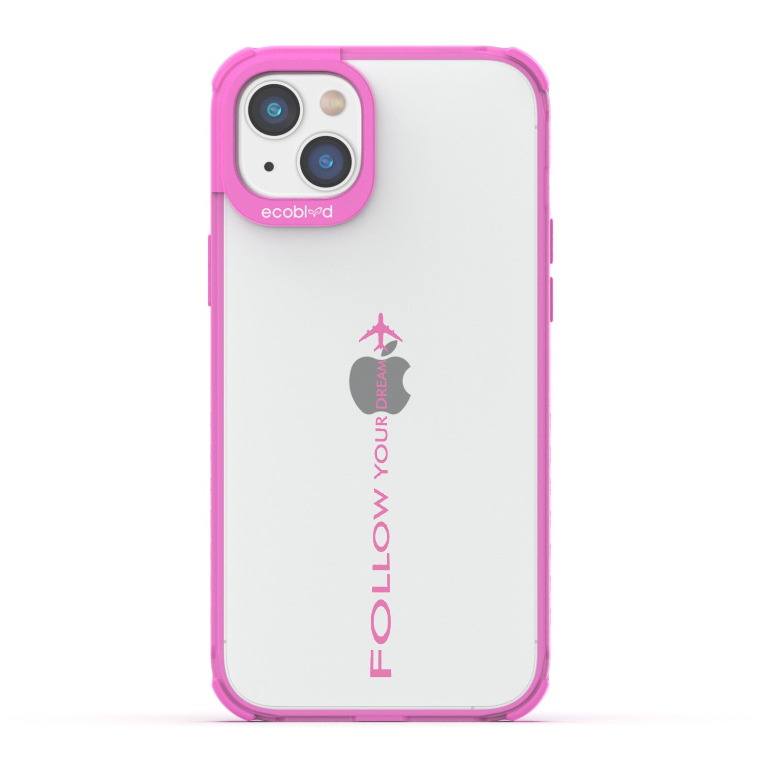 Let your aspirations take flight with the Follow Your Dreams design on our Laguna clear iPhone 14 Plus case. As the airplane streaks across the design, trailing empowering words behind it, envision yourself soaring to new heights and exploring the destinations of your dreams. Whether it's wandering through ancient ruins, lounging on tropical beaches, or marveling at breathtaking landscapes.