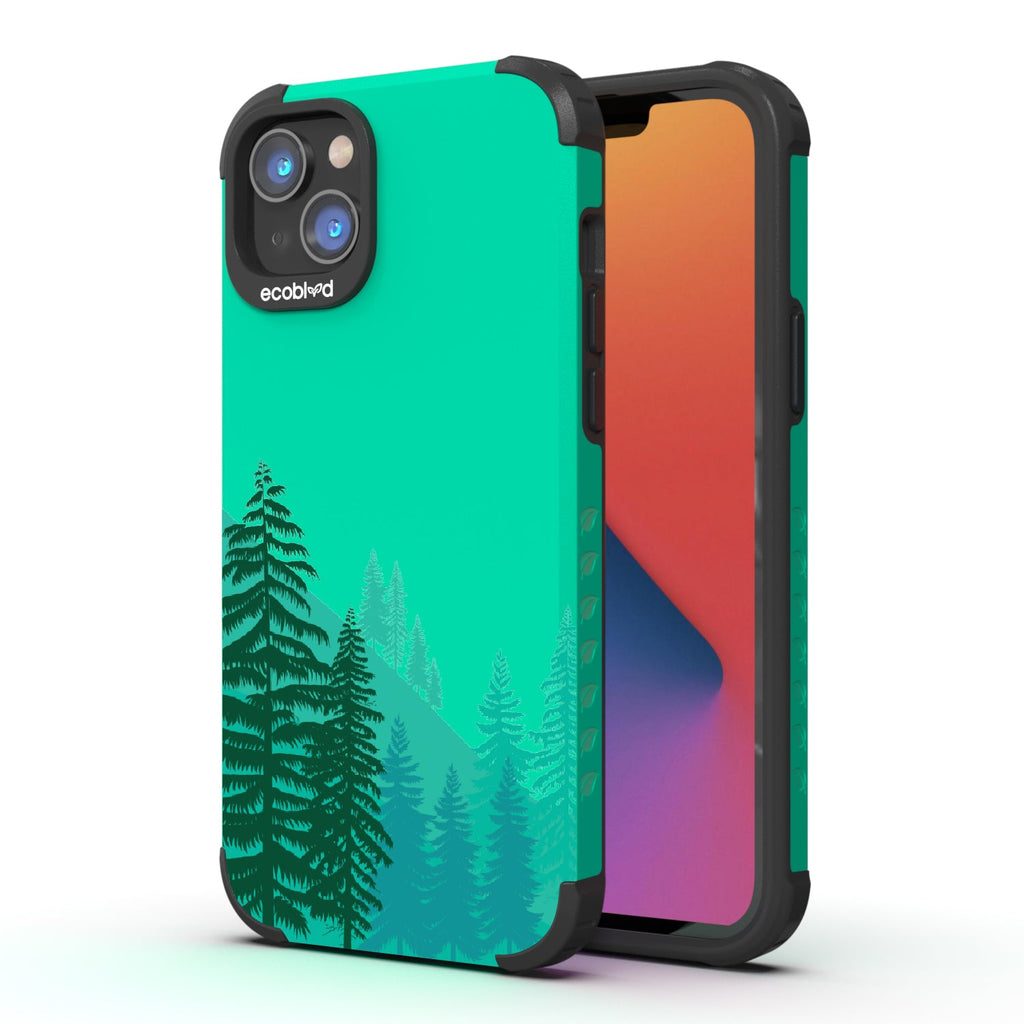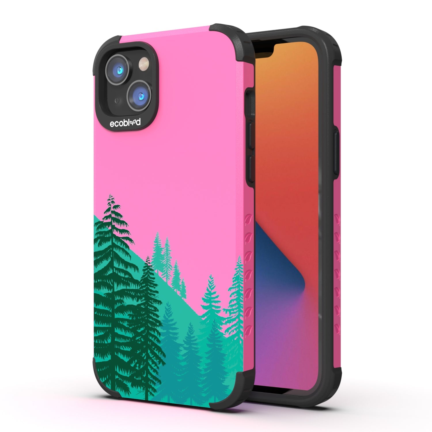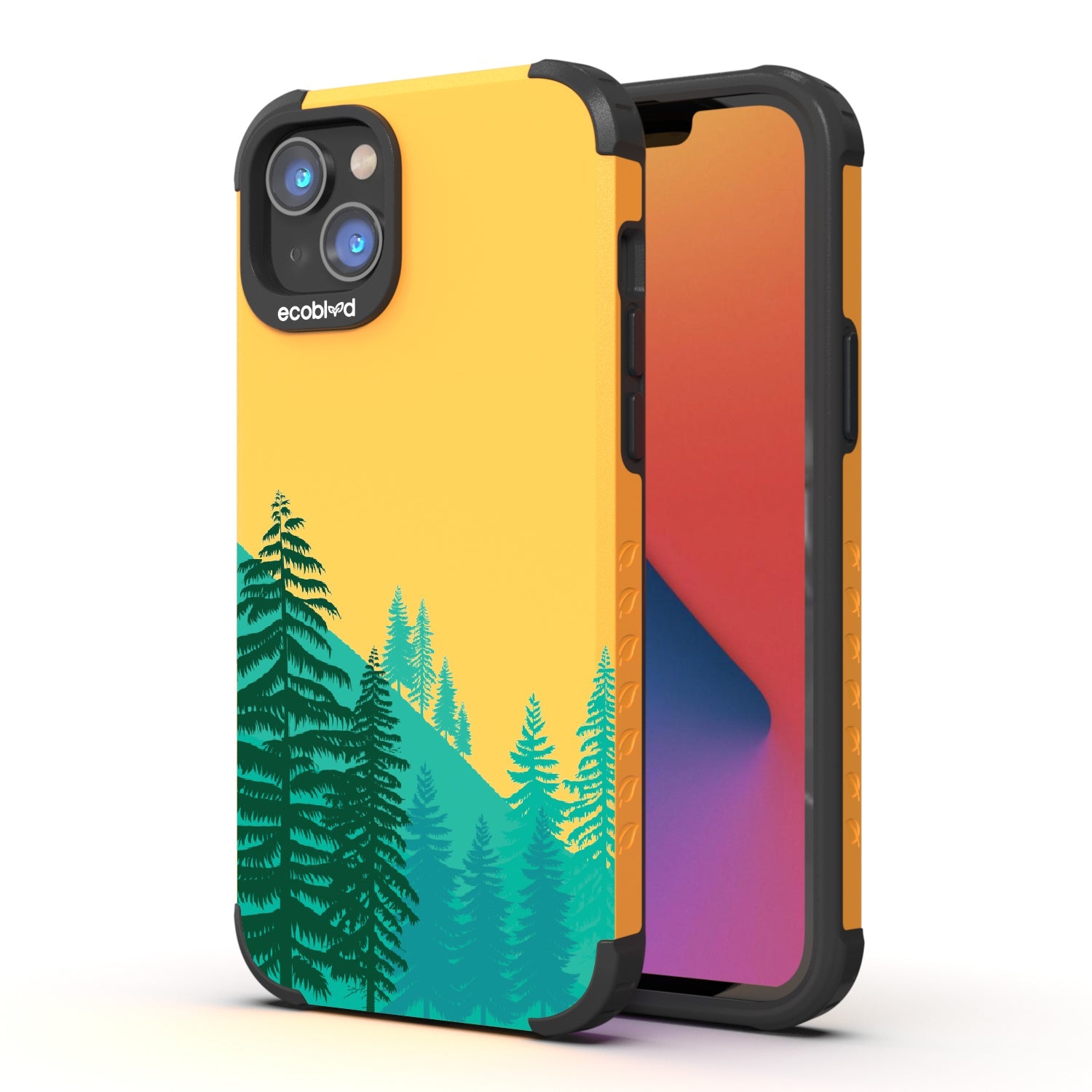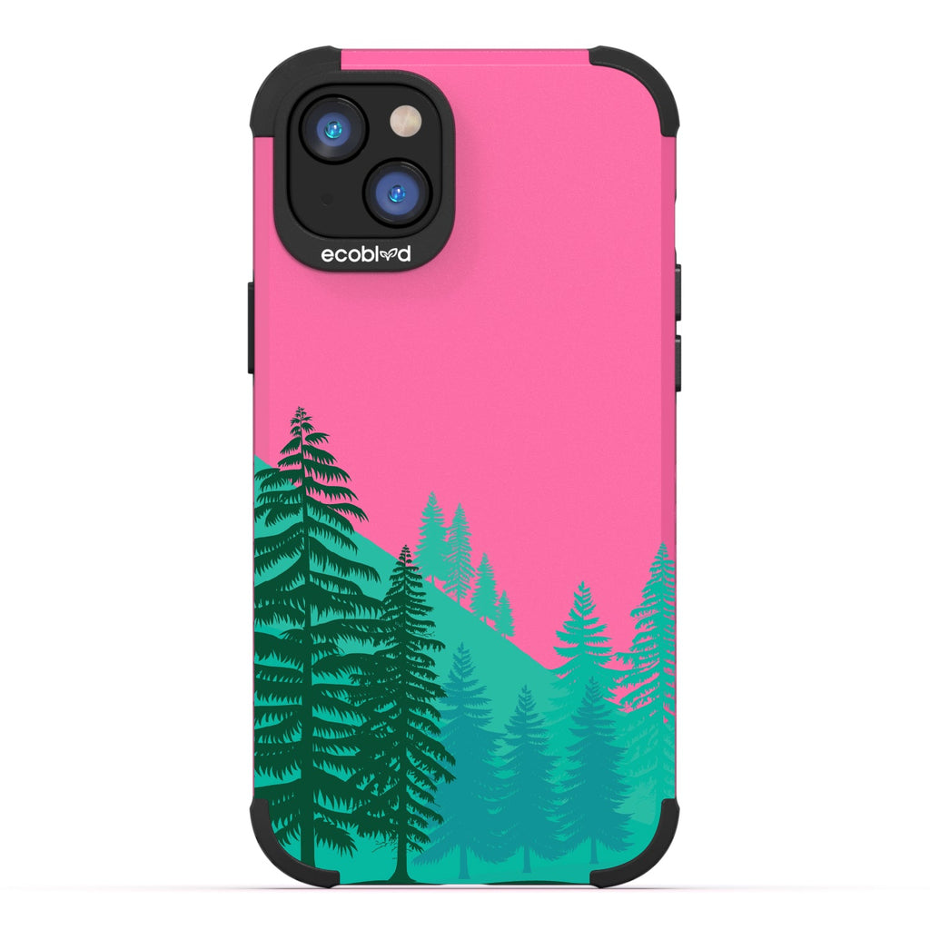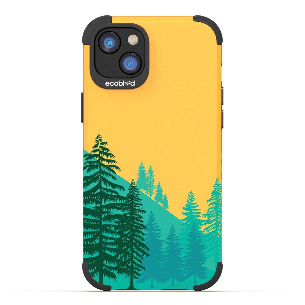 Get dialed into the wonder of nature as the Forest design on our Mojave rugged and compostable iPhone 16e, iPhone 14, and iPhone 13 case surrounds your phone. Explore the great outdoors with a lush forest of fir trees in five vibrant colors: Midnight Black, Cascade Blue, Foliage Green, Illuminating Yellow, and Wildflower Pink.