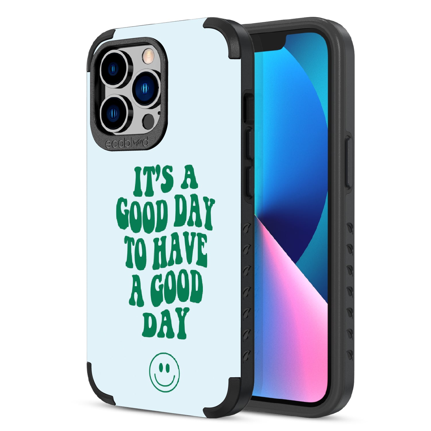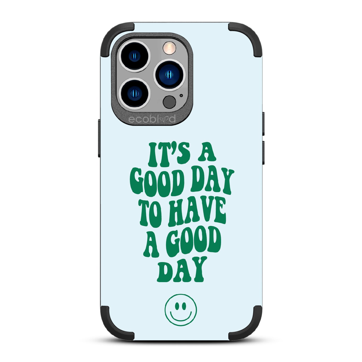 Shift your focus to the bright side with the Good Days Ahead design on our Mojave rugged and compostable iPhone 13 Pro case. The uplifting declaration, "It's a good day to have a good day," inspires you to actively look for the positive, inviting waves of good days ahead.