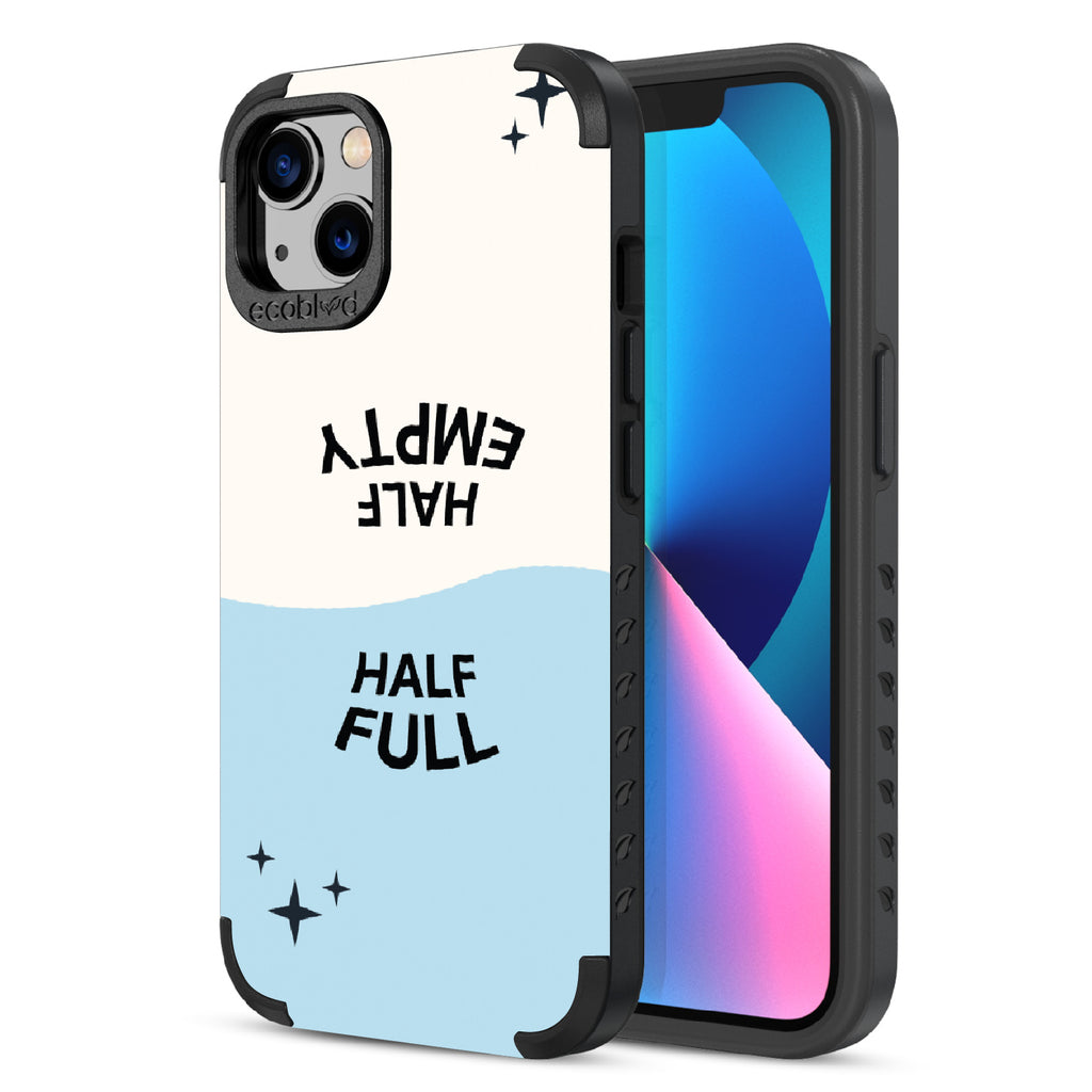 The Half Full, Half Empty design on our Mojave rugged and compostable iPhone 13 case invites you to reflect on life's outlook, depending on how you look at it. Be open to the fluidity of perspectives, recognizing that the cup can be both half full and half empty, serving as a metaphor for the ever-changing nature of perception.