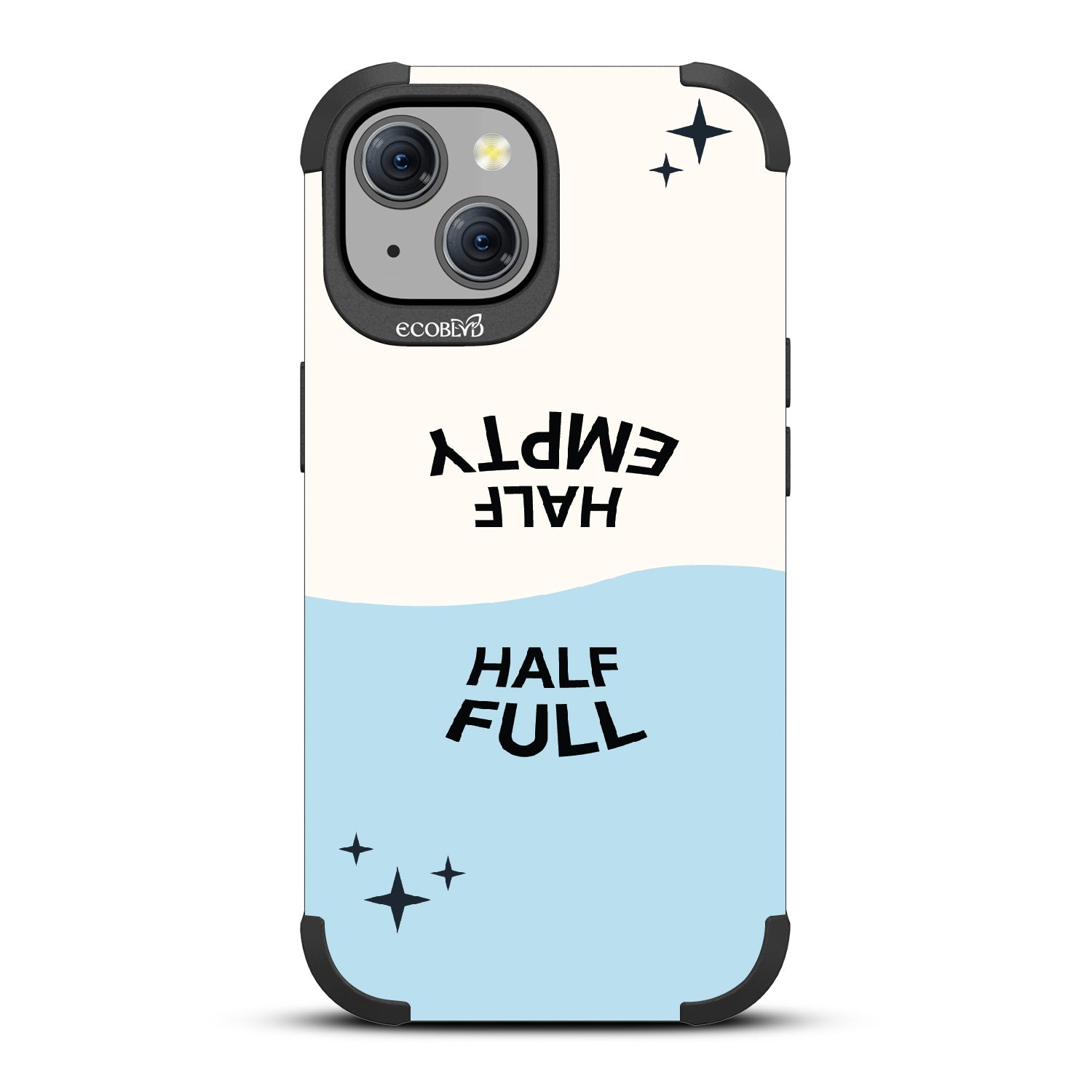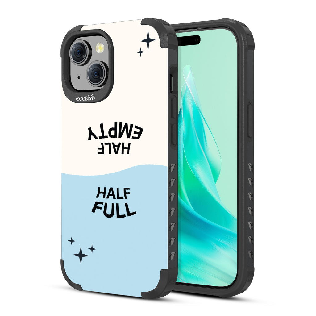 The Half Full, Half Empty design on our Mojave rugged and compostable iPhone 15 MagSafe case invites you to reflect on life's outlook, depending on how you look at it. Be open to the fluidity of perspectives, recognizing that the cup can be both half full and half empty, serving as a metaphor for the ever-changing nature of perception.