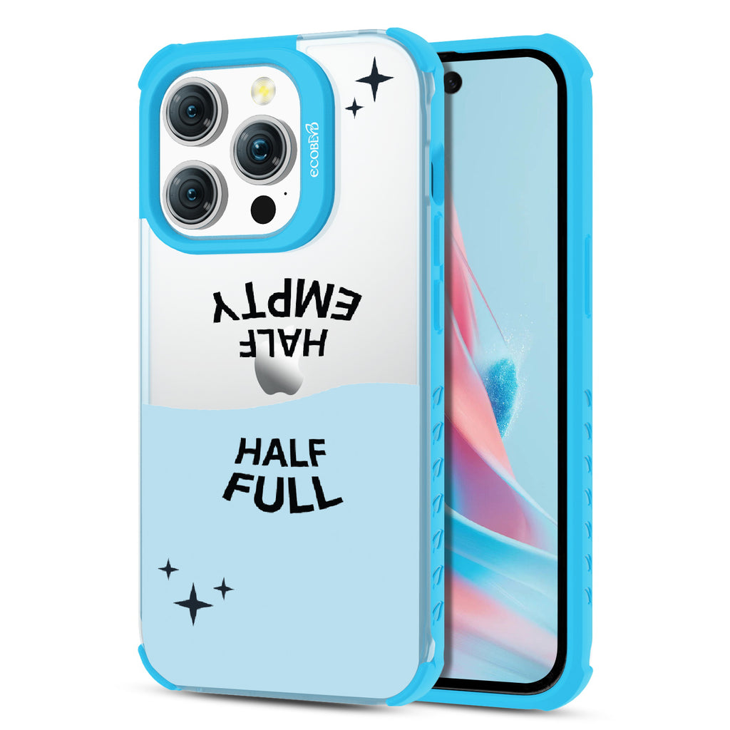 The Half Full, Half Empty design on our Laguna clear iPhone 15 Pro case invites you to reflect on life's outlook, depending on how you look at it. Be open to the fluidity of perspectives, recognizing that the cup can be both half full and half empty, serving as a metaphor for the ever-changing nature of perception.