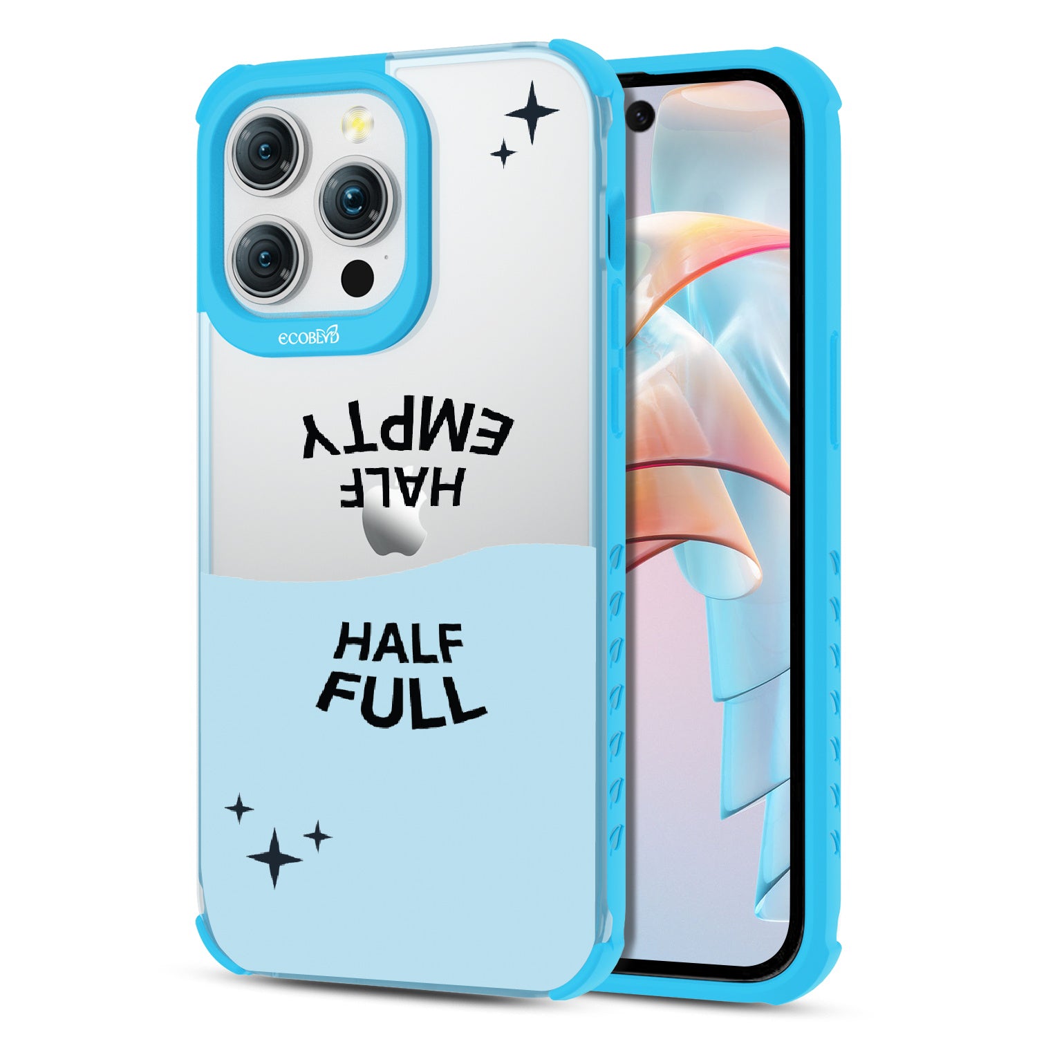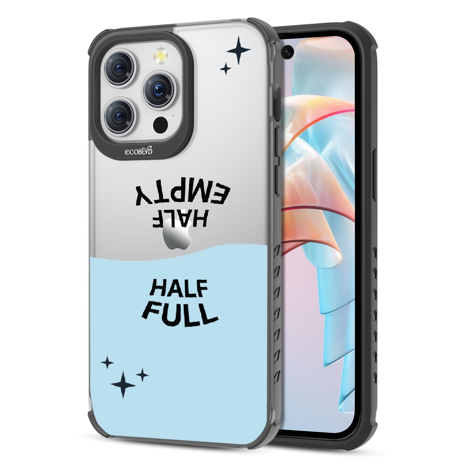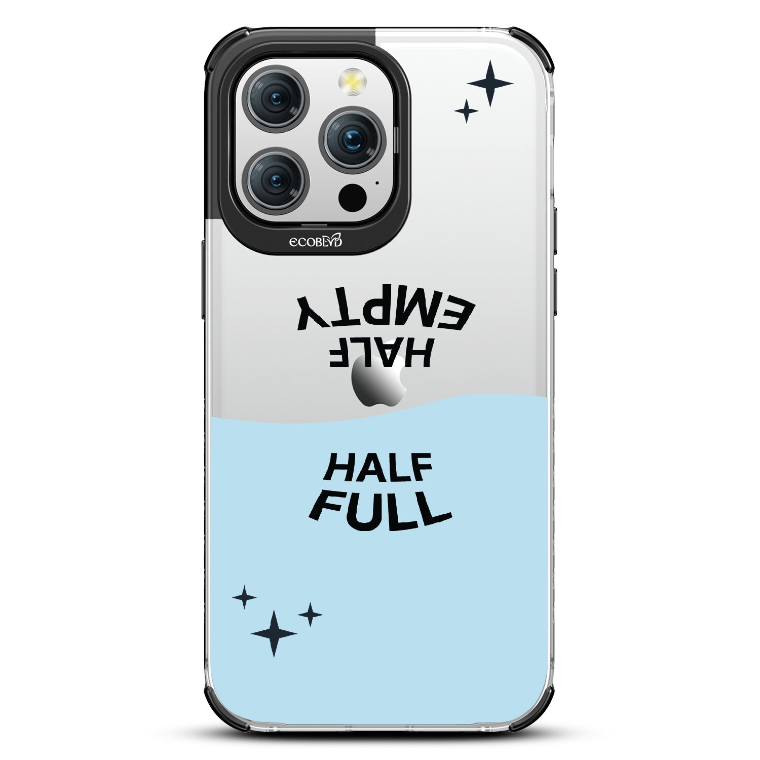 The Half Full, Half Empty design on our Laguna clear iPhone 15 Pro Max case invites you to reflect on life's outlook, depending on how you look at it. Be open to the fluidity of perspectives, recognizing that the cup can be both half full and half empty, serving as a metaphor for the ever-changing nature of perception.