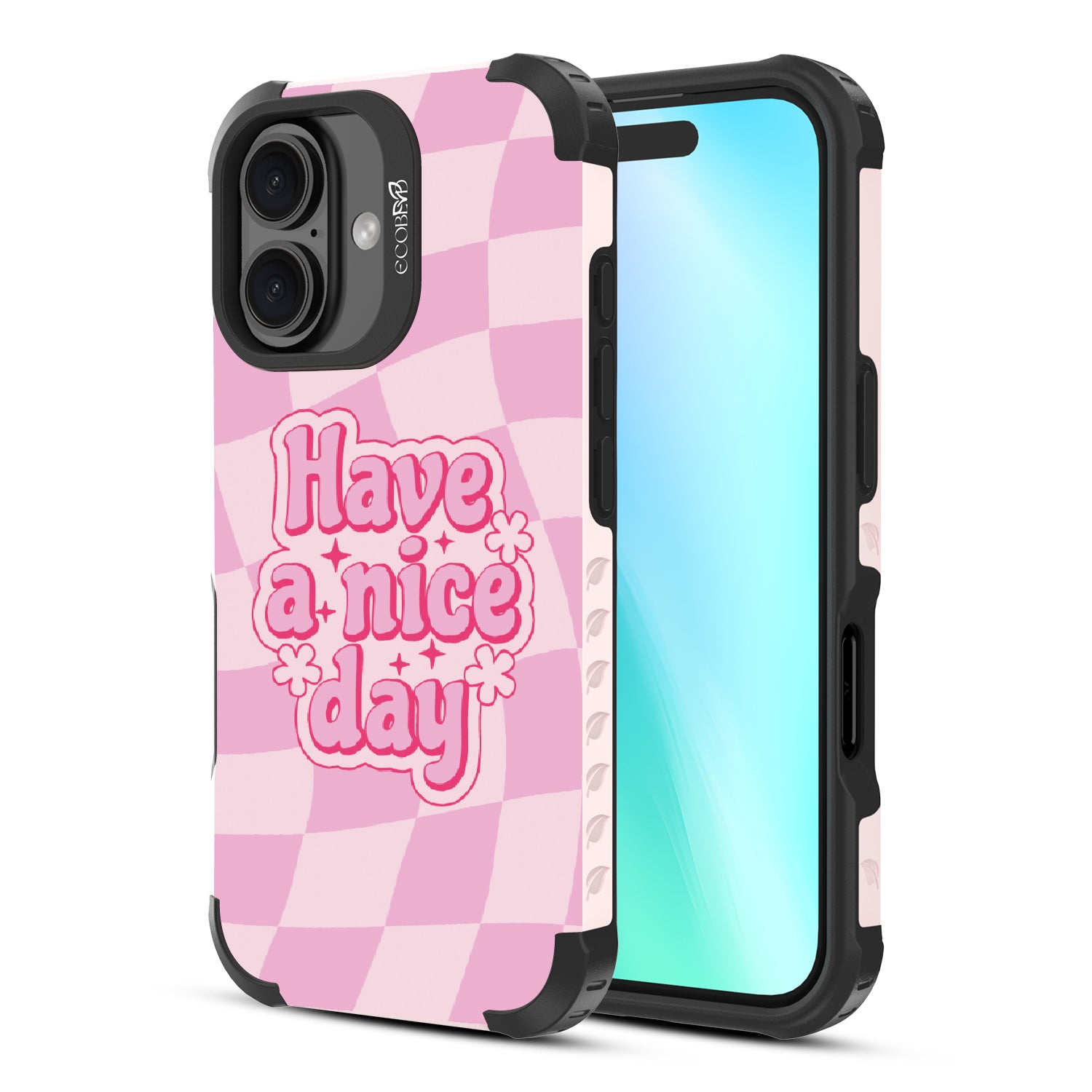 Set the stage for a brighter day with the Have A Nice Day design on our Reforge rugged iPhone 16 phone case, featuring an eye-catching wavy checker print pattern. This daily reminder gives an uplifting atmosphere your phone needs, making every day a nice day filled with positivity.