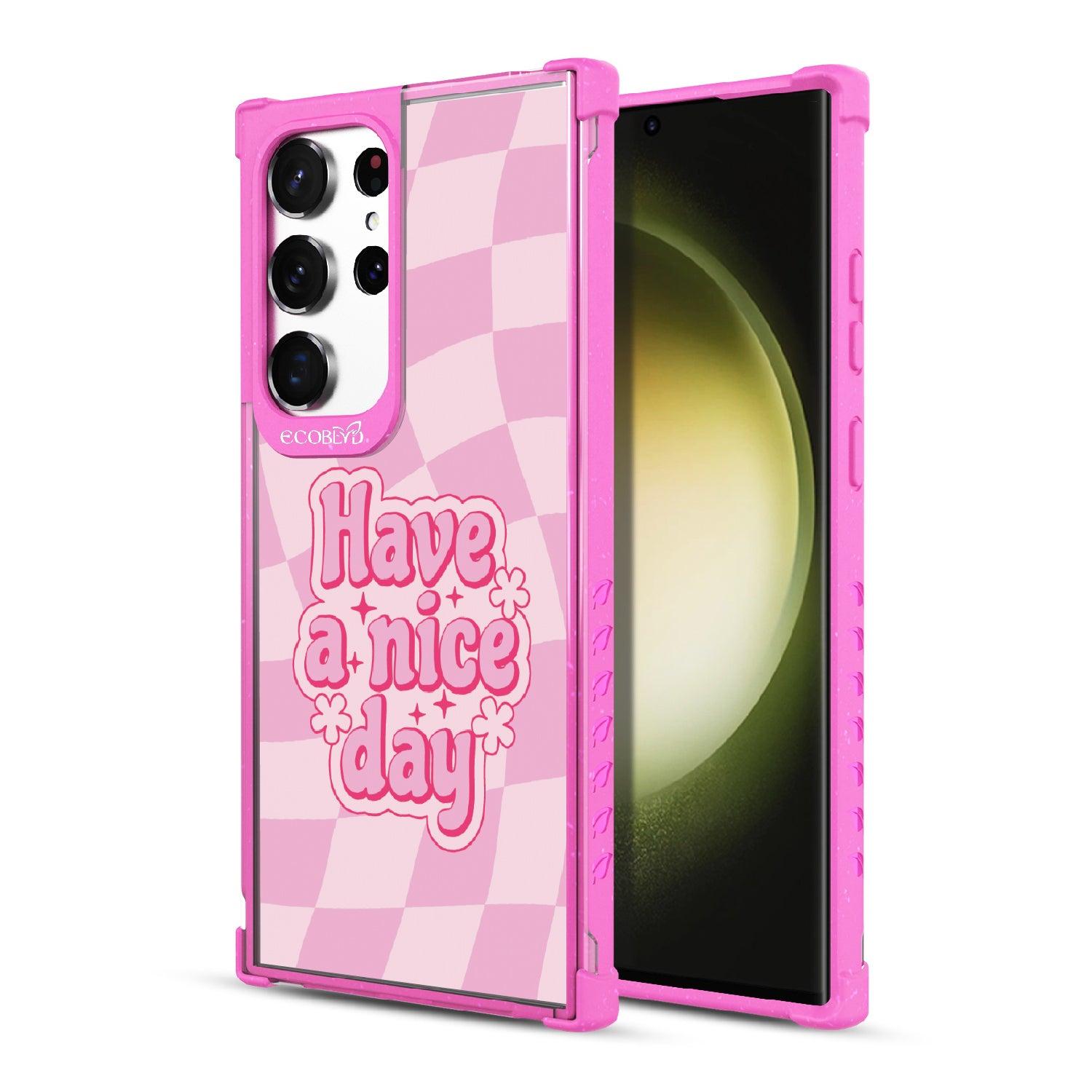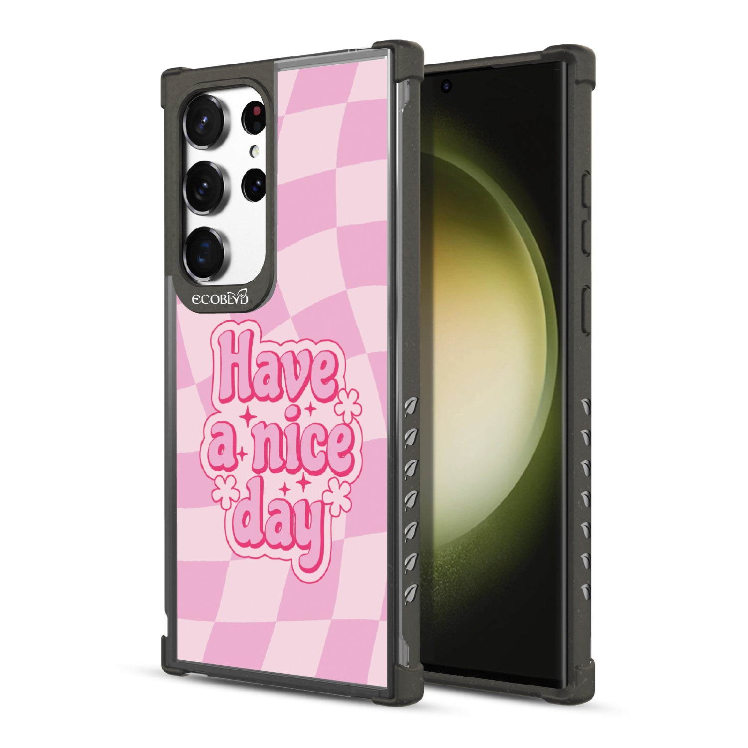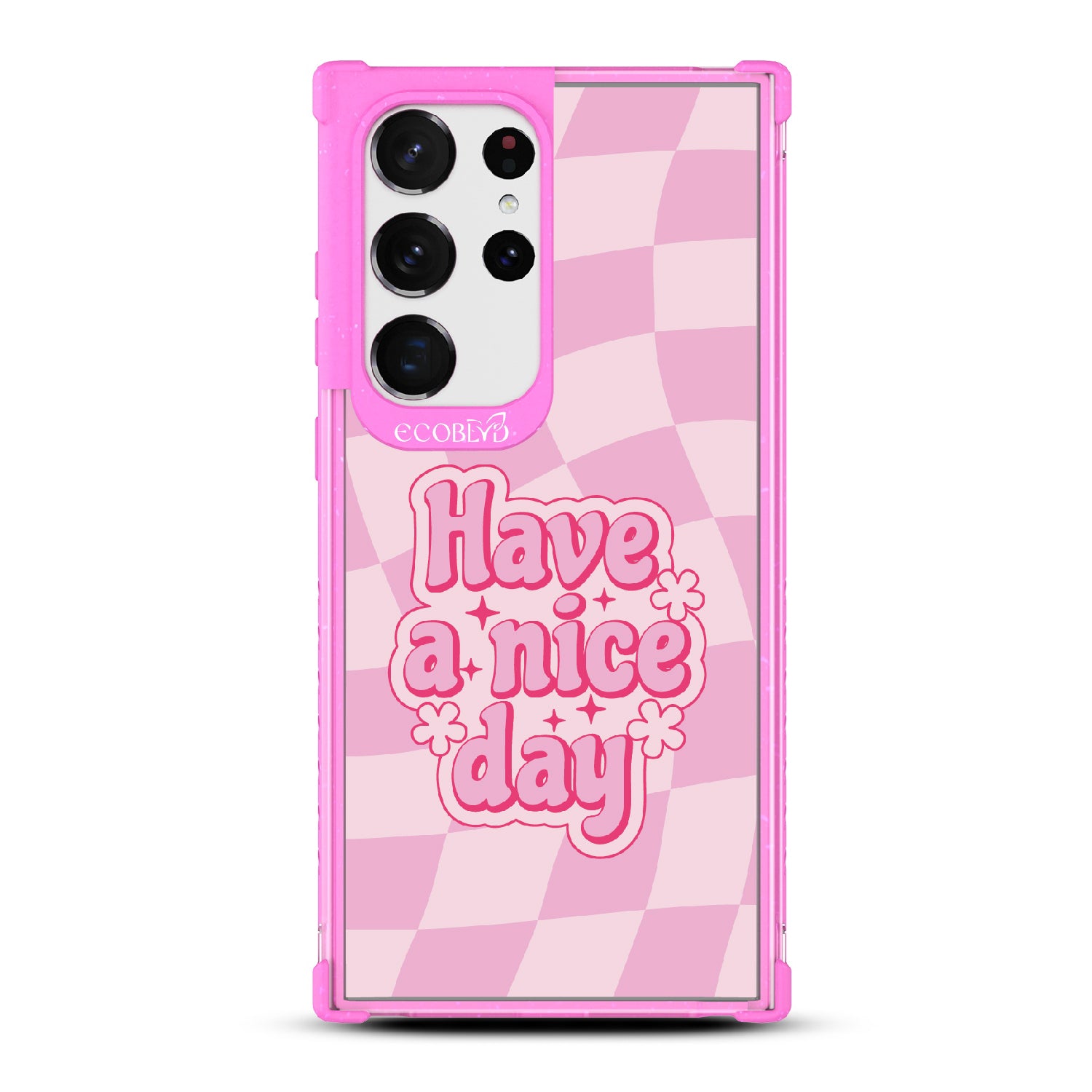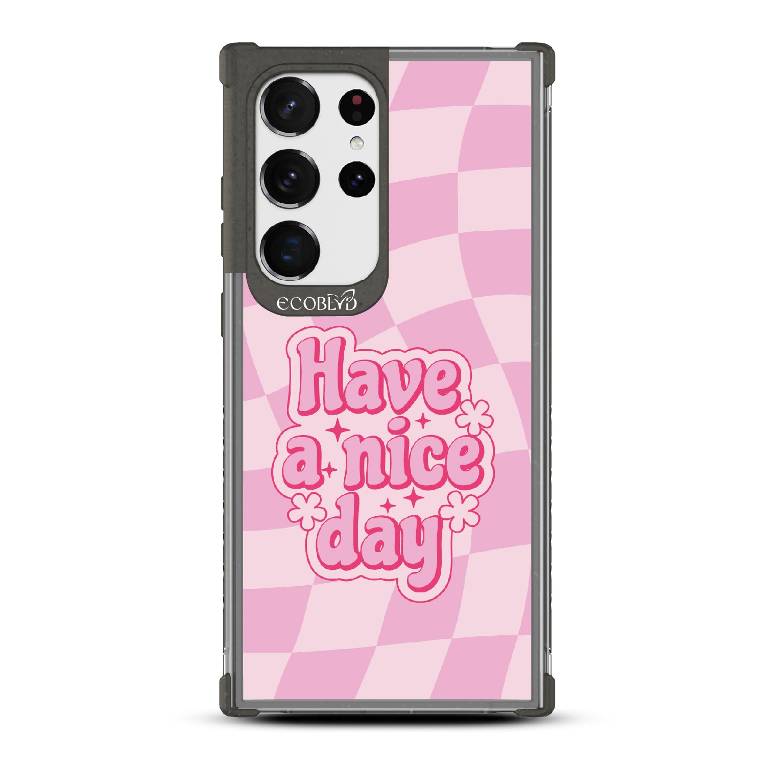 Set the stage for a brighter day with the Have A Nice Day design on our Laguna clear Galaxy S23 Ultra phone case, featuring an eye-catching wavy checker print pattern. This daily reminder gives an uplifting atmosphere your phone needs, making every day a nice day filled with positivity.