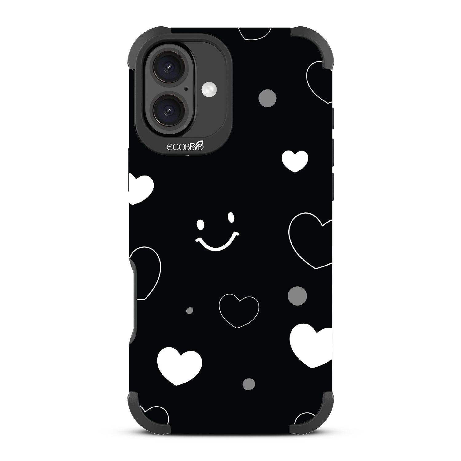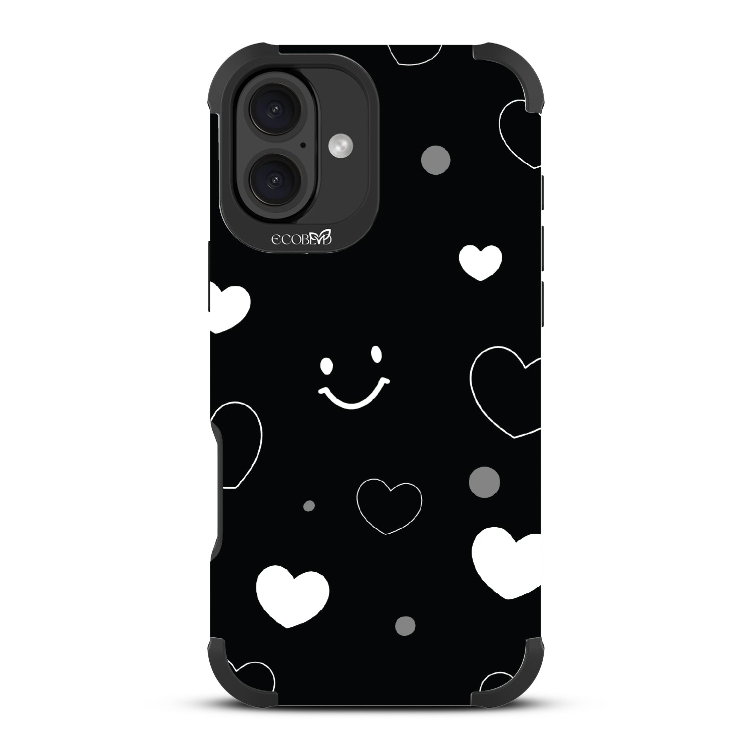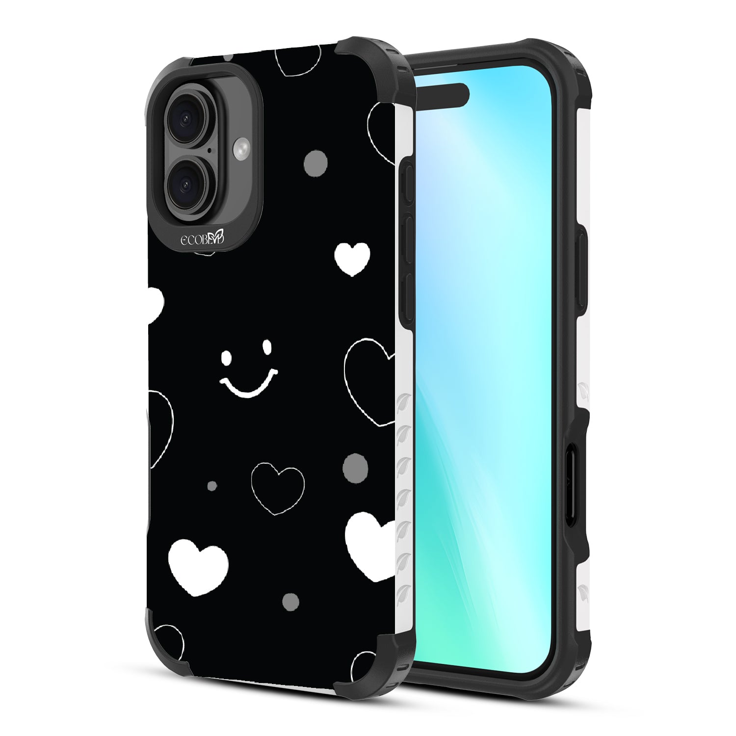 With the Heart Of Joy design on our Reforge rugged iPhone 16 Plus phone case will be a constant reminder to bring love and joy to every aspect of your life and in everyday moments as the solid white hearts, white lined hearts, and gray dots symbolize the beauty of this special emotion, with a white smiley face adding the final touch of joy.