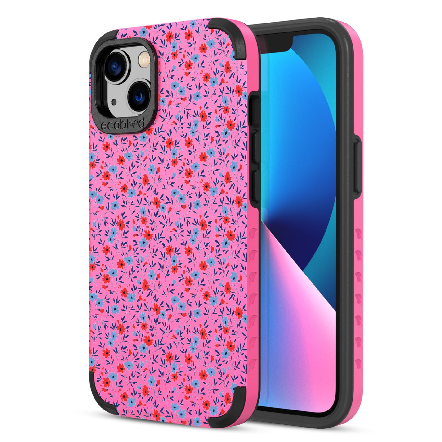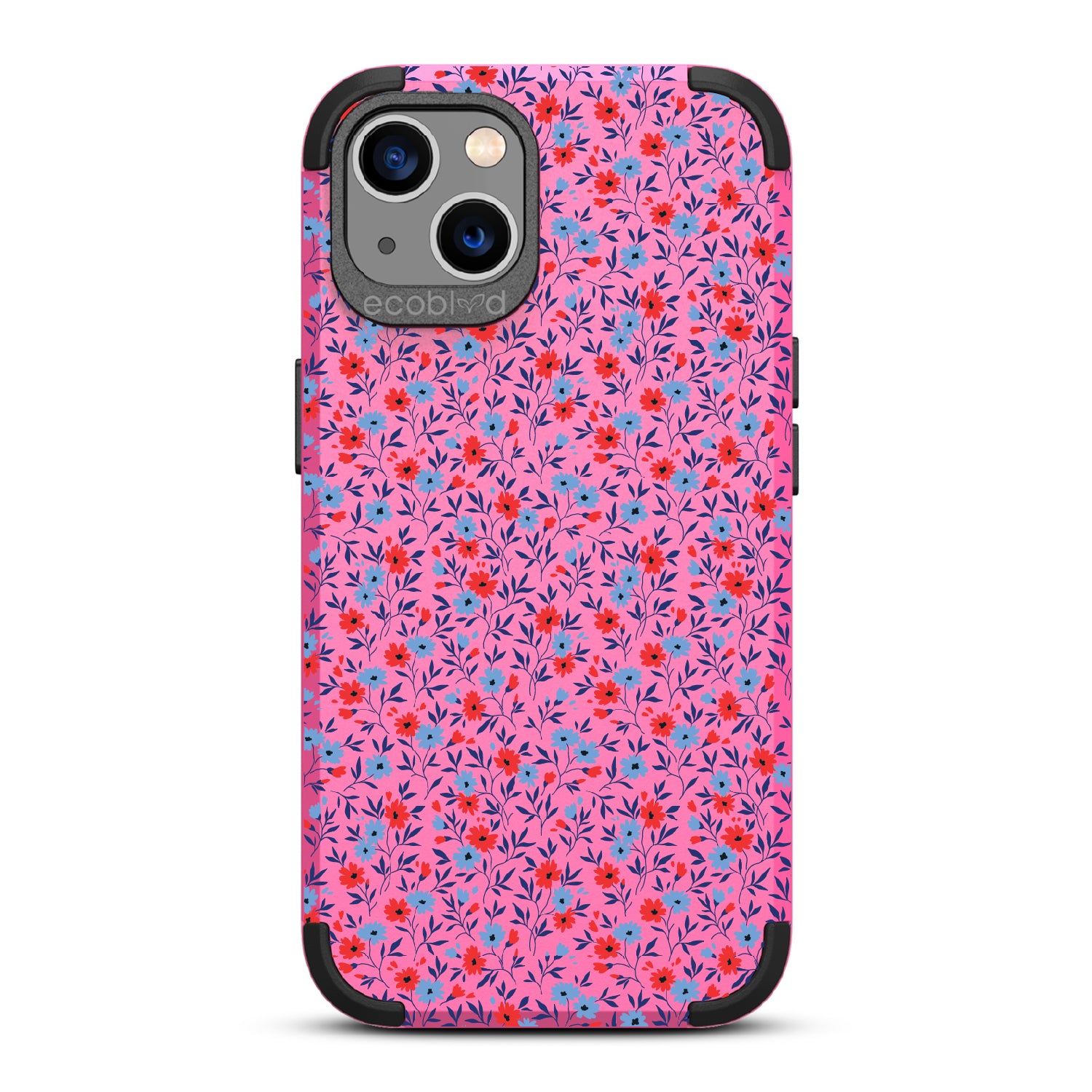Show off your country roots with the Home Grown design on our Mojave rugged iPhone 13 phone case. Adorned with red, white, and blue flowers, this vintage floral pattern brings rustic charm and, some true American flair.