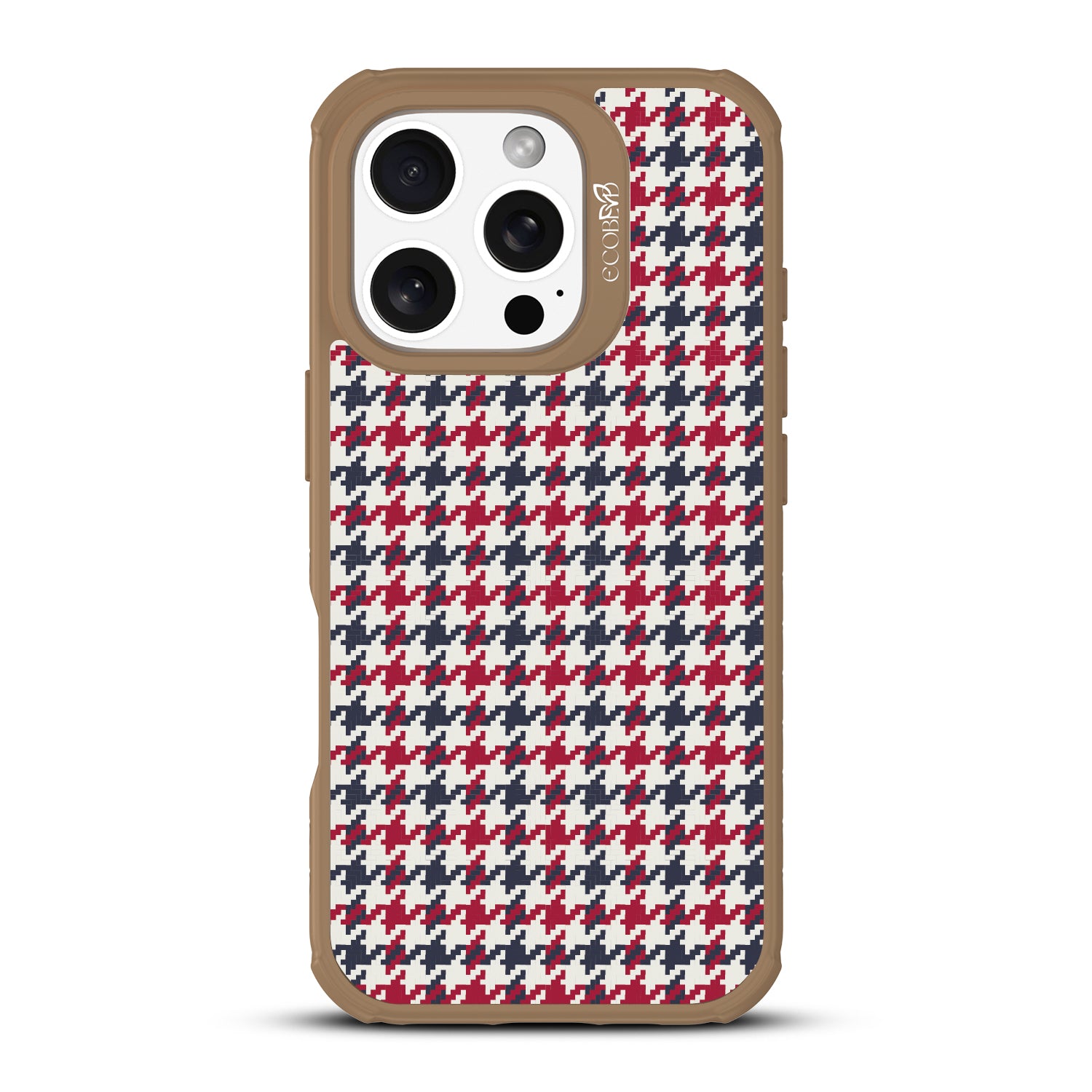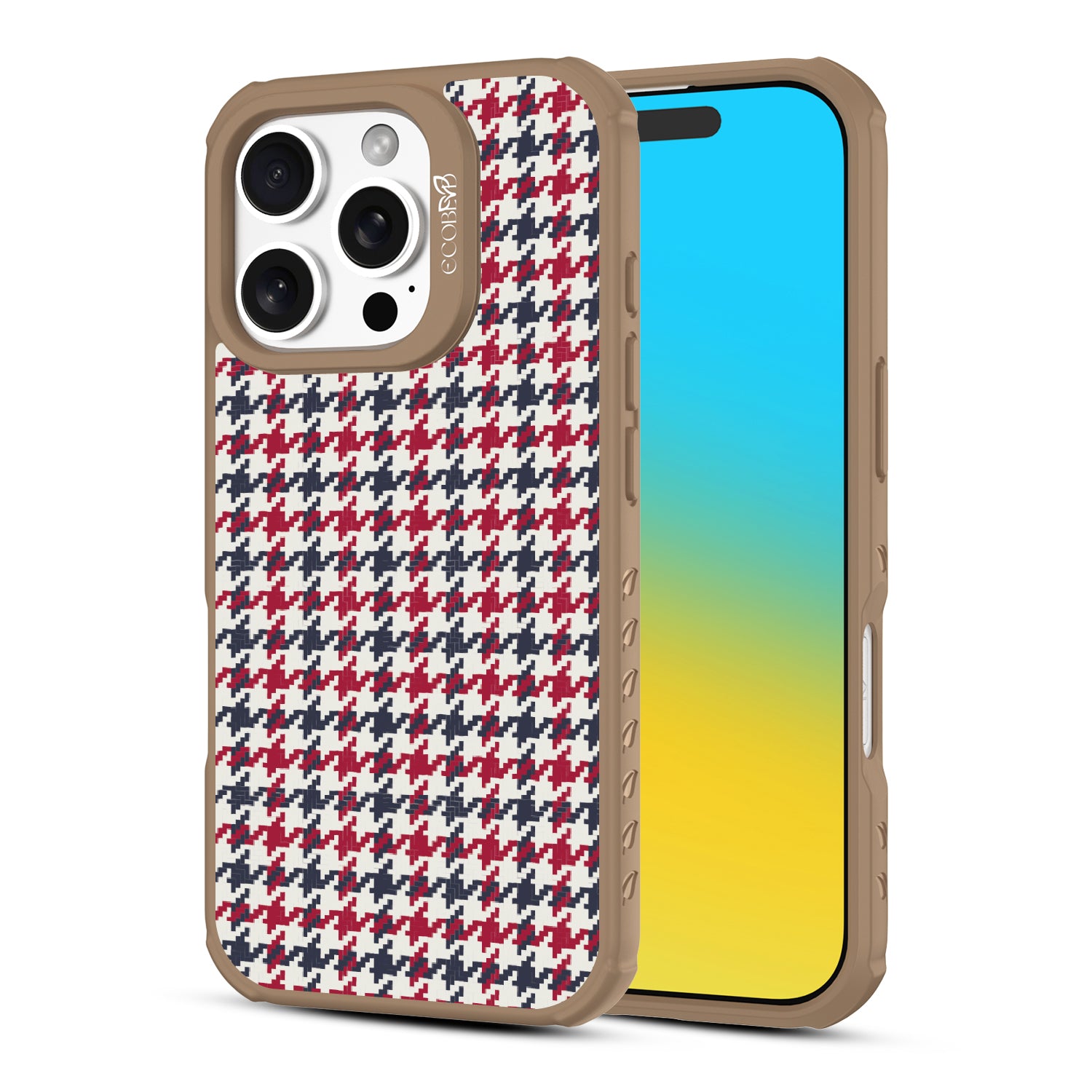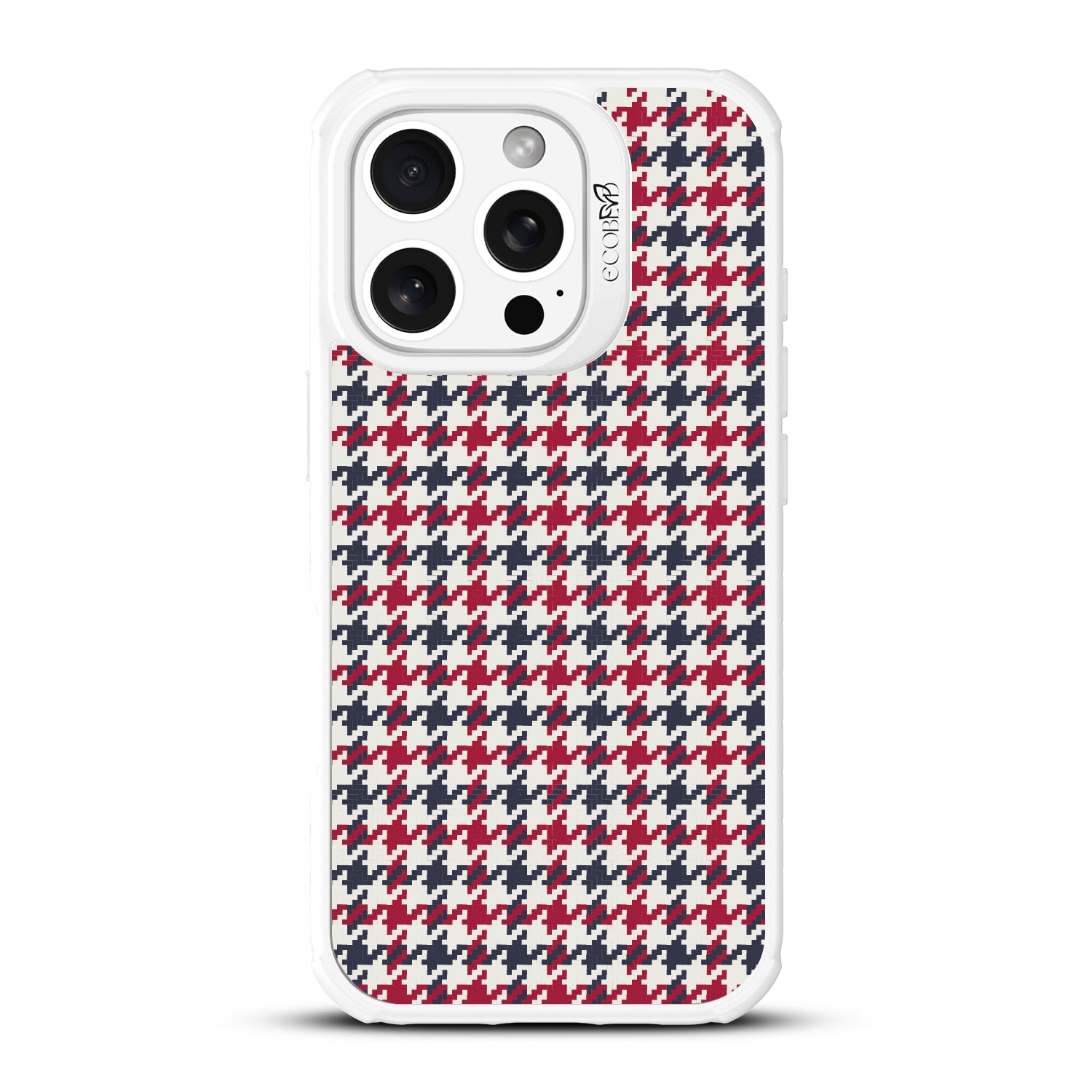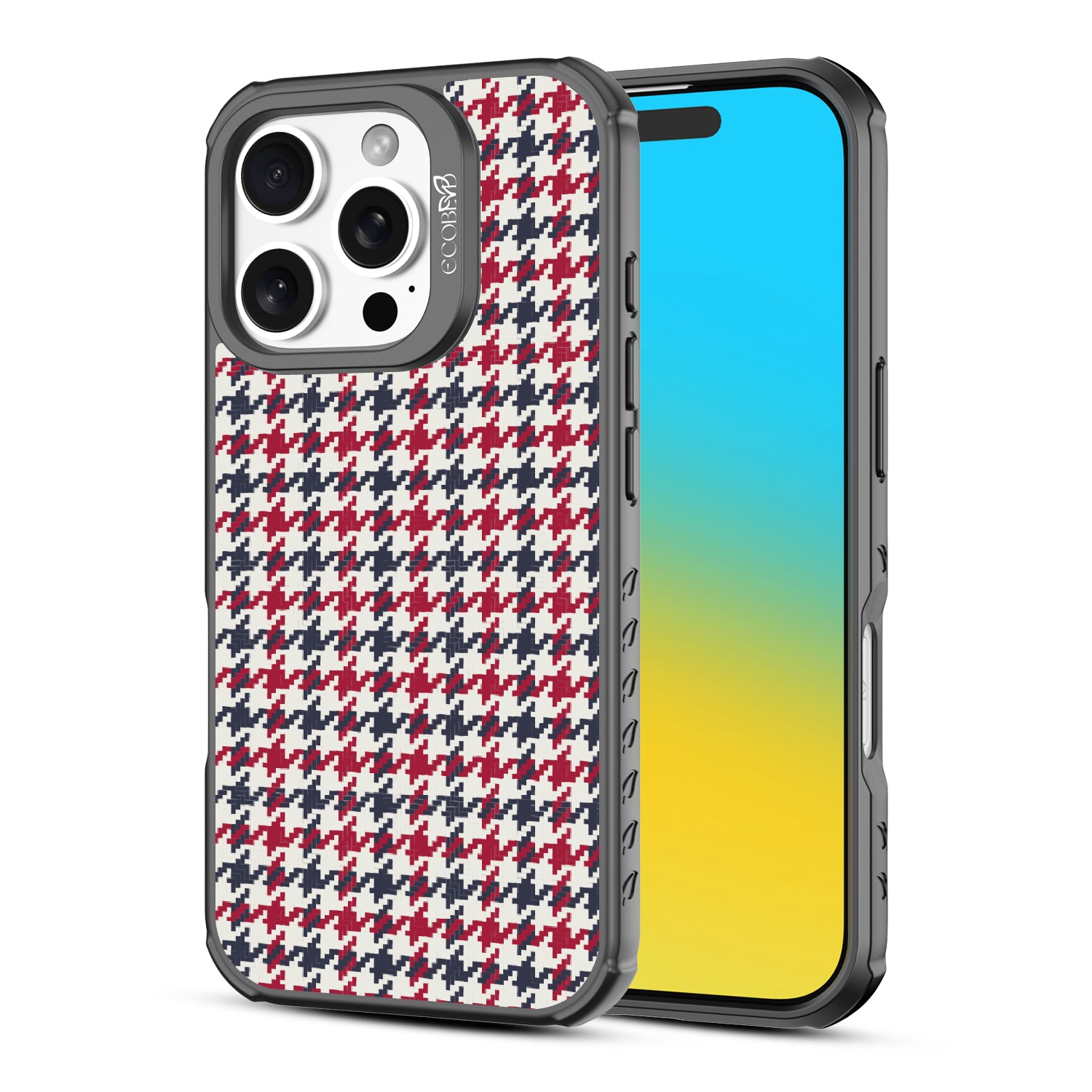 Sewn from the heart of American fabric, the Heritage Houndstooth design on our Revive clear iPhone 16 Pro phone case stitches together red, white, and blue for a fun, old-fashioned American look. It's a playful spin on a classic that screams "Made in the USA!"