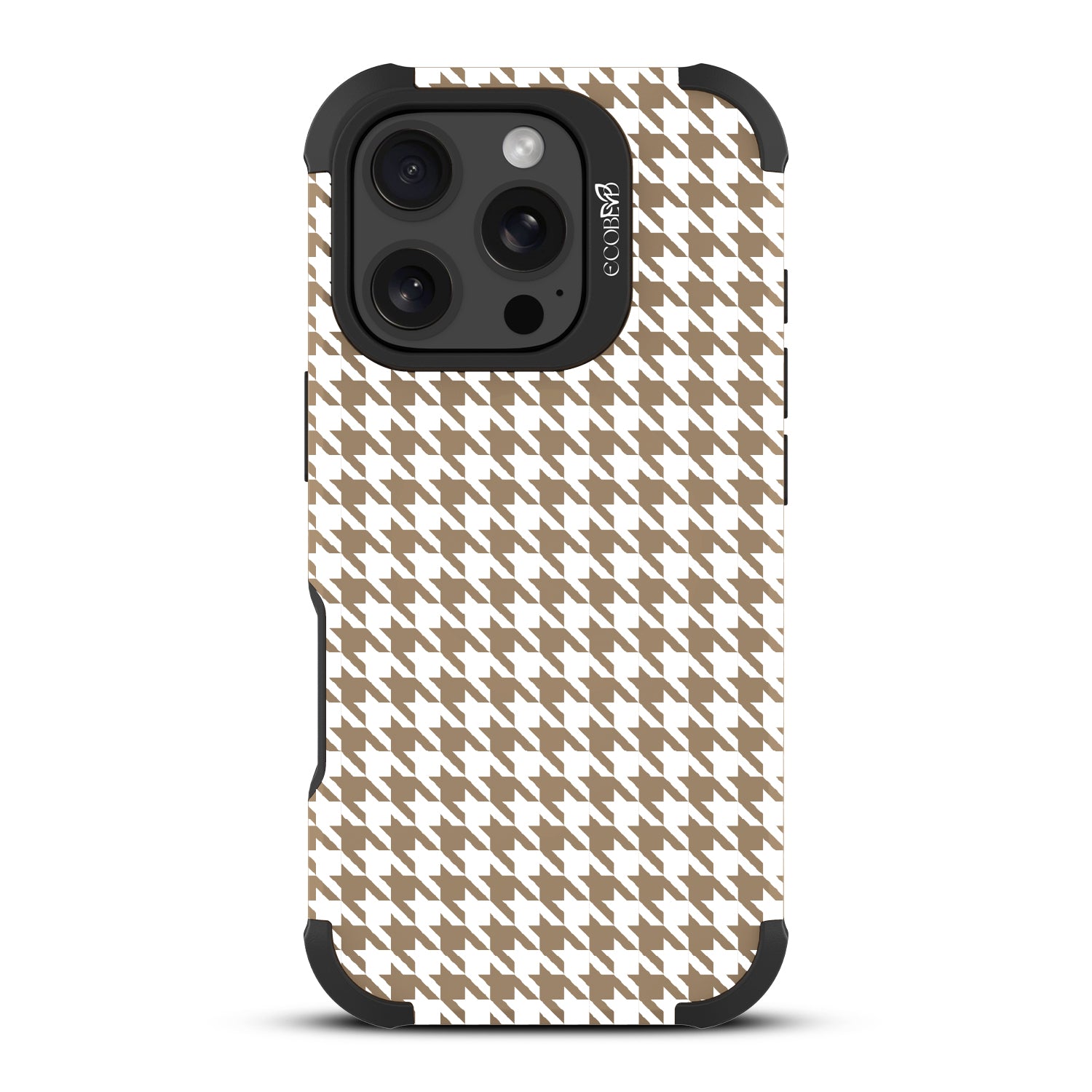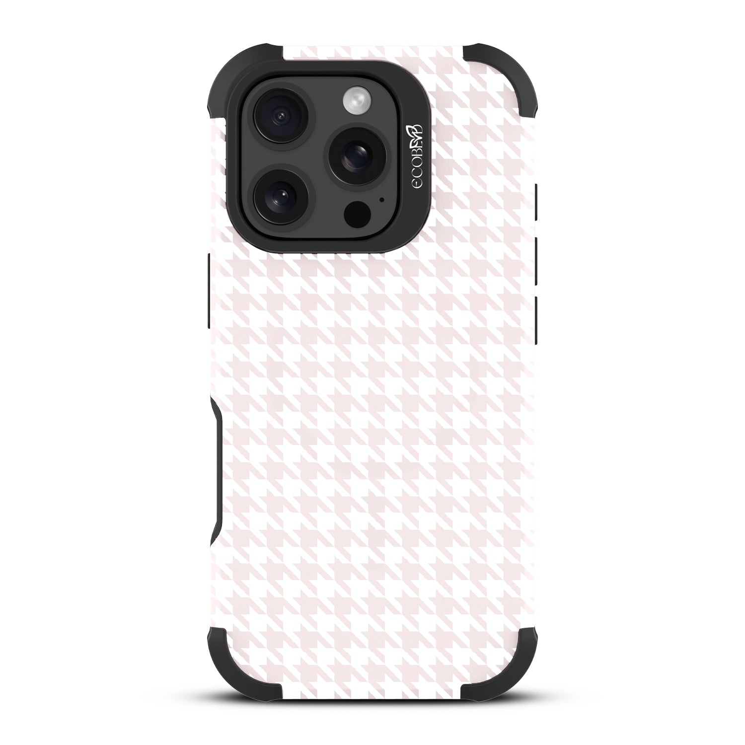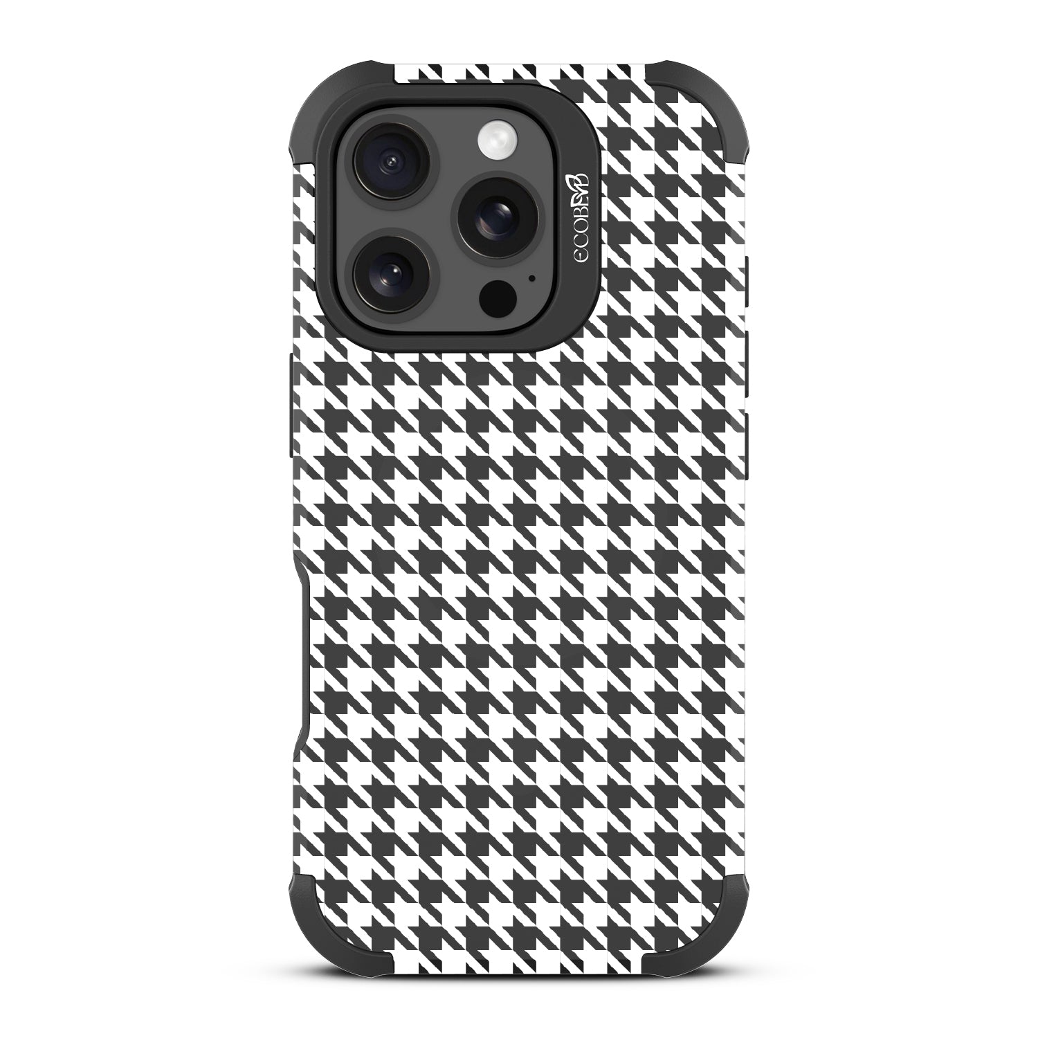 The Houndstooth design on our Reforge rugged iPhone 16 Pro phone case will have you saying, "Check, please!" as its utilitarian two-toned weaved pattern brings a high society attitude to wake up your style and your phone with a bold look.