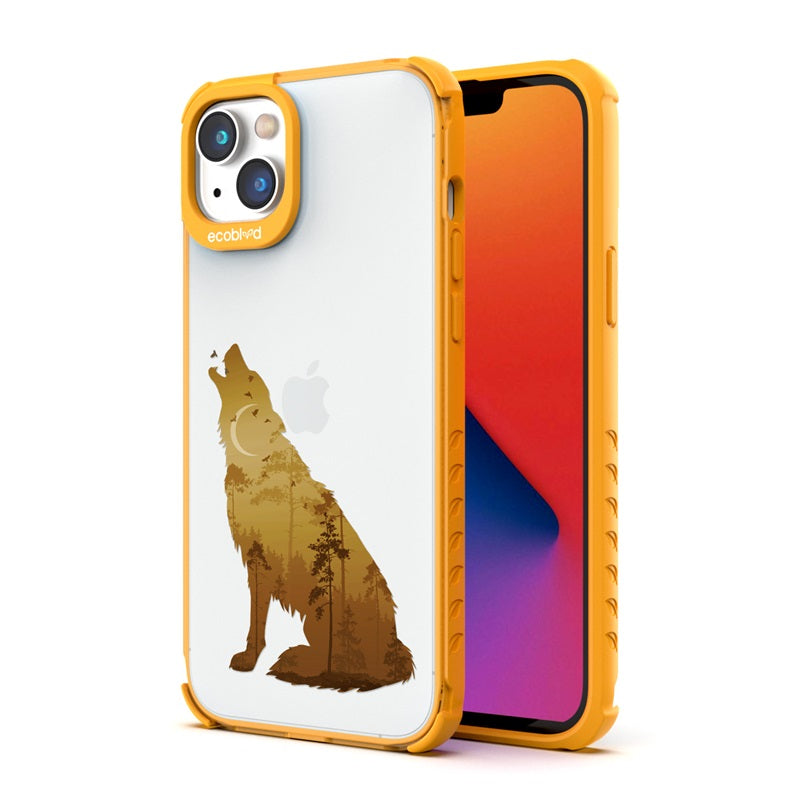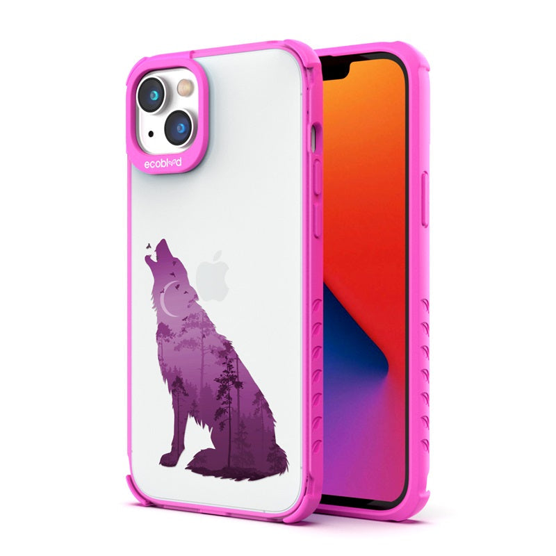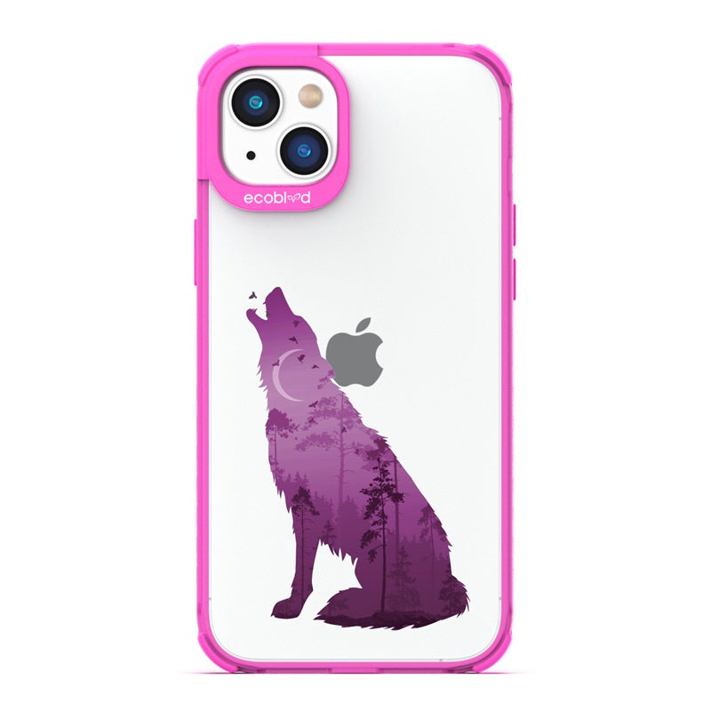 Embrace your wild side as the Howl At The Moon design on our Laguna clear iPhone 16e, iPhone 14, and iPhone 13Â case transforms your phone into an enchanting moonlit woodland with a howling wolf prowling through the darkness and across five vibrant color options: Midnight Black, Cascade Blue, Foliage Green, Illuminating Yellow, and Wildflower Pink.