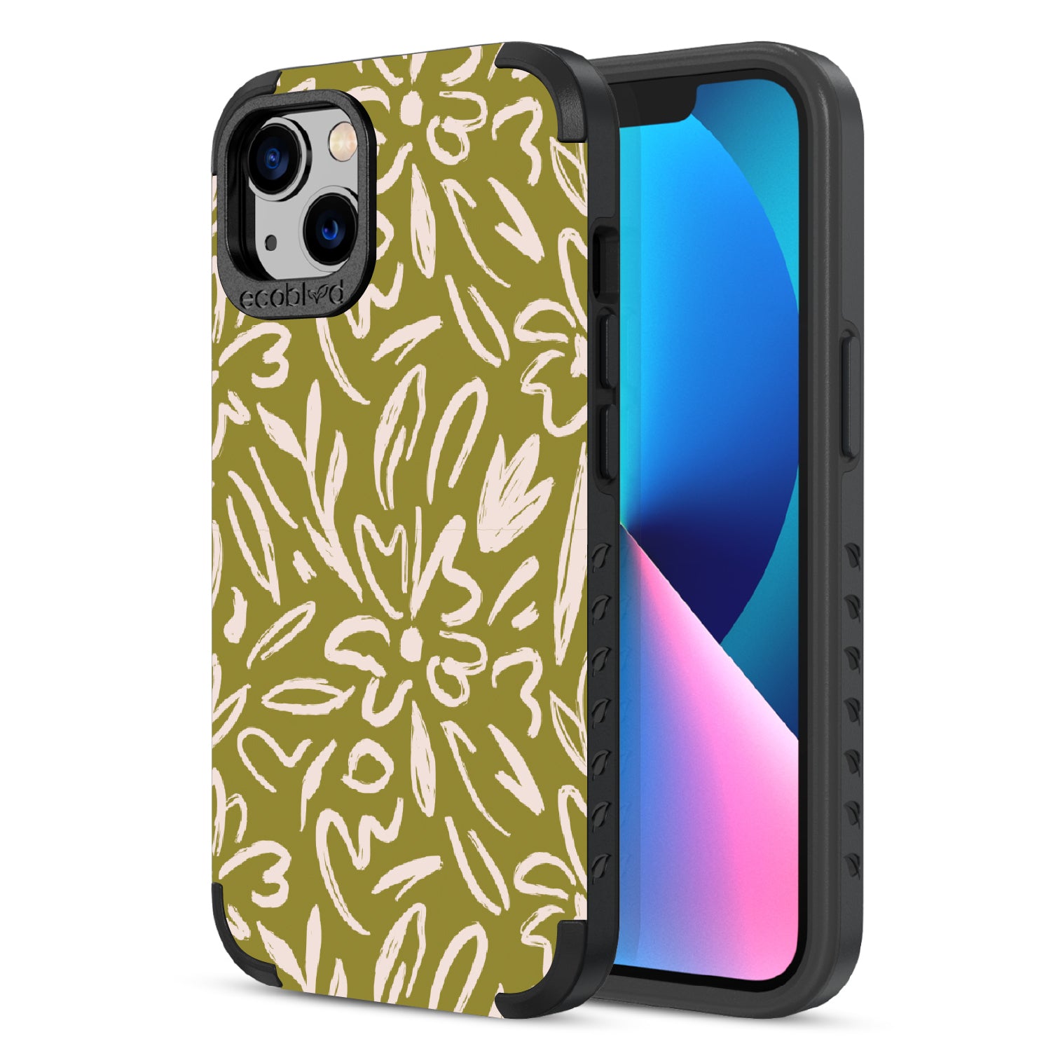 Radiating with the energy of new bloom with the In The Green design on our Mojave rugged and compostable iPhone 13 phone case, as hand-painted flowers thrive with the beauty of renewal and growth.