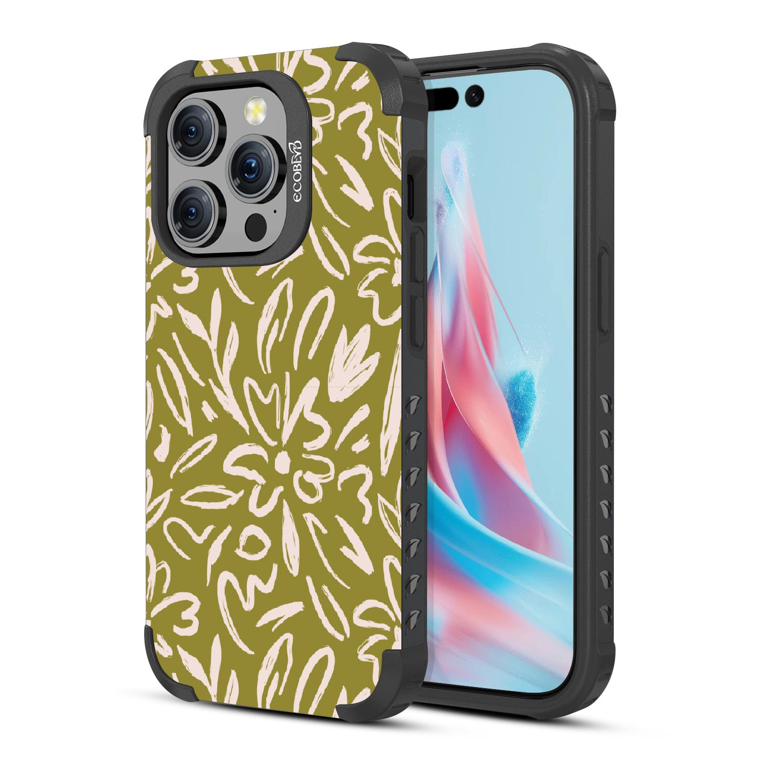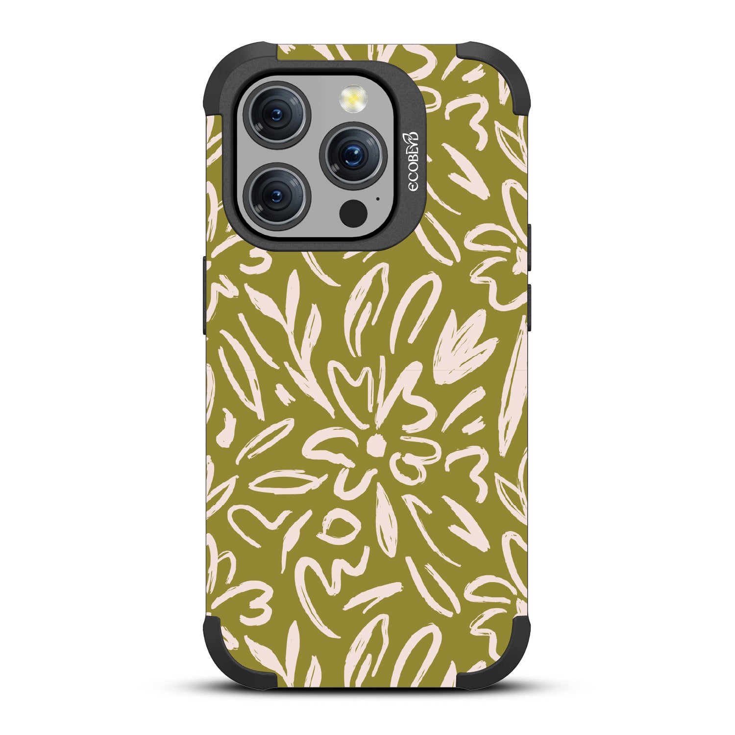 Radiating with the energy of new bloom with the In The Green design on our Mojave rugged and compostable iPhone 15 Pro MagSafe case, as hand-painted flowers thrive with the beauty of renewal and growth.