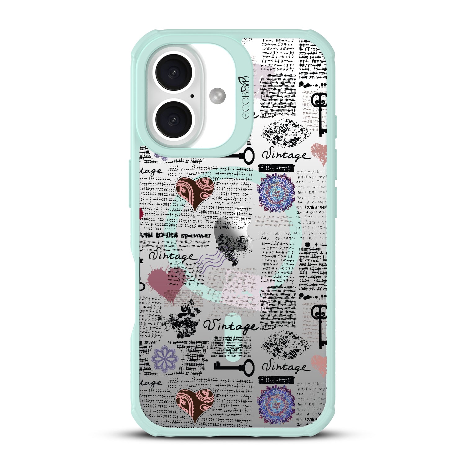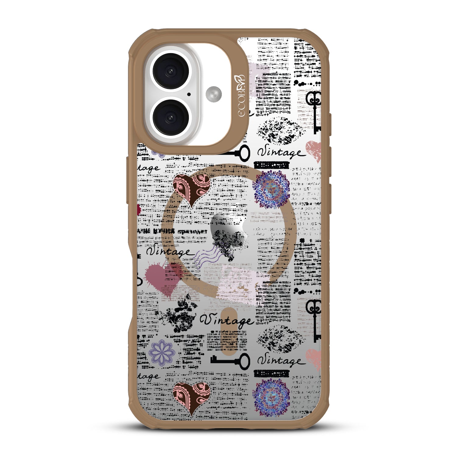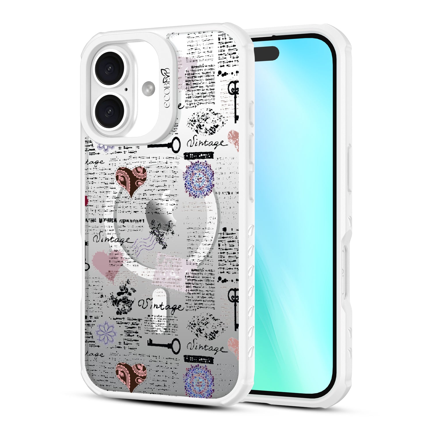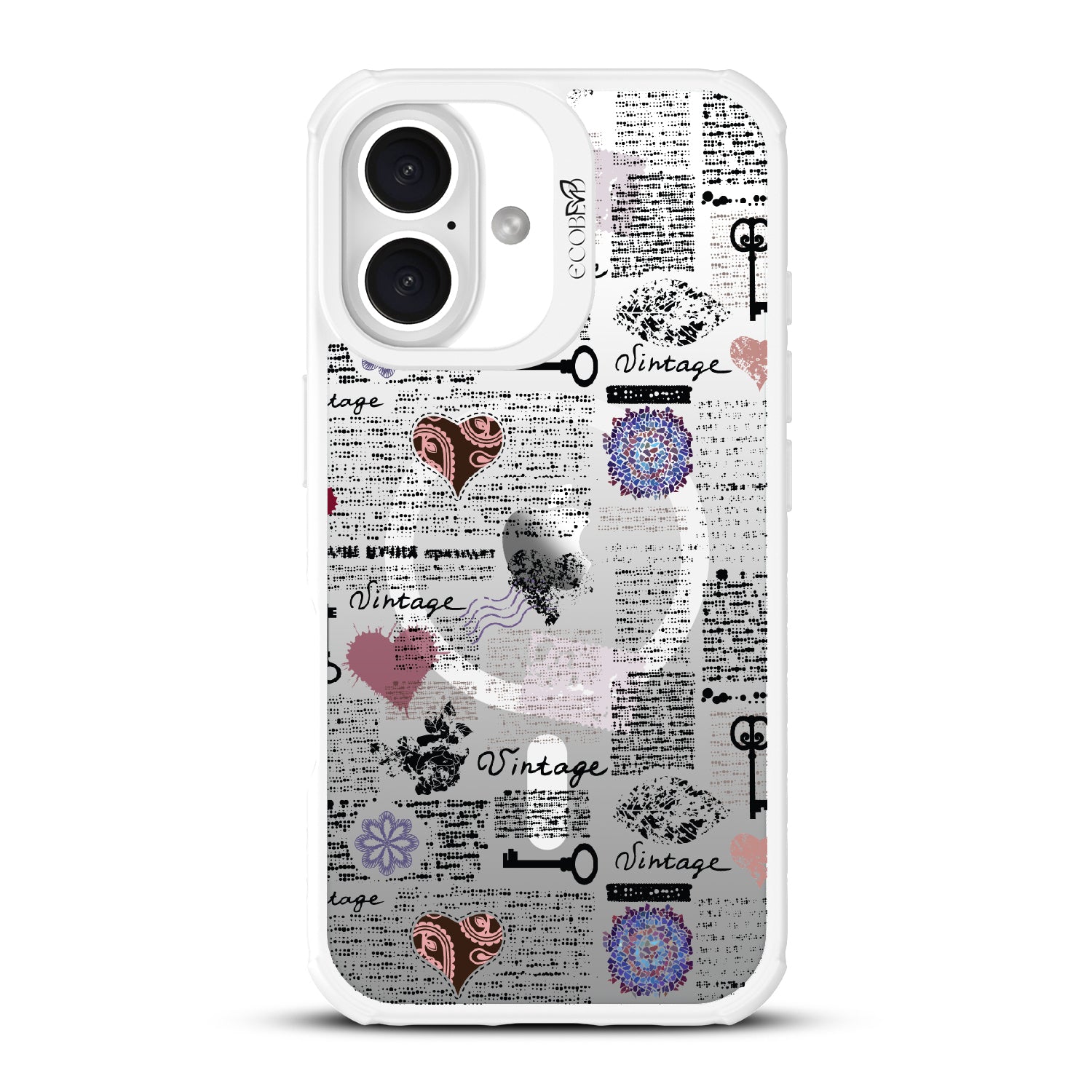 Craft a tale of everlasting love with the In The Pages design on our Revive clear iPhone 16 phone case. This delightful vintage scrapbook look is adorned with loving hearts, keys, and notes and encourages you to build a story through your memories that never fade, forever preserving your love.