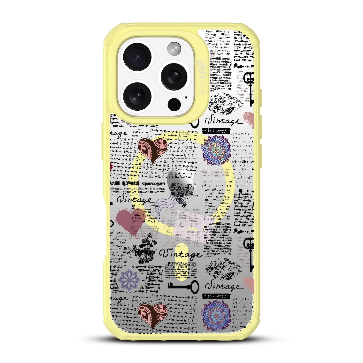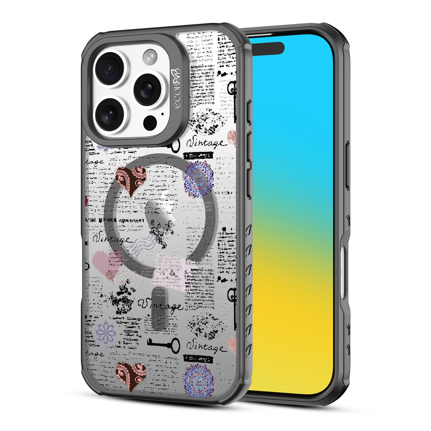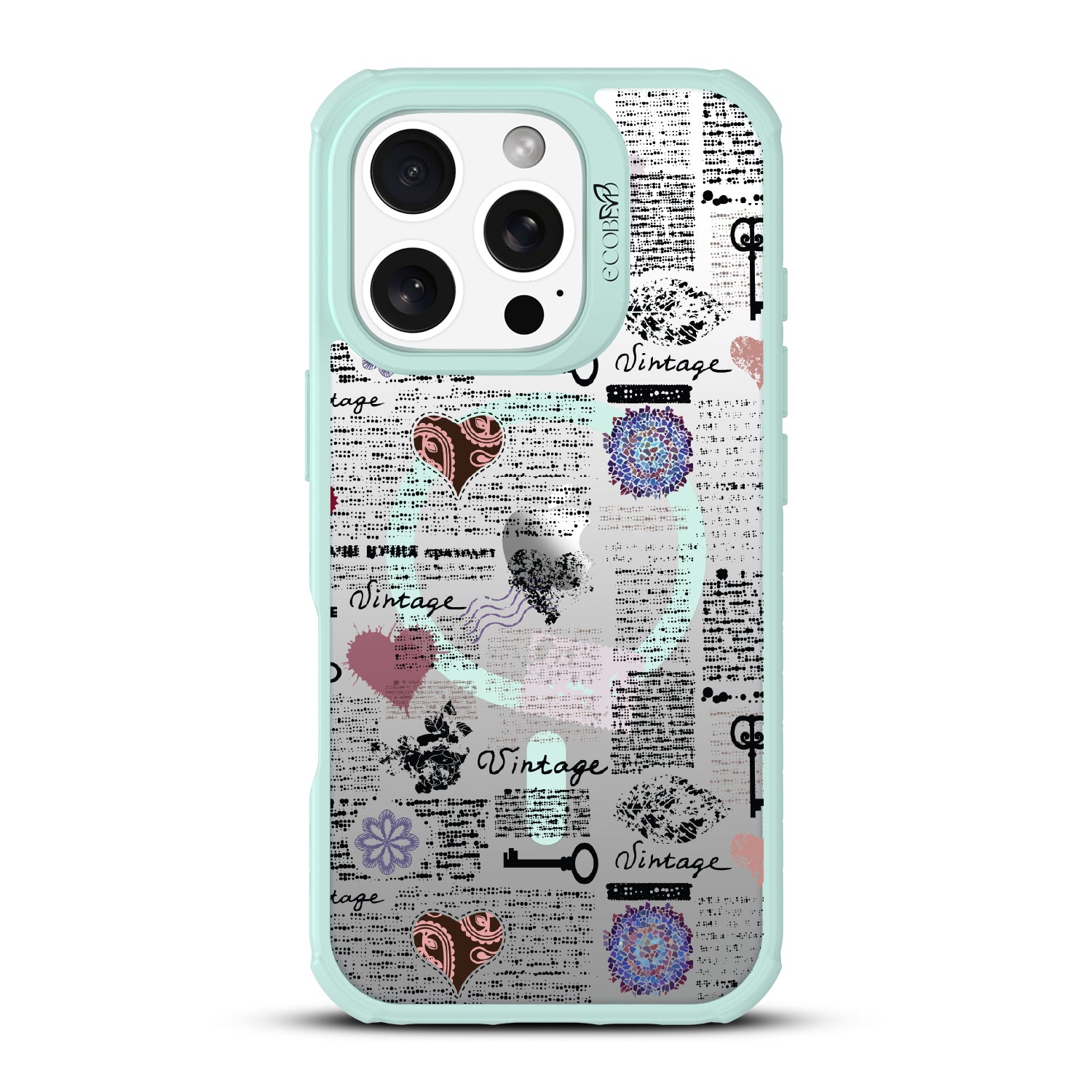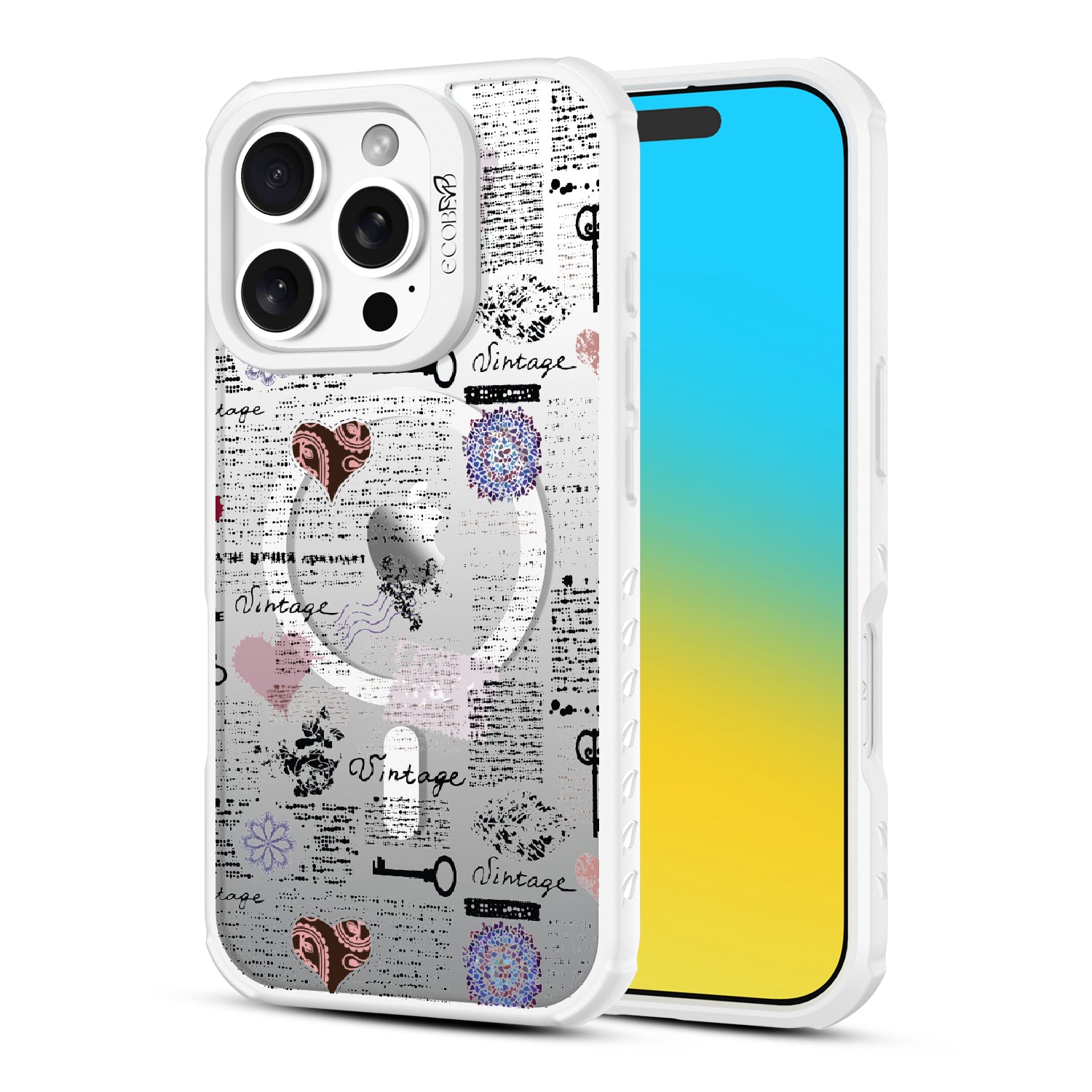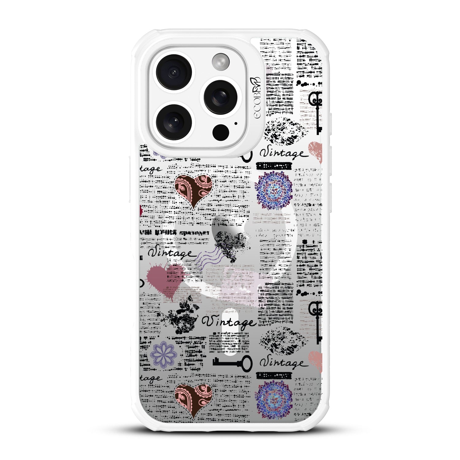 Craft a tale of everlasting love with the In The Pages design on our Revive clear iPhone 16 Pro phone case. This delightful vintage scrapbook look is adorned with loving hearts, keys, and notes and encourages you to build a story through your memories that never fade, forever preserving your love.