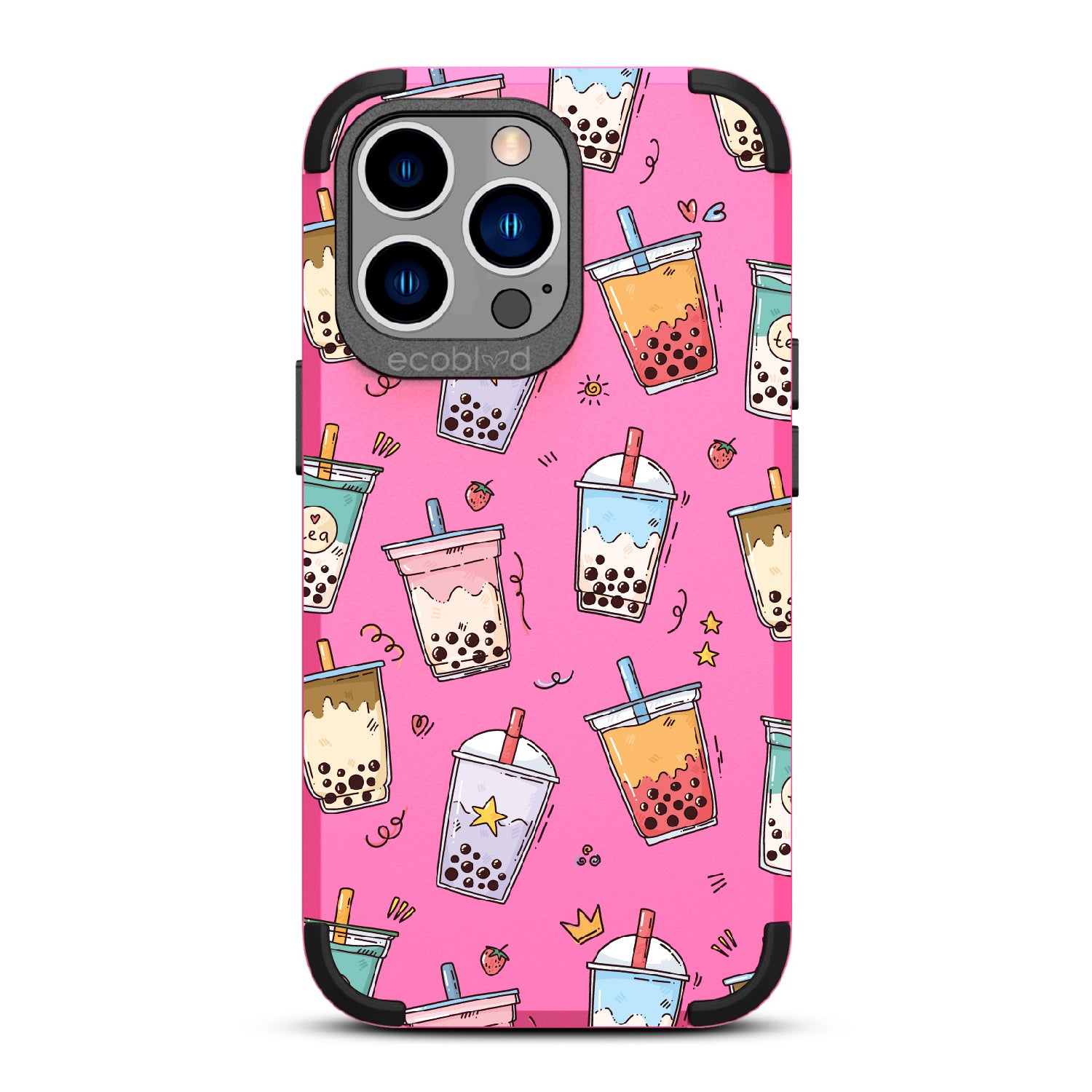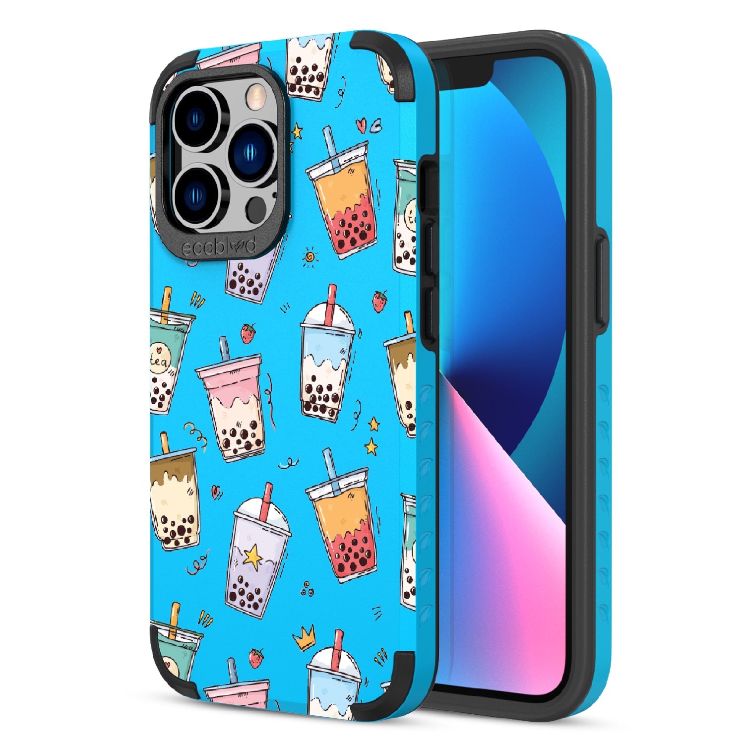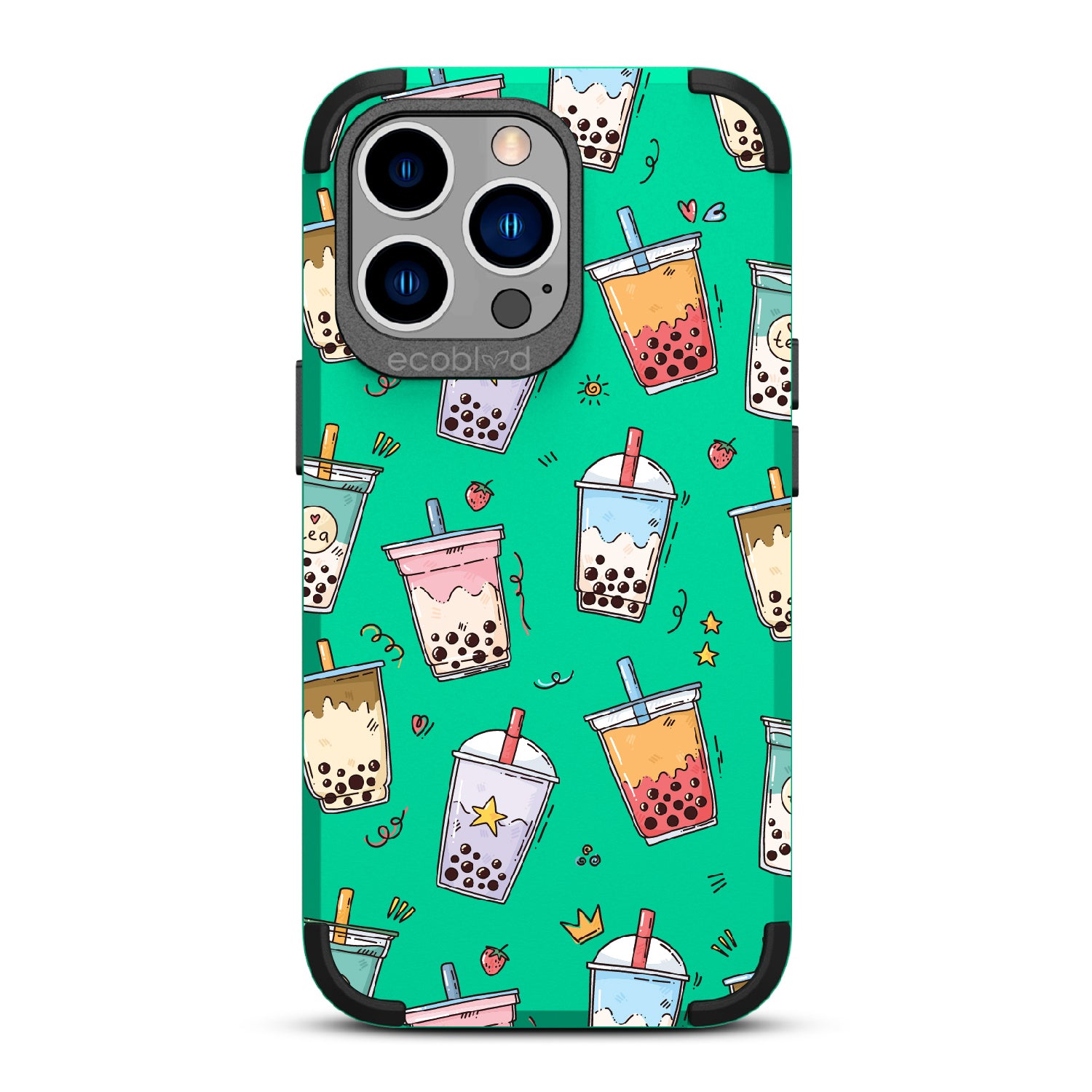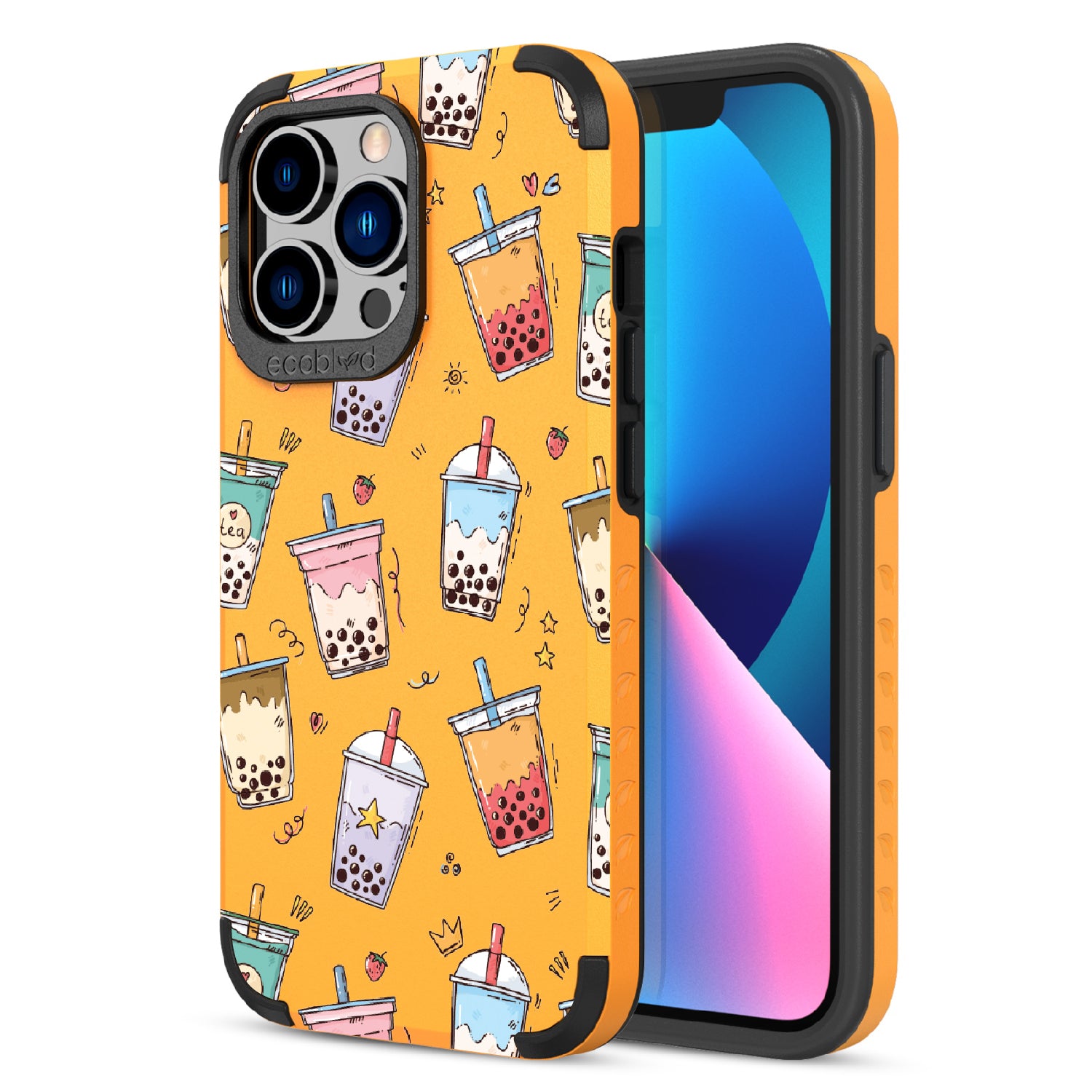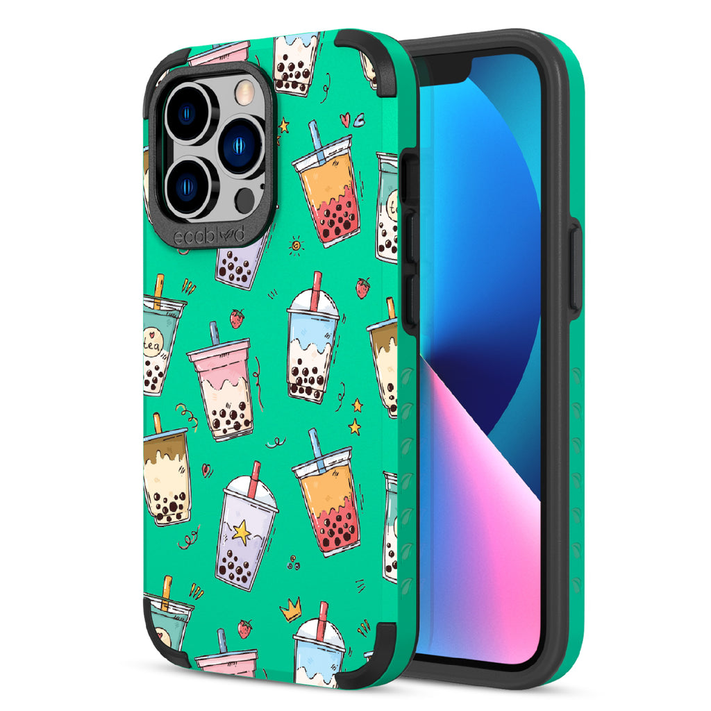 Your best-teas are always by your side. Colorful bubble tea cups in taro, matcha, and strawberry hues make this design on our Mojave rugged and compostable iPhone 13 Pro case a playful celebration of flavor and friendship. A sweet reminder that good drinks (and good friends) make life better.