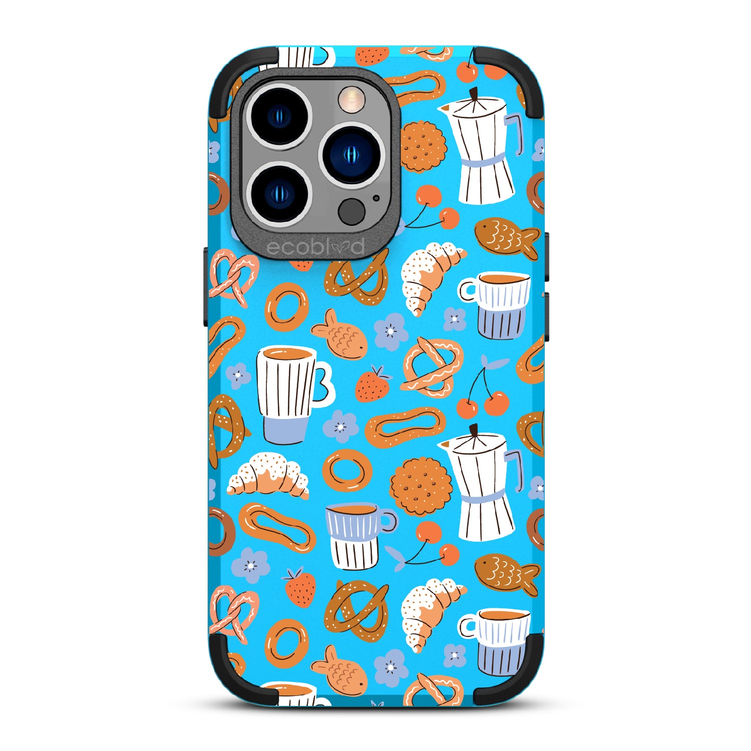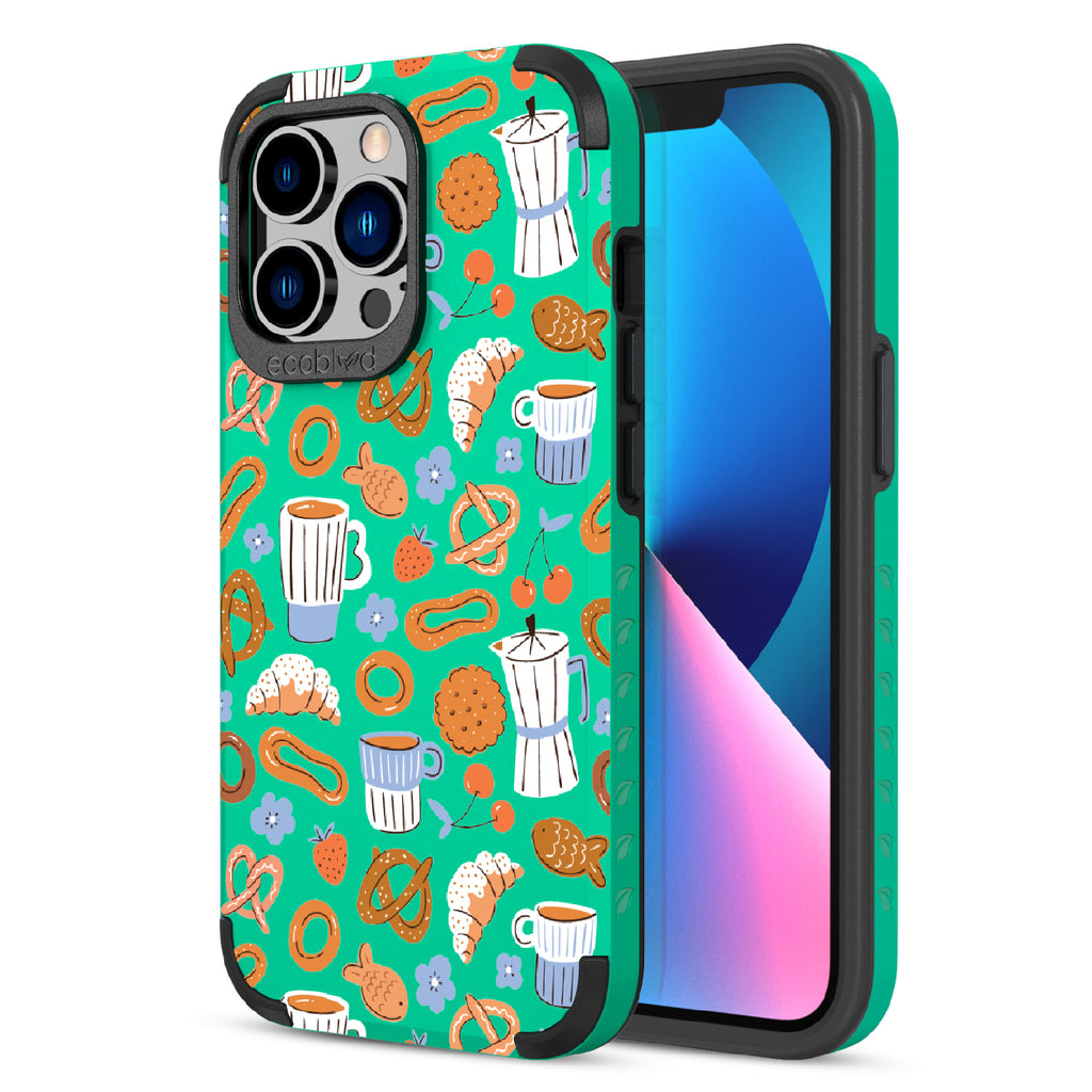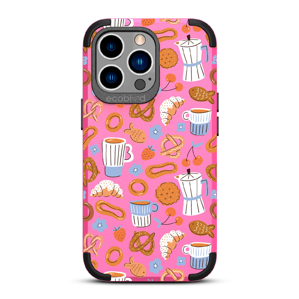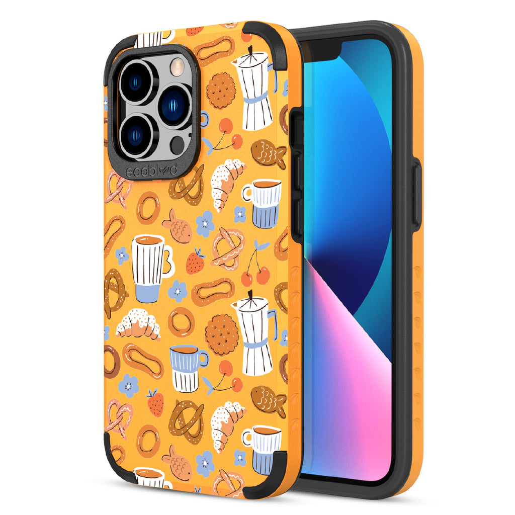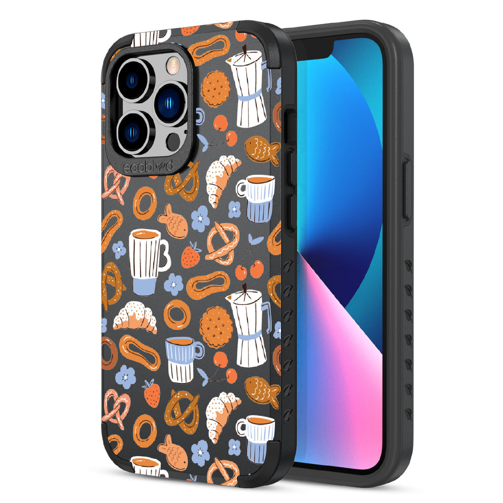 Welcome to The Breakfast Club, where looks are served. This design on our Mojave rugged and compostable iPhone 13 Pro case brings together all your favorite brunch essentials—croissants, coffee, and pretzels. It’s the perfect club to kickstart your day, full of flavor, fun, and flair.