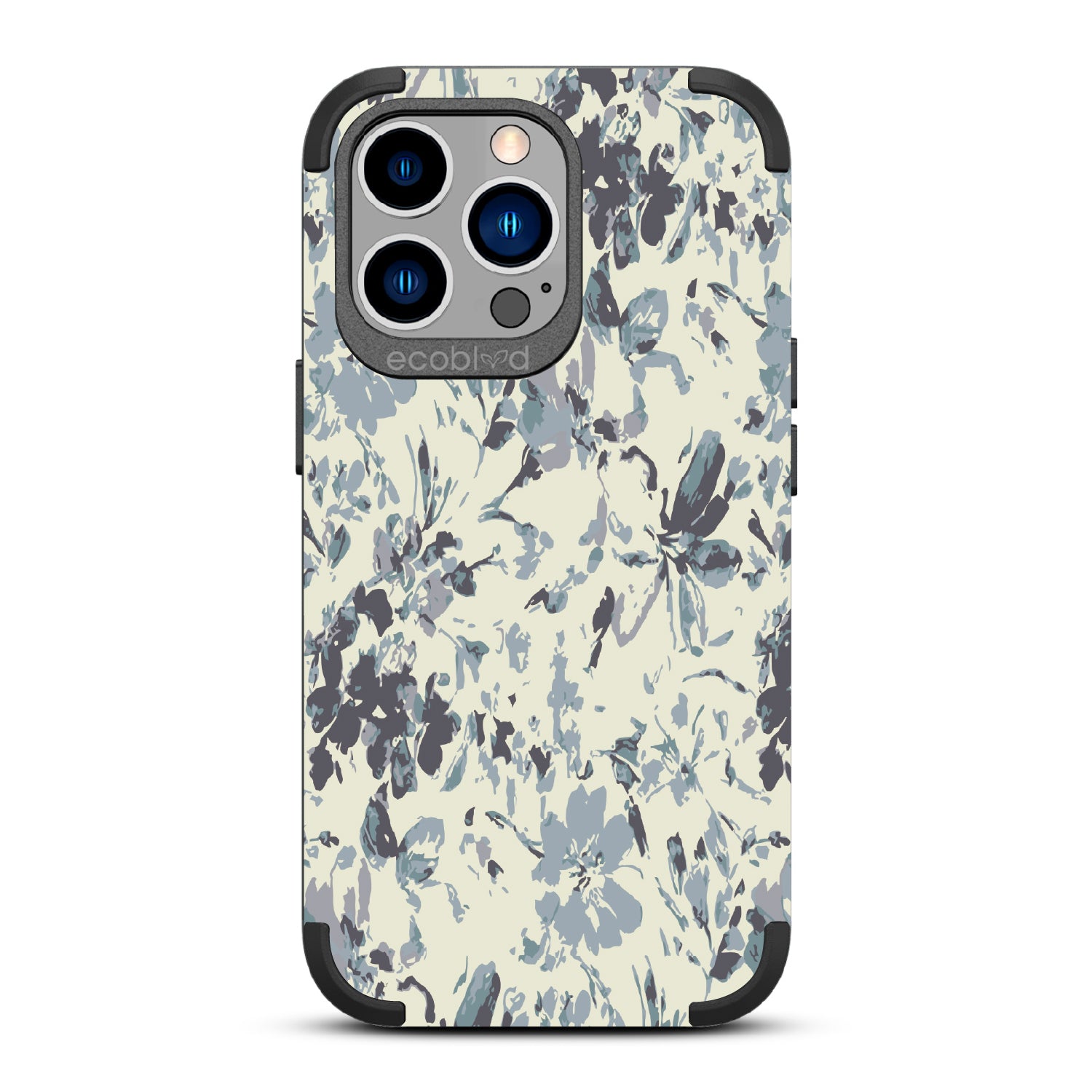 Carried by the wind, the Wind-Swept design on our Mojave rugged and compostable iPhone 13 Pro cases drifts with soft blue and gray florals, as if scattered by a gentle breeze. This airy pattern mimics the movement of nature, with each petal seeming to dance in mid-flight. It’s a delicate balance of motion and stillness, capturing the beauty of the moment when the wind takes hold.