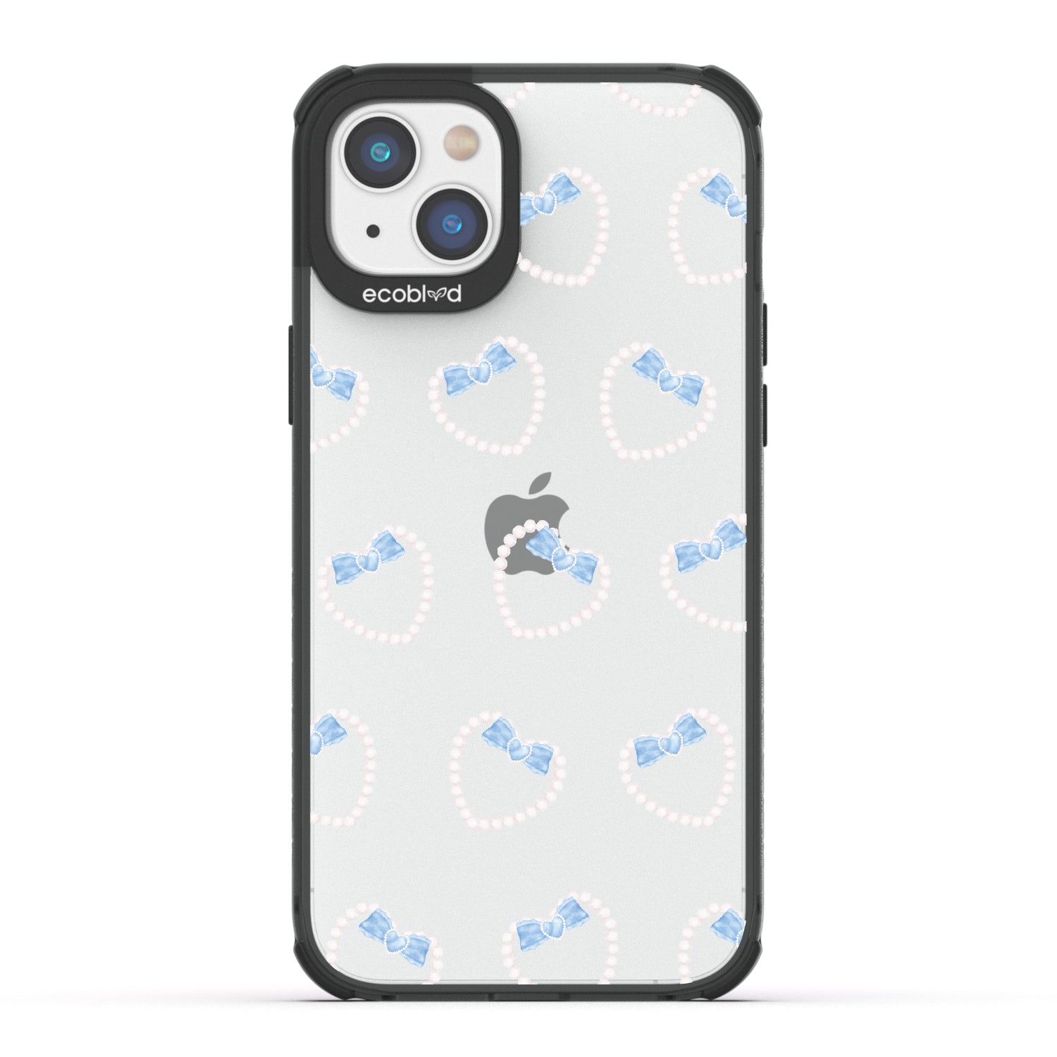 Pure bliss is found in the details, so find yours in the Pearl Bliss design on our Laguna clear iPhone 14 Plus phone case. Luminous pearls and delicate blue bows weave together in intricate heart shapes, crafting an irresistibly dreamy look that captivates. Every detail is meticulously crafted to make those around you want more and more.
