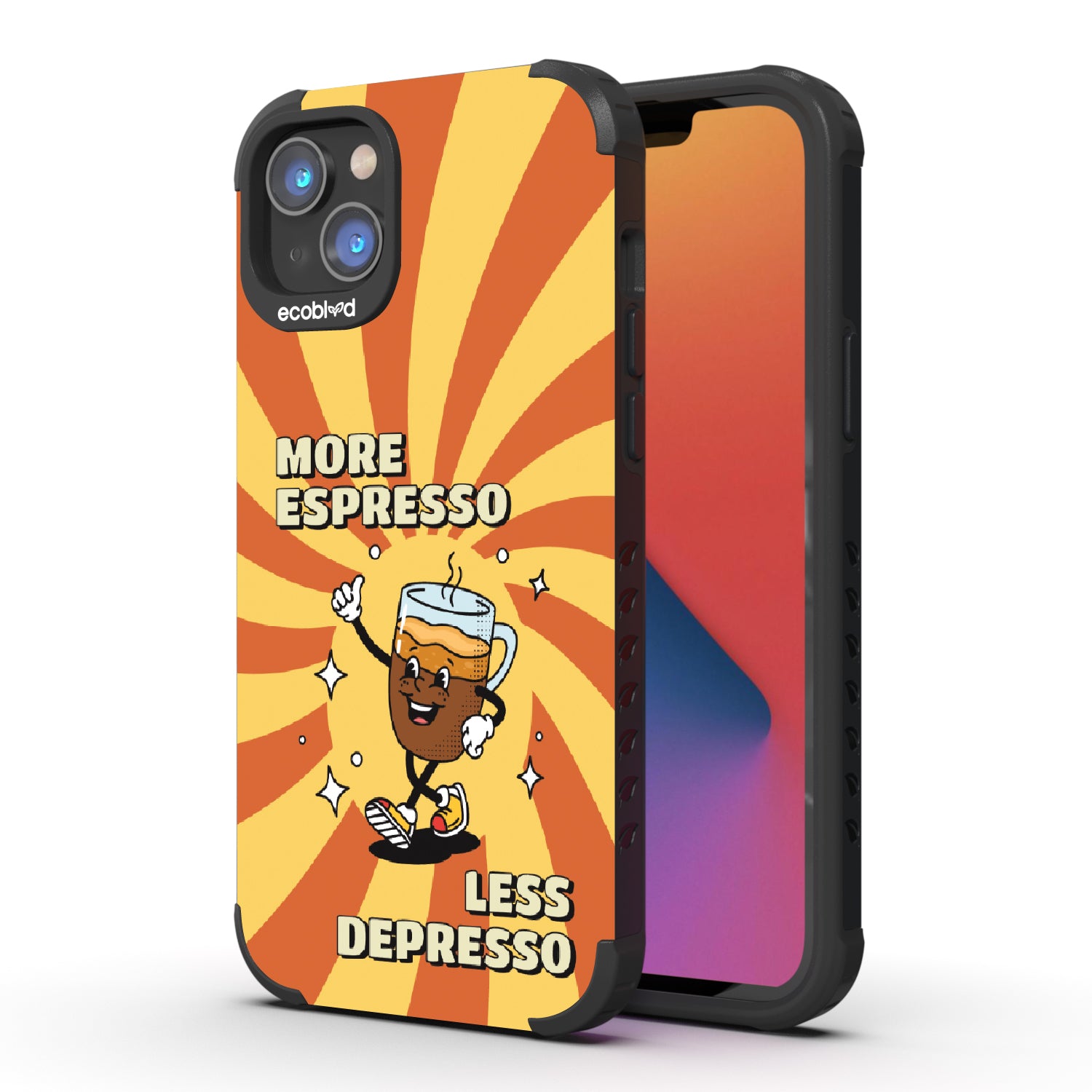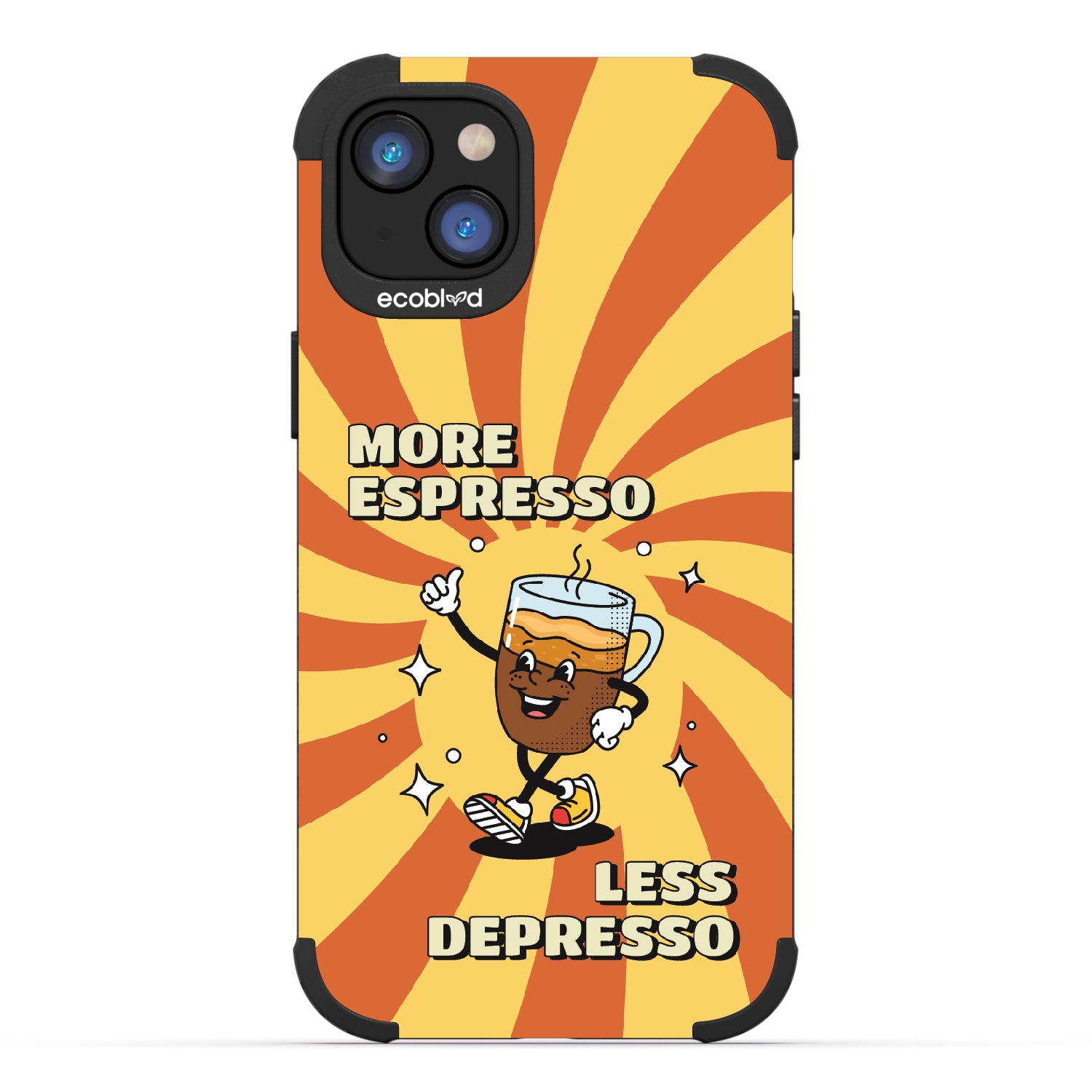 "More espresso, less depresso”—it’s that simple. A cheerful coffee mug and your new daily mantra bring good vibes to life with this playful design on our Mojave rugged and compostable iPhone 14 Plus case. Brew positivity and energy into every moment with a look that’s as bold as your first cup.