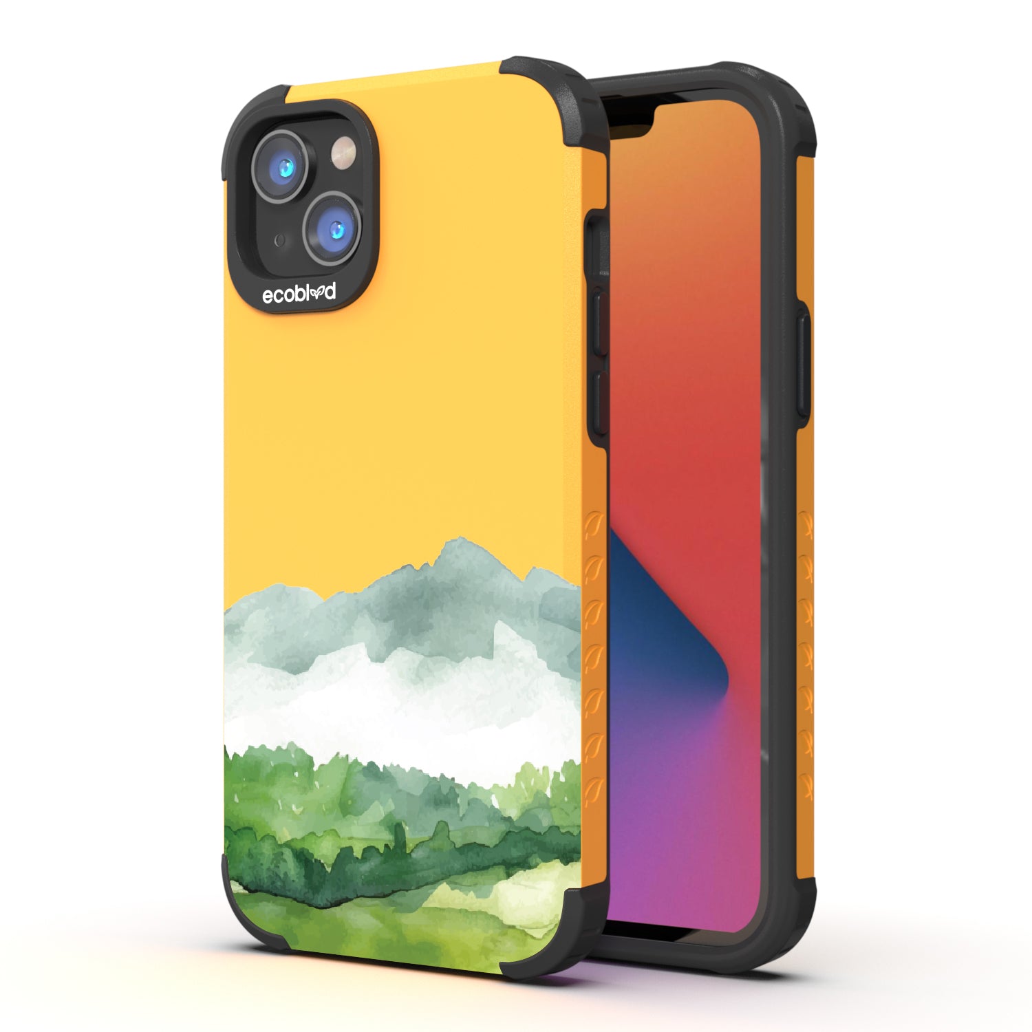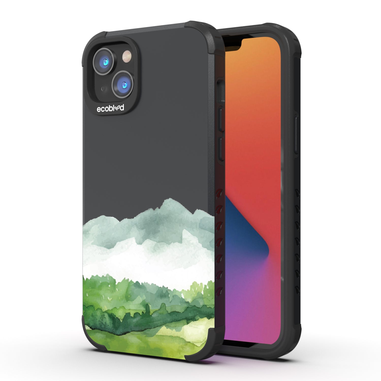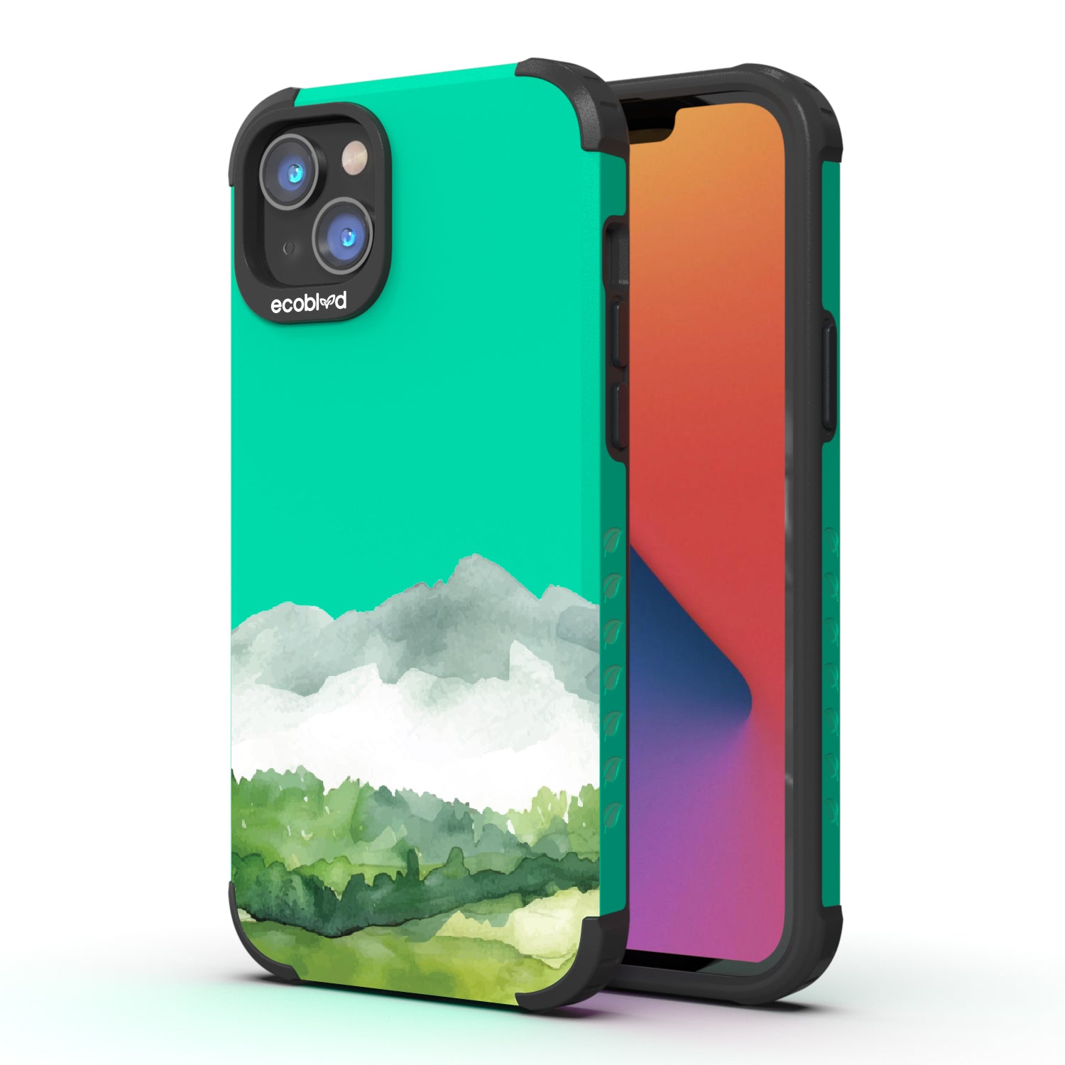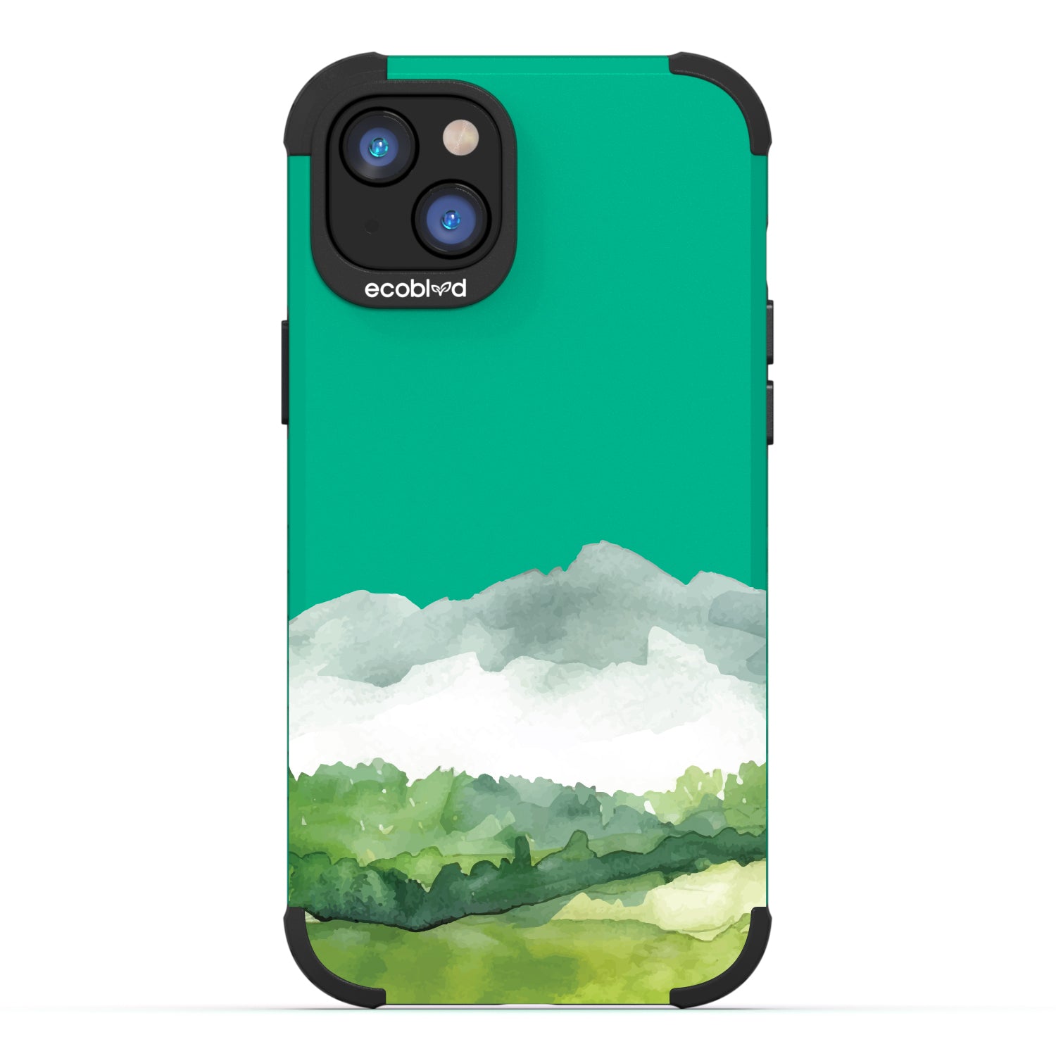 The view is endless, just like the possibilities. The Open Horizon design on our Mojave rugged and compostable iPhone 14 Plus case layers soft washes of green and misty blue, stretching like rolling hills beneath an open sky. The watercolor effect creates a serene, boundless landscape, a quiet reminder that there’s always more to explore.