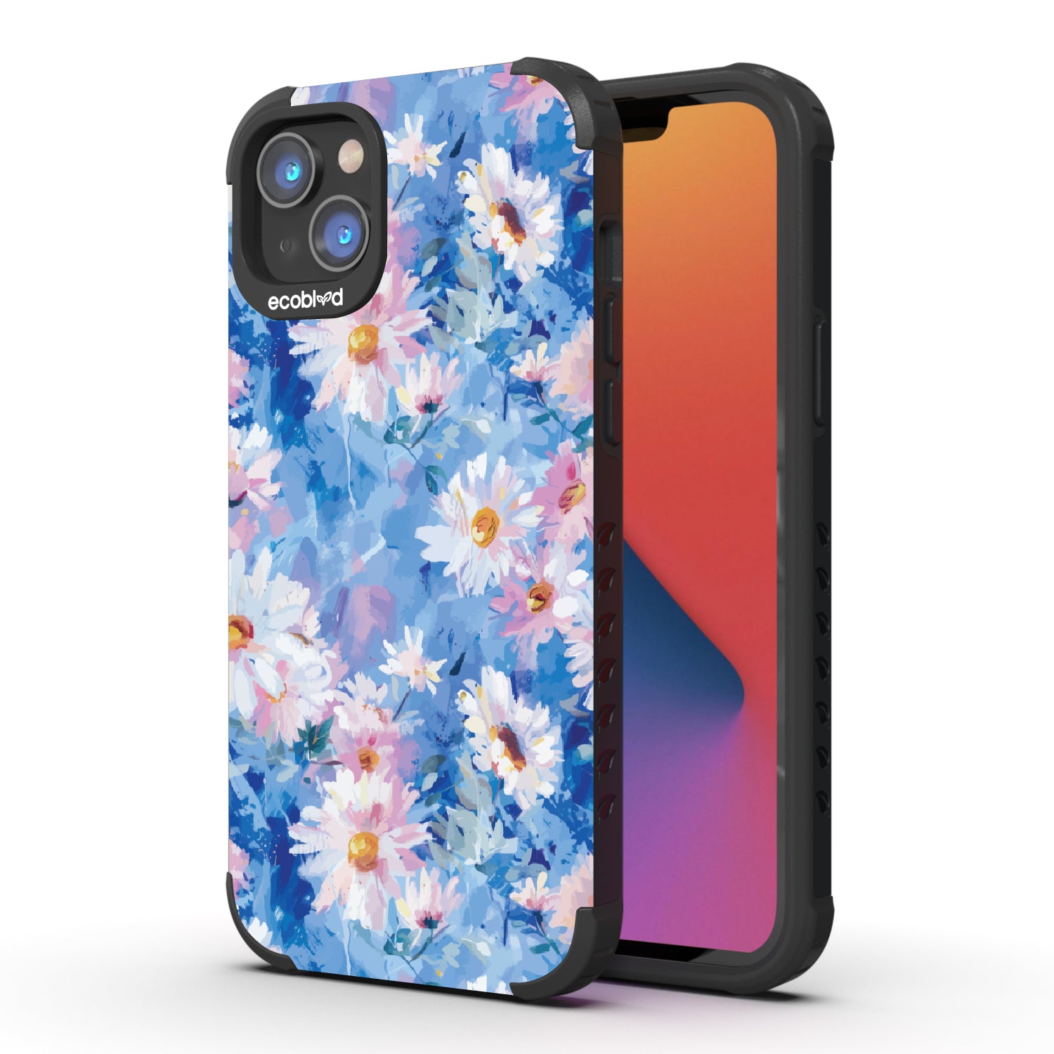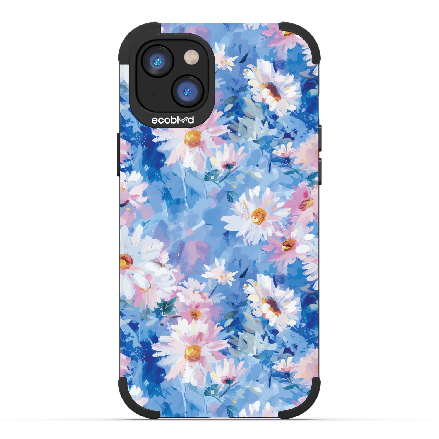 It’s a breeze really. The Blown Away design on our Mojave rugged and compostable iPhone 14 Plus case sends soft daisy petals swirling across layered blue strokes, like a gust caught mid-canvas. Each pastel bloom feels weightless but intentional—an airy moment you can hold onto.