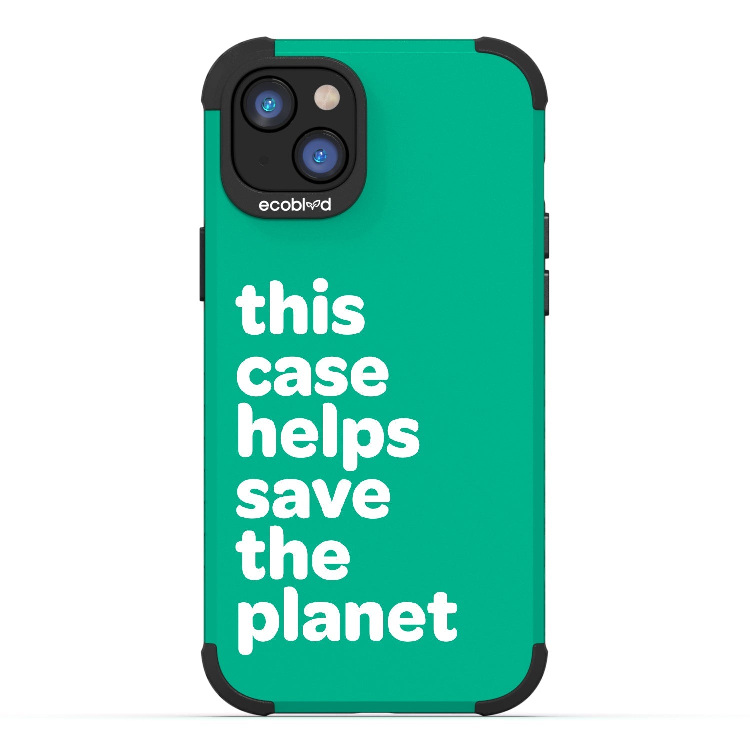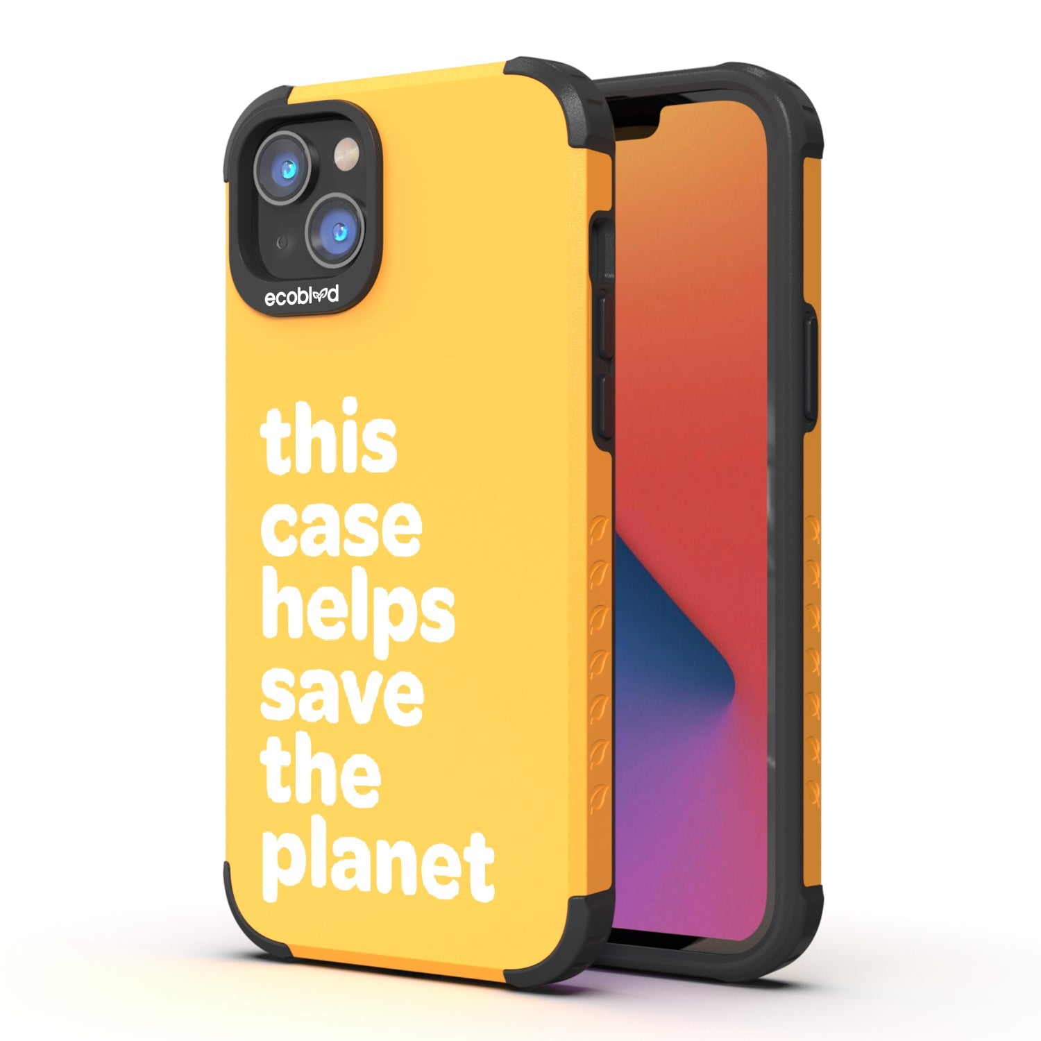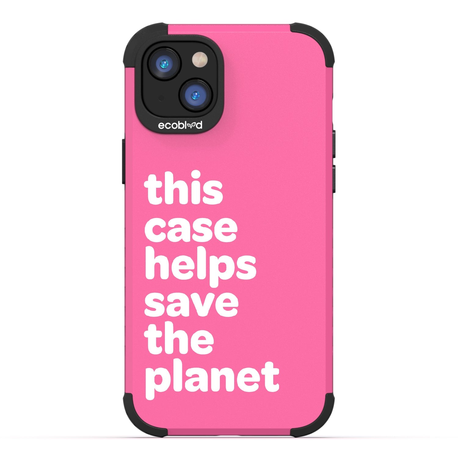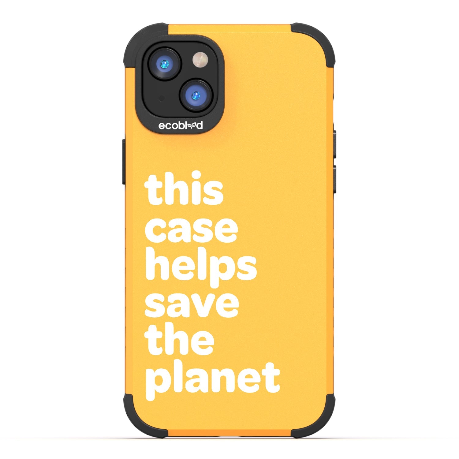 Send a bold message from your phone as the Save The Planet design on our Mojave rugged and compostable iPhone 16e, iPhone 14, and iPhone 13 case highlights your case's eco-friendly fashion and your commitment to sustainability. Choose from five vibrant colorways: Midnight Black, Cascade Blue, Foliage Green, Illuminating Yellow, and Wildflower Pink.